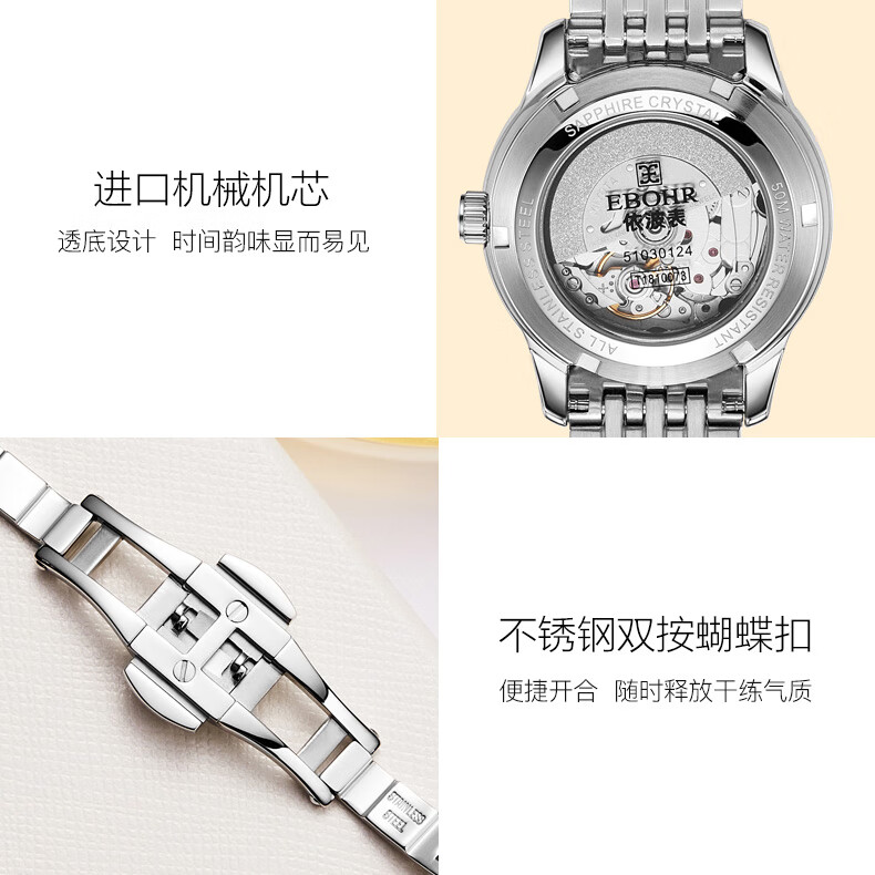 依波(EBOHR)【商场同款】大师系列手表男士自动机械表国表生日礼物防水送男友 凛冽刚 10840115