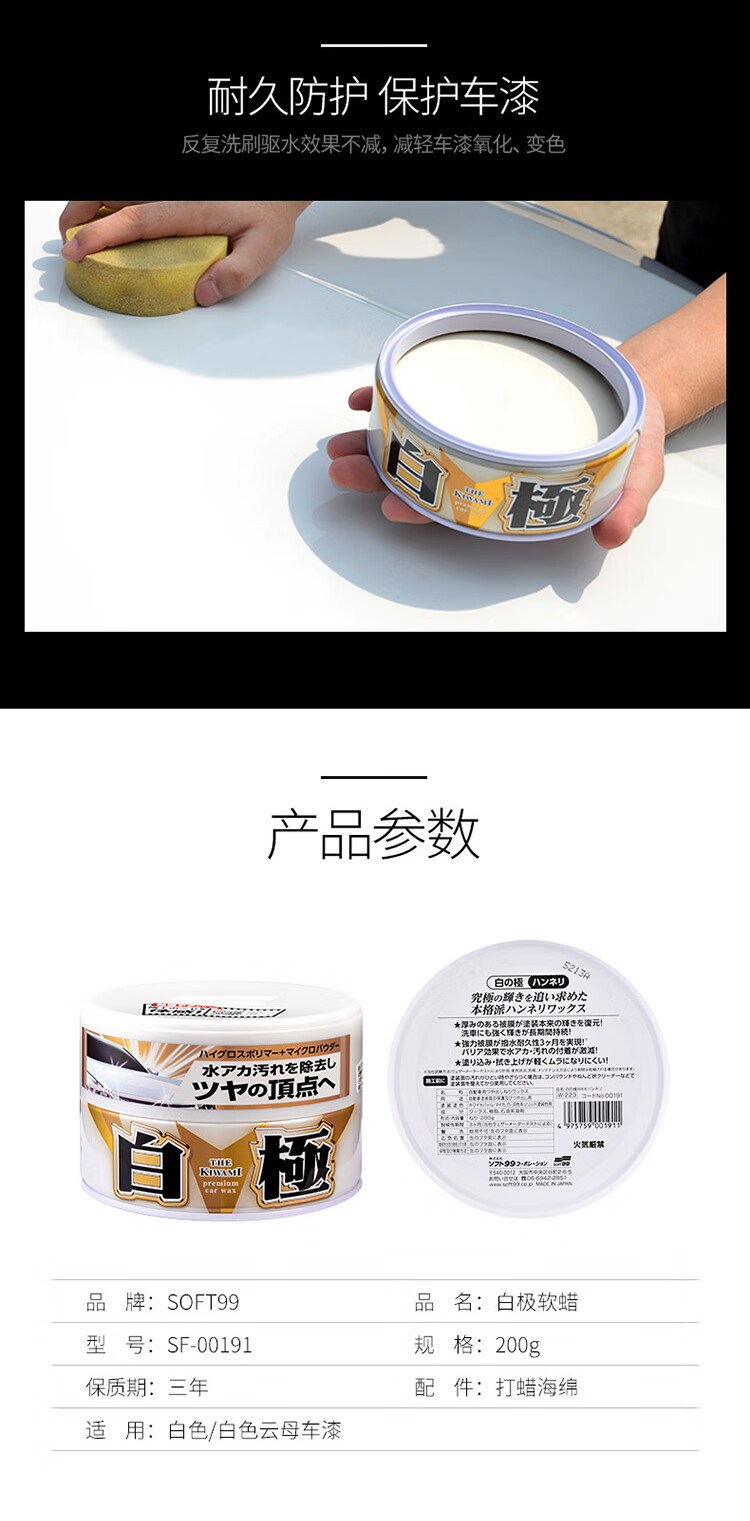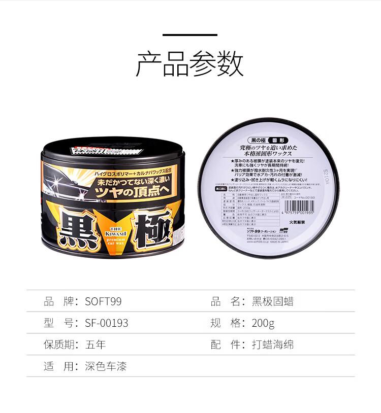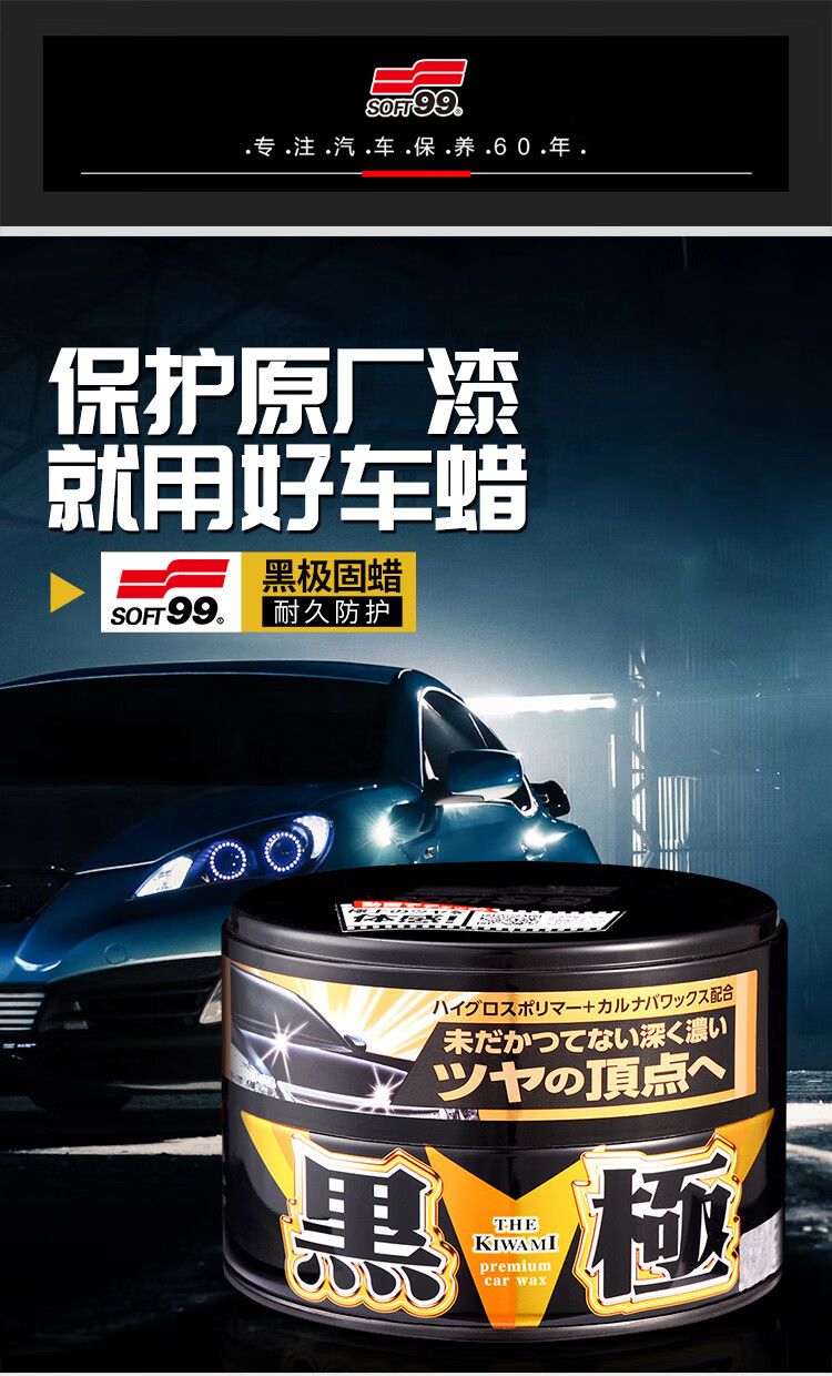 SOFT99汽车蜡抛光养护蜡 日本进口 车漆打蜡增亮去污防划痕上光蜡 黑极 黑色车用 200g
