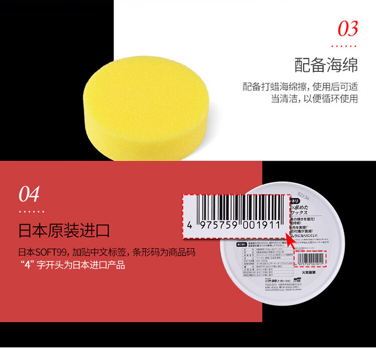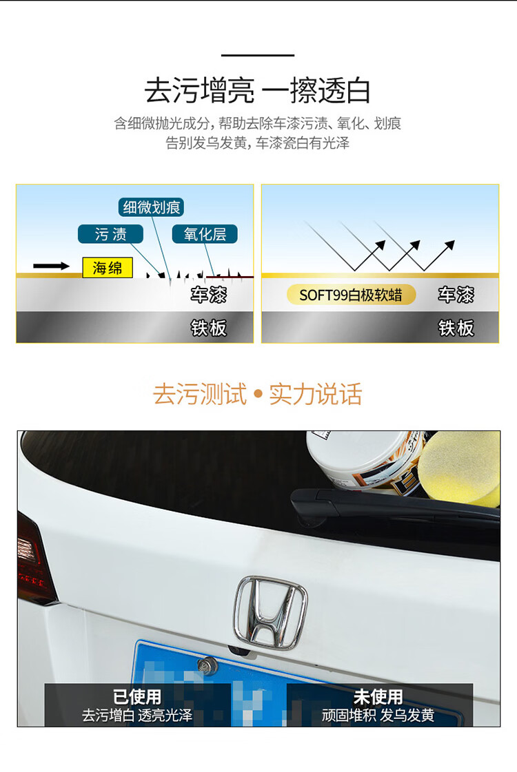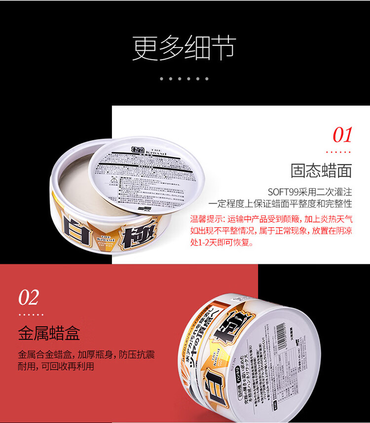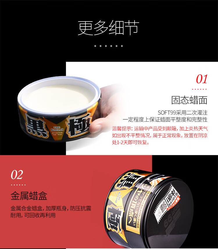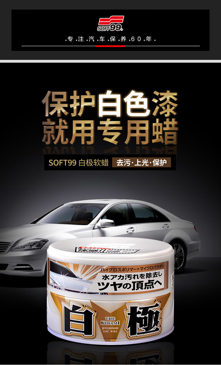 SOFT99汽车蜡抛光养护蜡 日本进口 车漆打蜡增亮去污防划痕上光蜡 黑极 黑色车用 200g