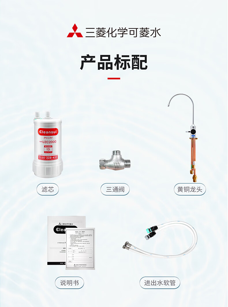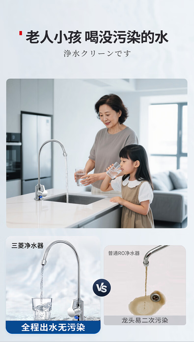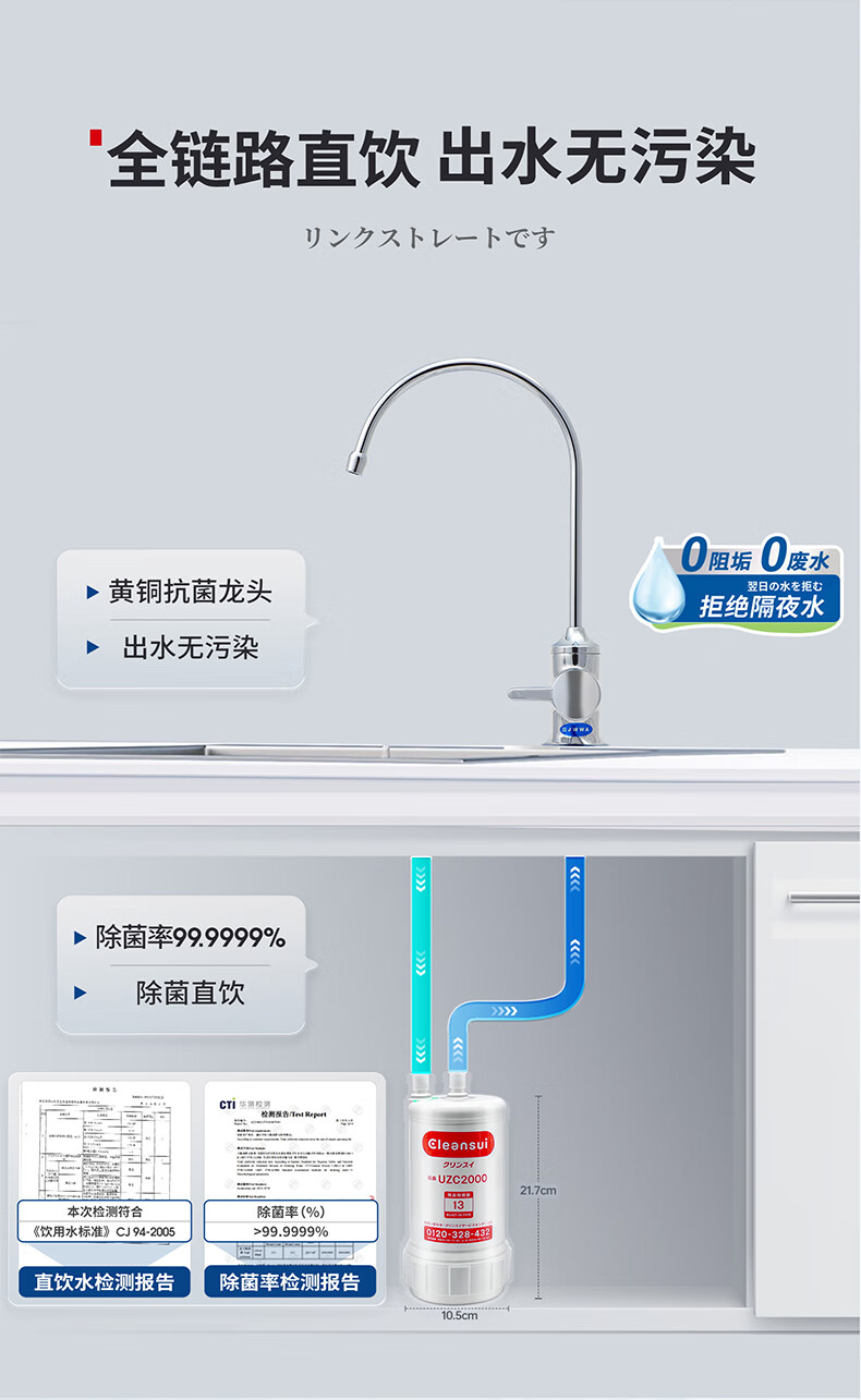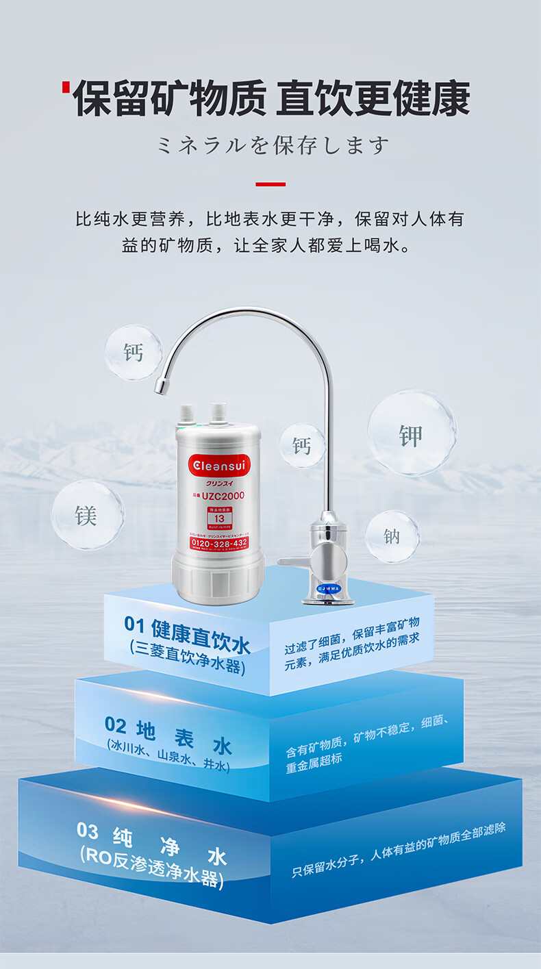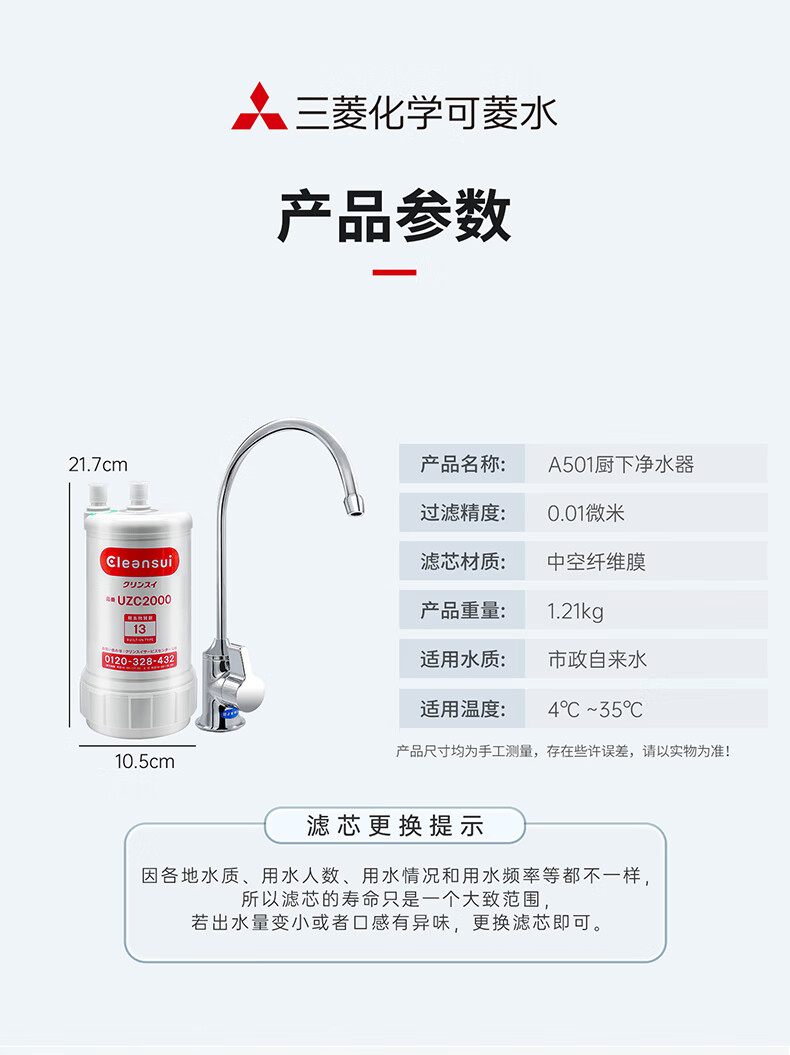 可菱水厨下式净水器(日本制)直饮级家用净水机超滤净饮机保留矿物质无铅黄铜龙头U-A501ZC日本原装进口 【日本制】三菱厨下爆款-赠进口滤芯(约用4年)