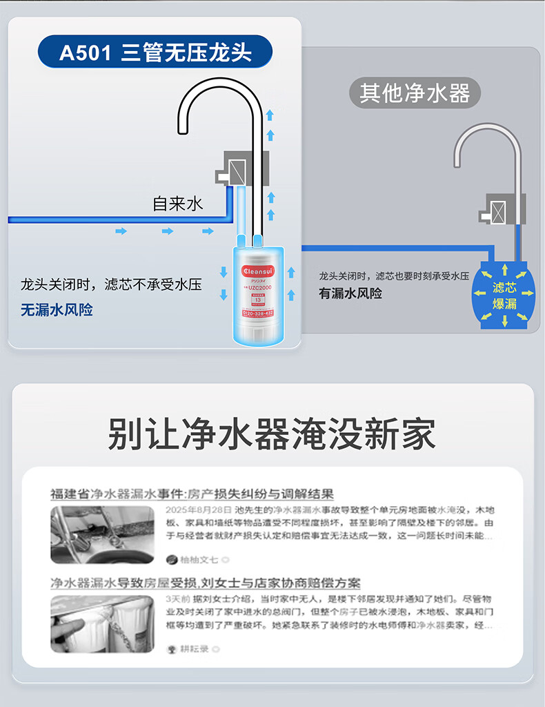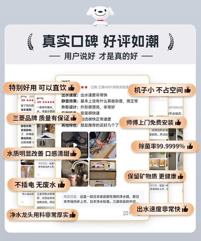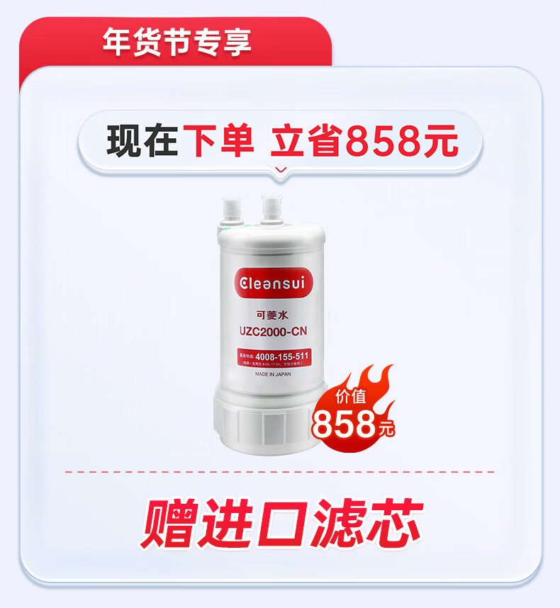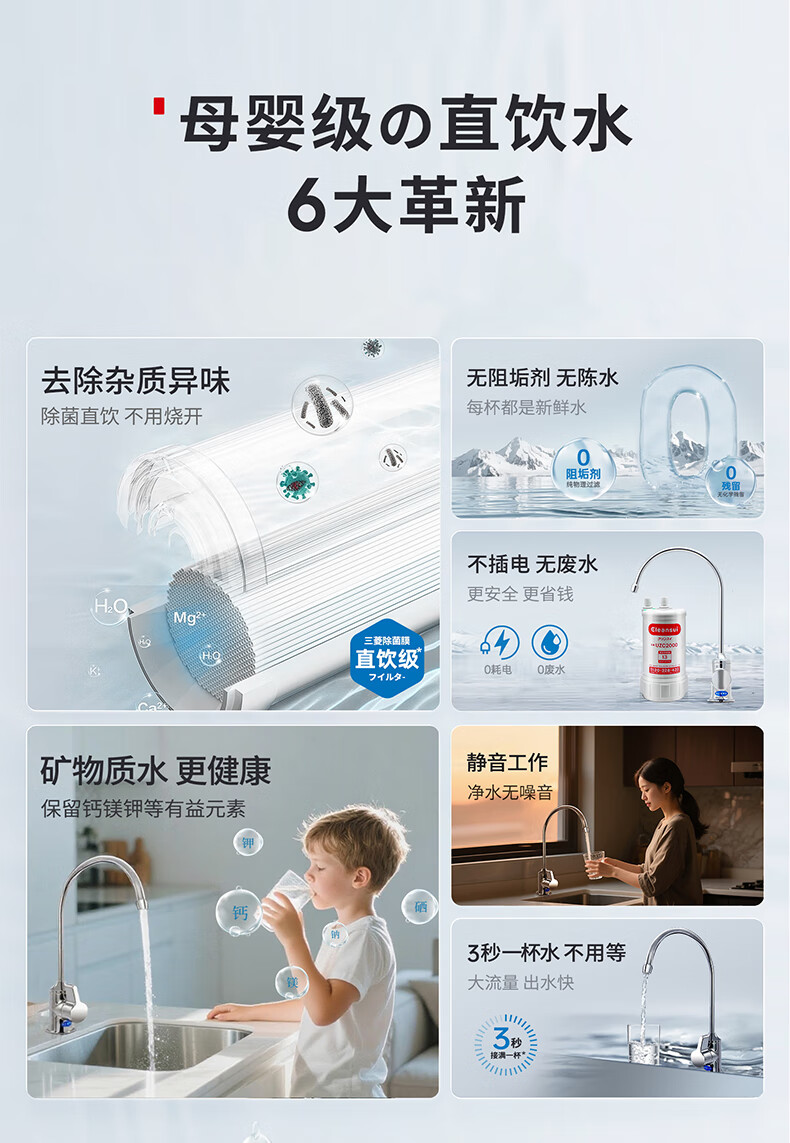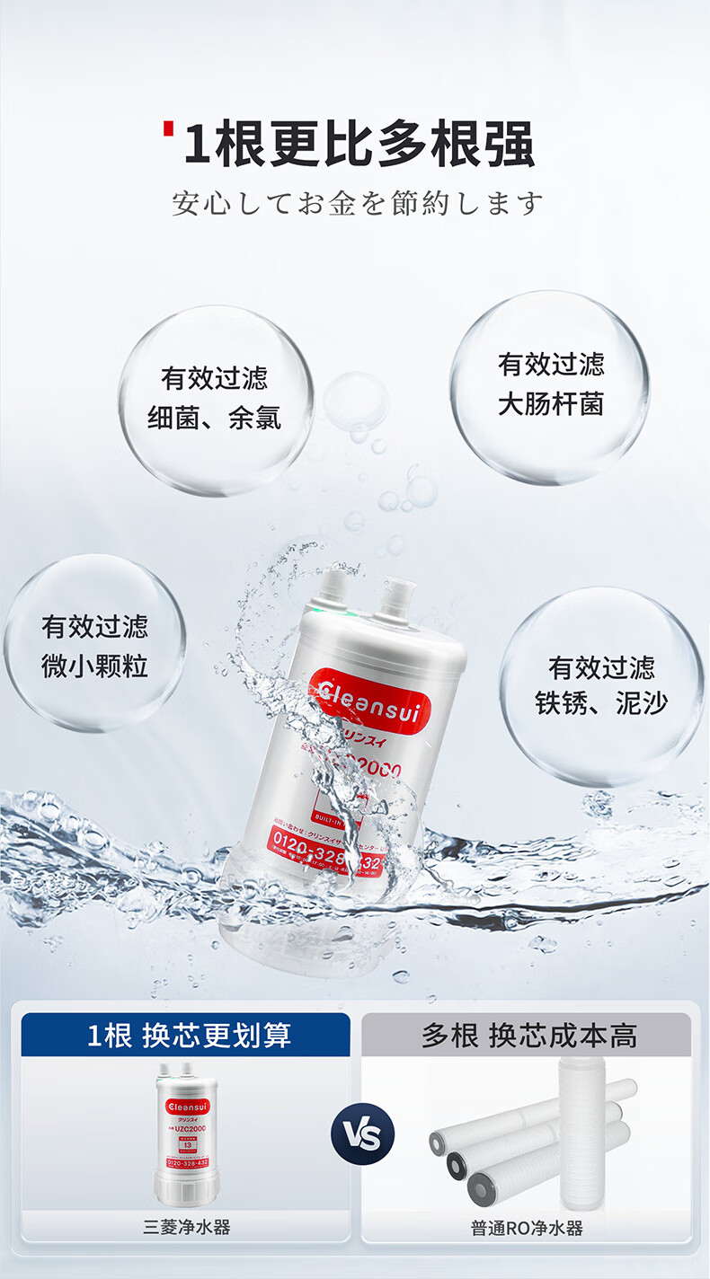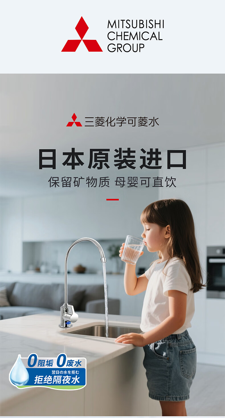 可菱水厨下式净水器(日本制)直饮级家用净水机超滤净饮机保留矿物质无铅黄铜龙头U-A501ZC日本原装进口 【日本制】三菱厨下爆款-赠进口滤芯(约用4年)