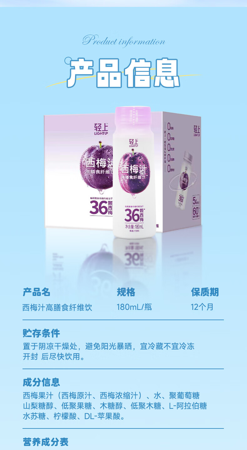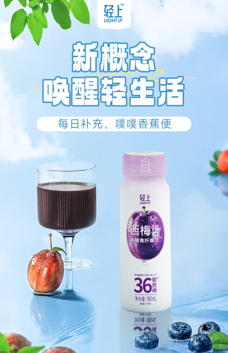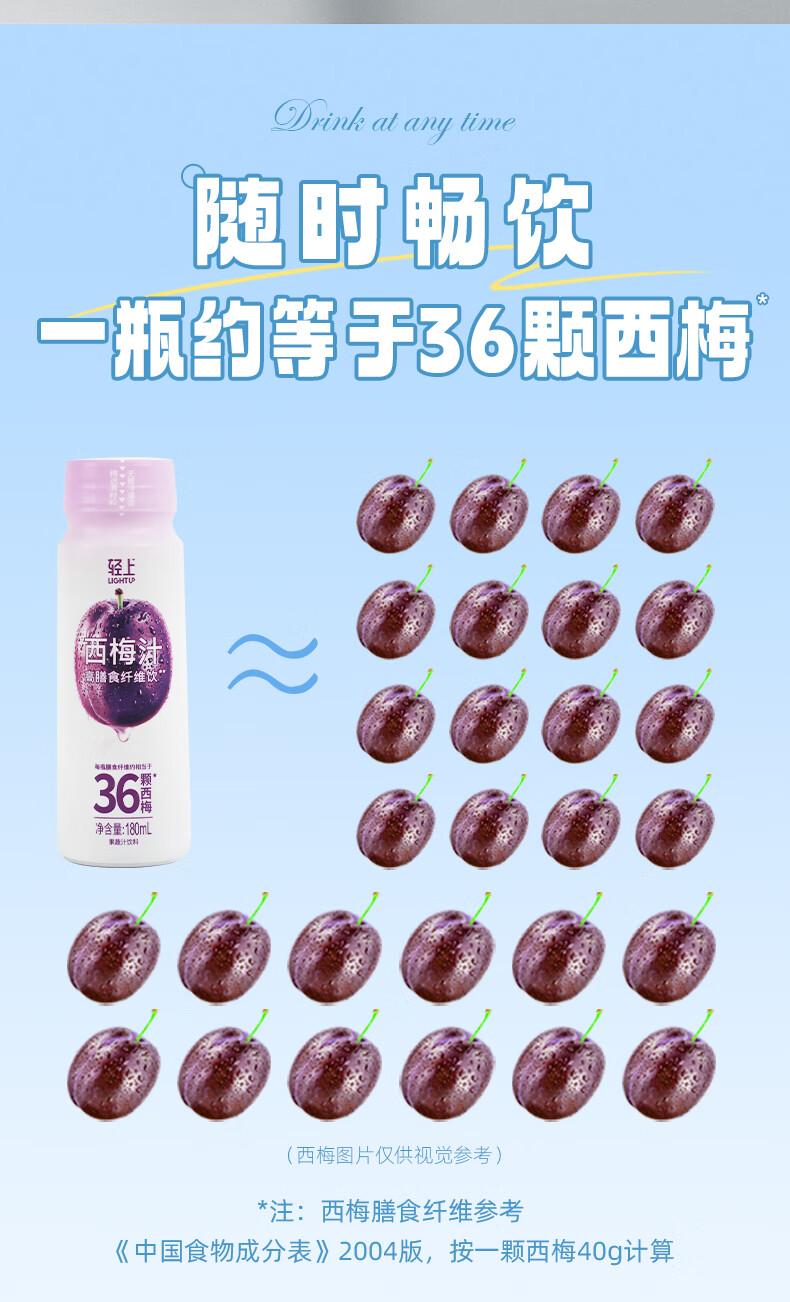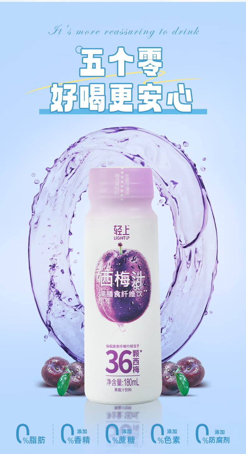 轻上益生元西梅汁饮品解腻果汁茶饮料整箱0脂0添加蔗糖膳食纤维 100%白桦树汁NFC原液245m1*10瓶