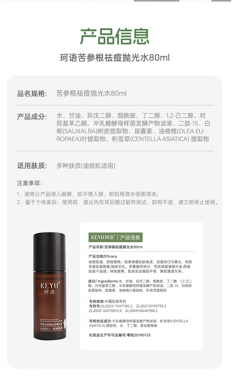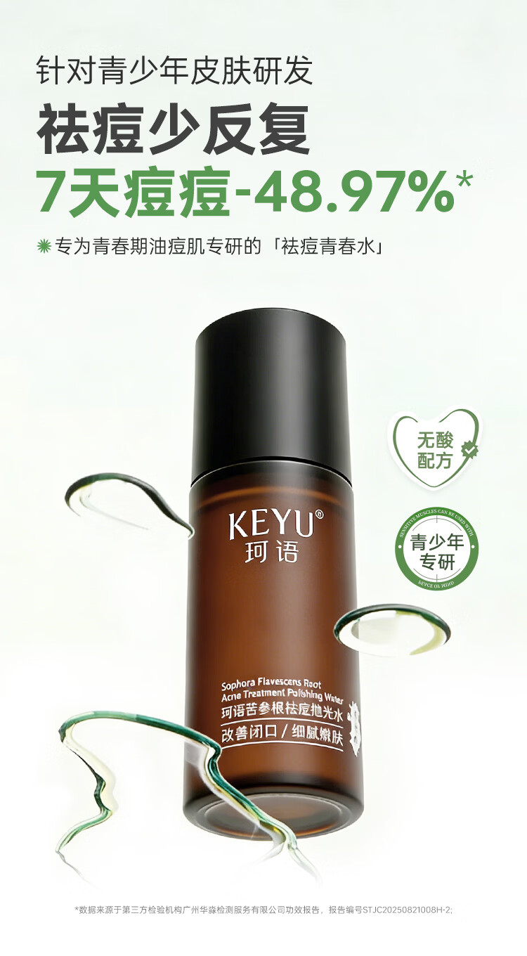 珂语苦参根祛痘抛光水去闭口舒缓保湿青少年护肤爽肤水控油湿敷脸专用 青春期闭口祛痘水80ml 1瓶