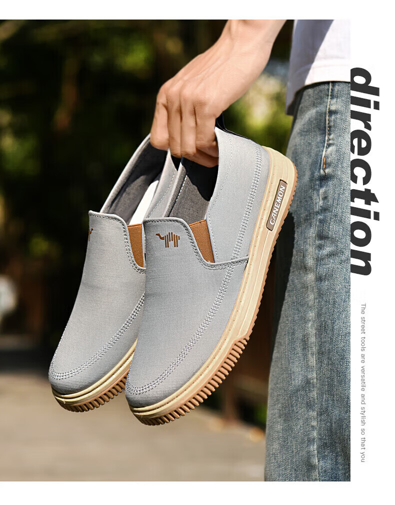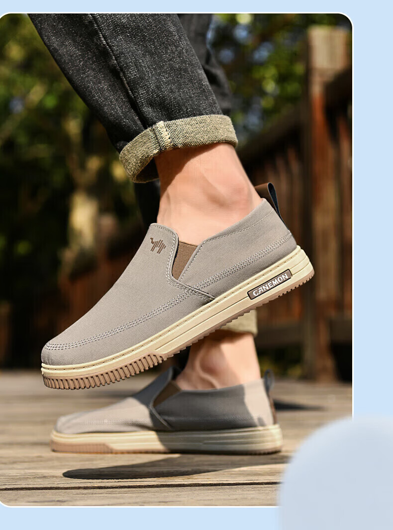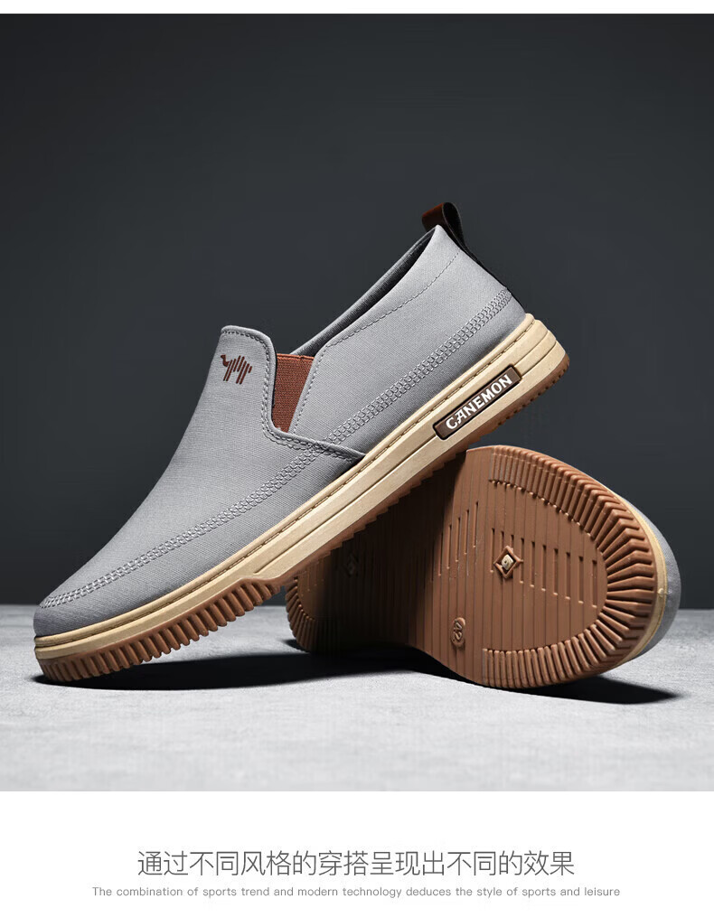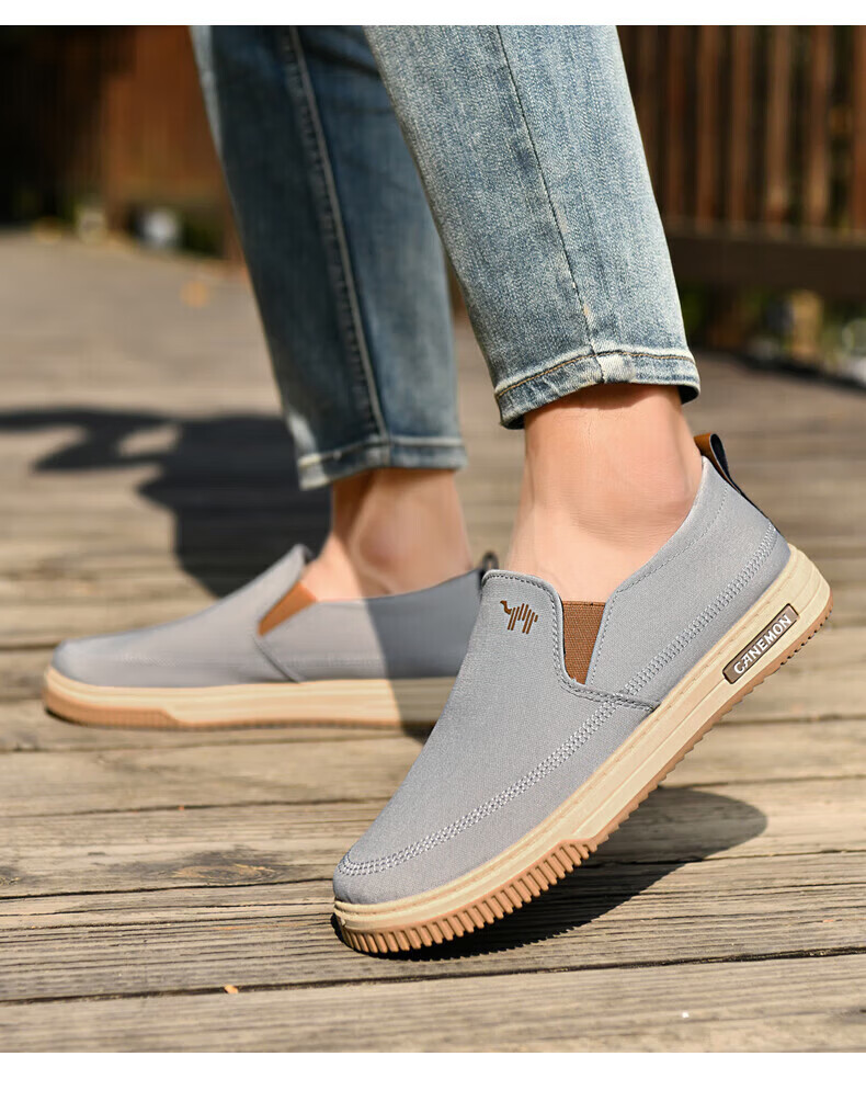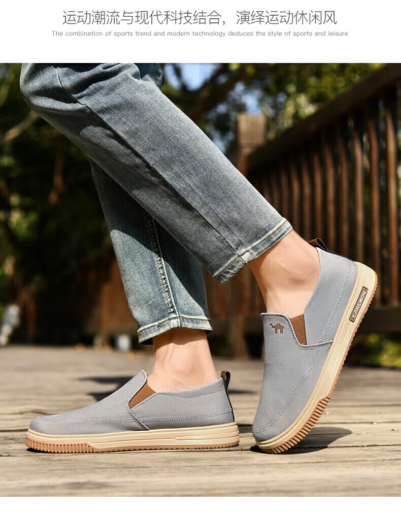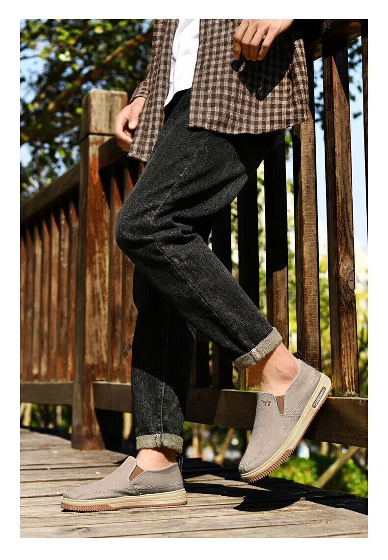 保罗骆驼男鞋 夏季新款休闲透气平底帆布鞋 老北京一脚蹬套脚运动软底鞋 【灰色】 LY553 38 【标准运动鞋尺码】