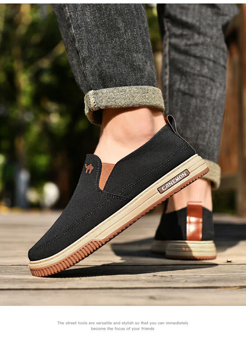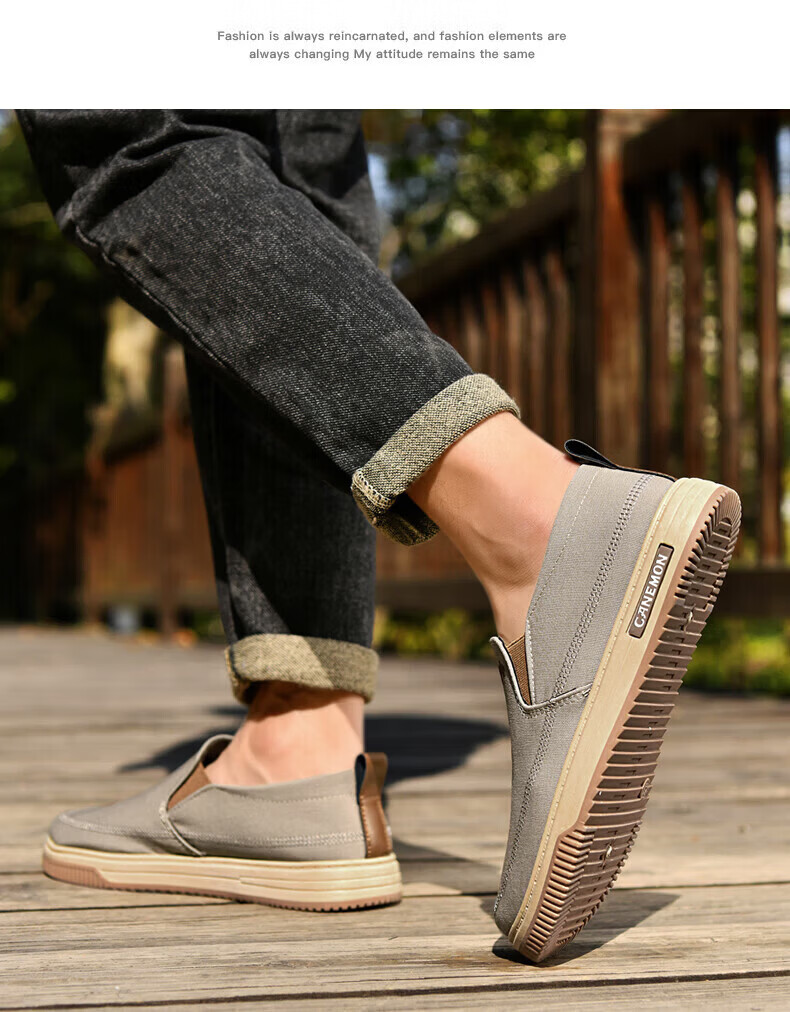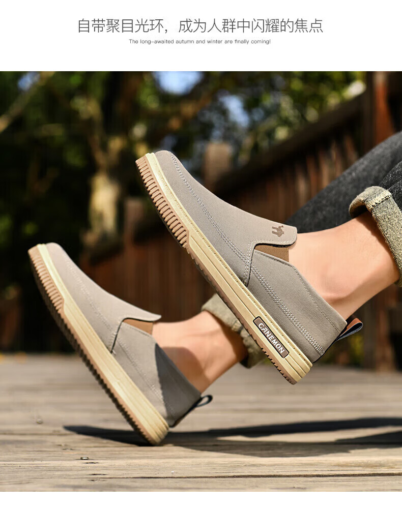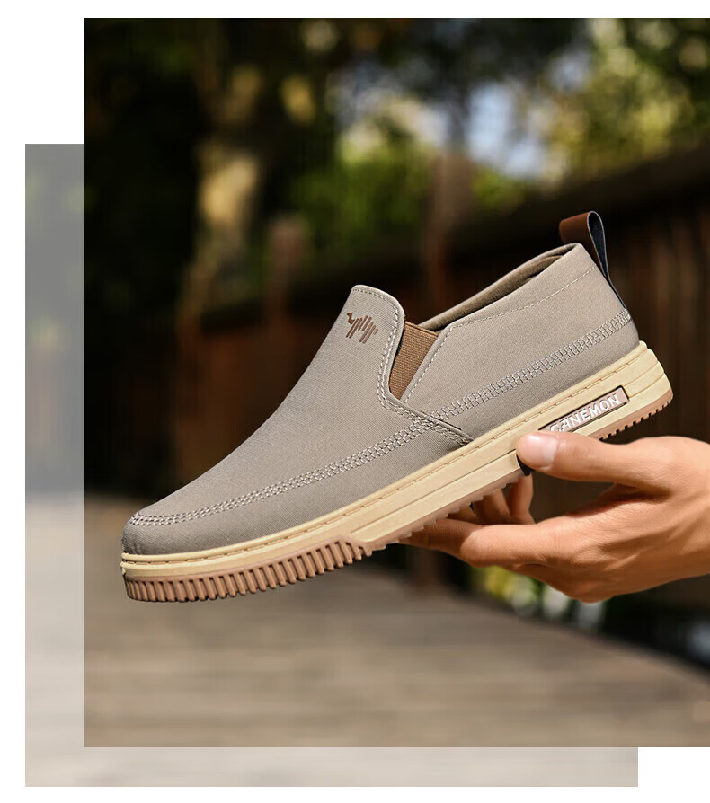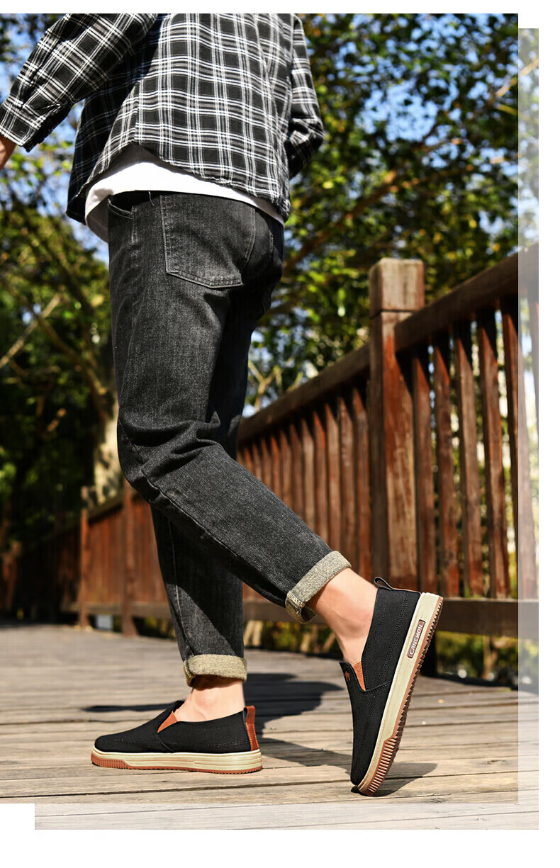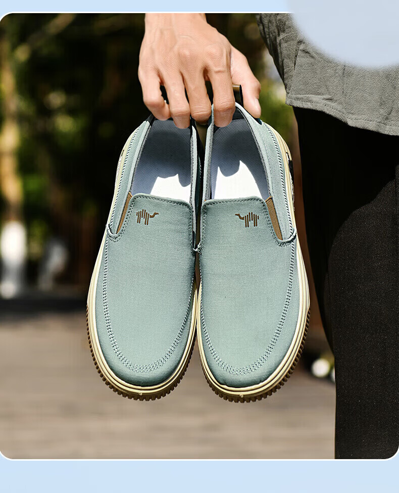 保罗骆驼男鞋 夏季新款休闲透气平底帆布鞋 老北京一脚蹬套脚运动软底鞋 【灰色】 LY553 38 【标准运动鞋尺码】