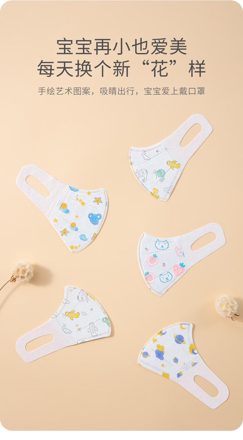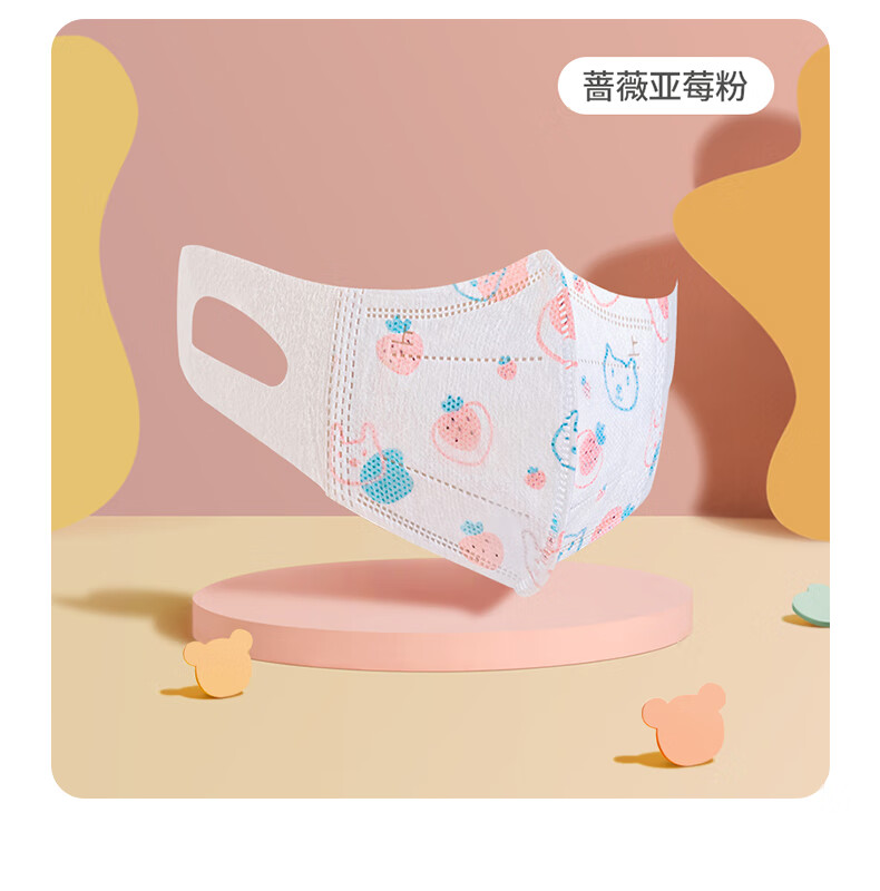 贝肽斯儿童口罩3d立体婴幼儿宝宝专用防护口耳罩 蔷薇亚莓粉S