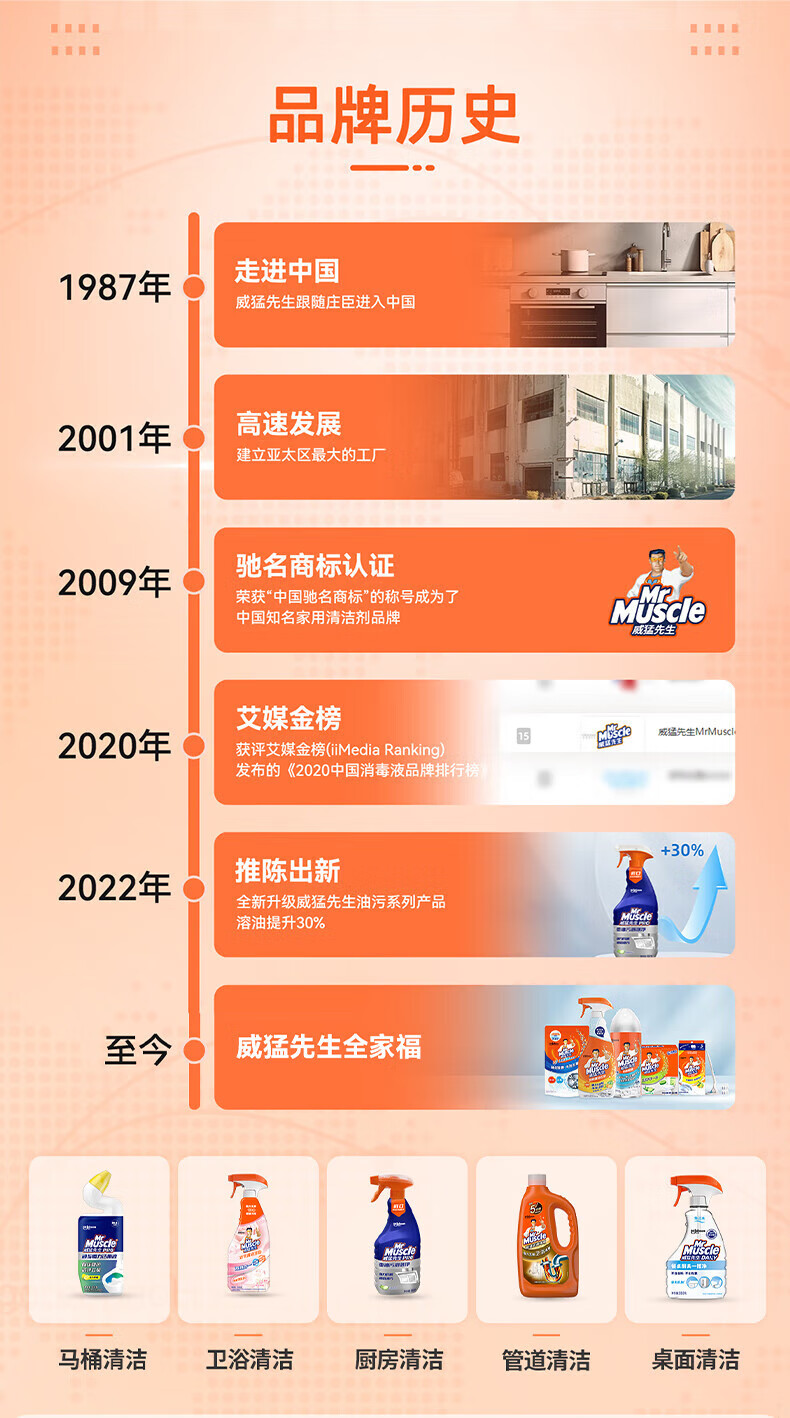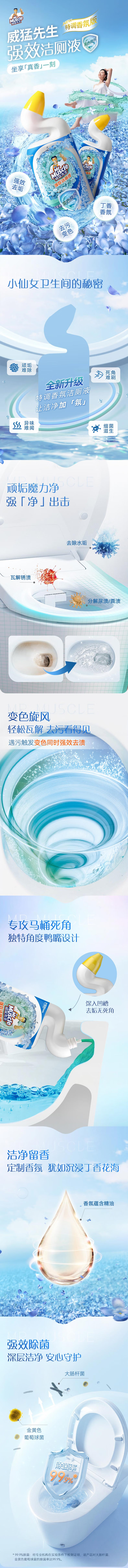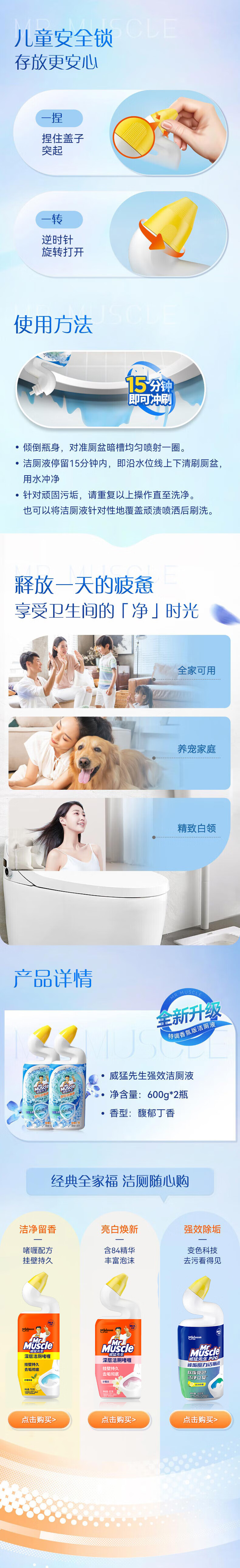 威猛先生(Mr Muscle)免刷洗 强效洁厕灵 洁厕剂 馥郁繁花型 马桶清洁 600gX2瓶