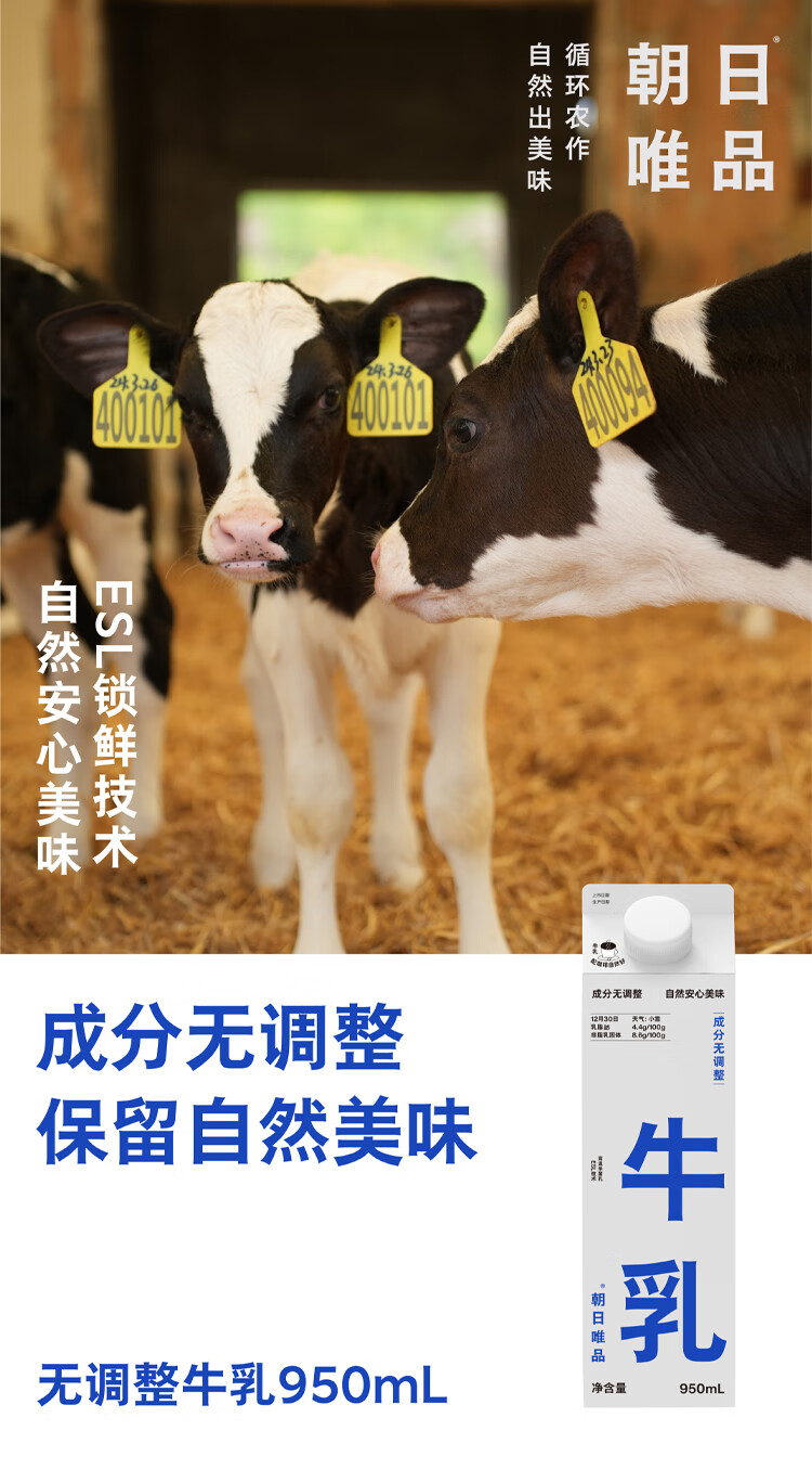 朝日唯品无调整牛乳950ml 低温冷藏鲜牛奶 自有牧场营养早餐牛奶