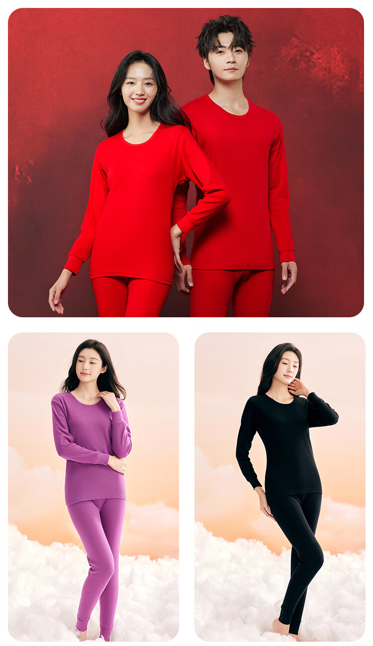 红豆内衣女7A抑菌升级秋衣秋裤纯棉套装圆领薄款打底保暖内衣
