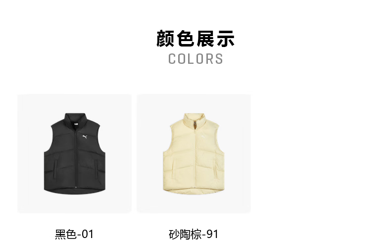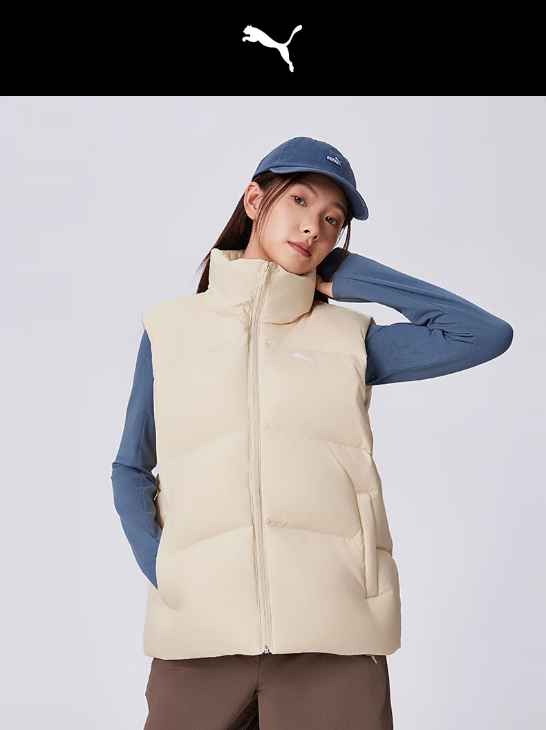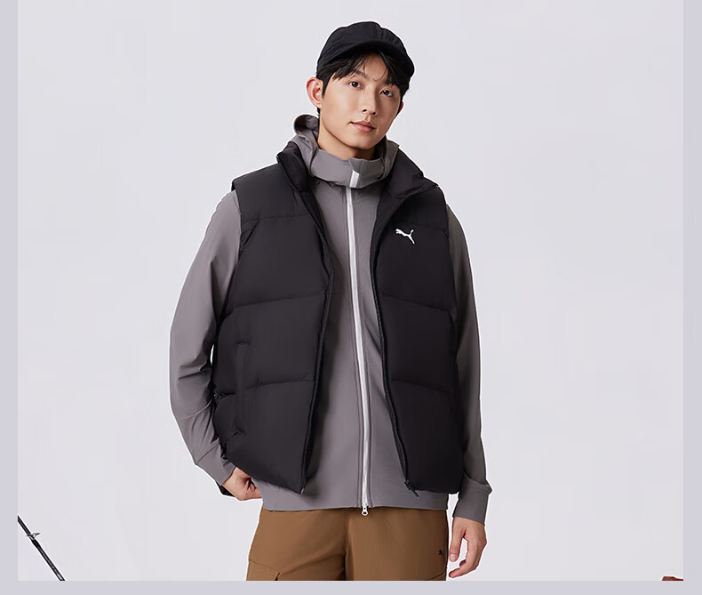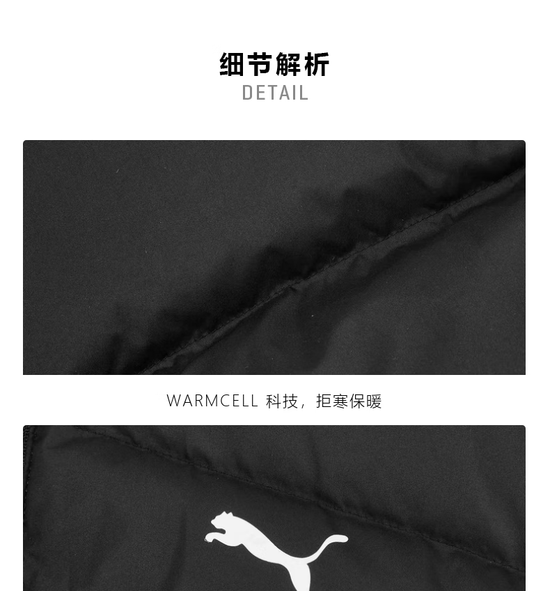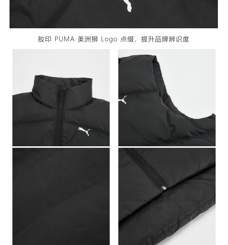 彪马(PUMA)防风拒水80绒羽绒运动背心男女新款冬保暖马甲692781 黑色-01 2XL (190/108A)
