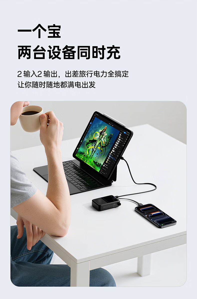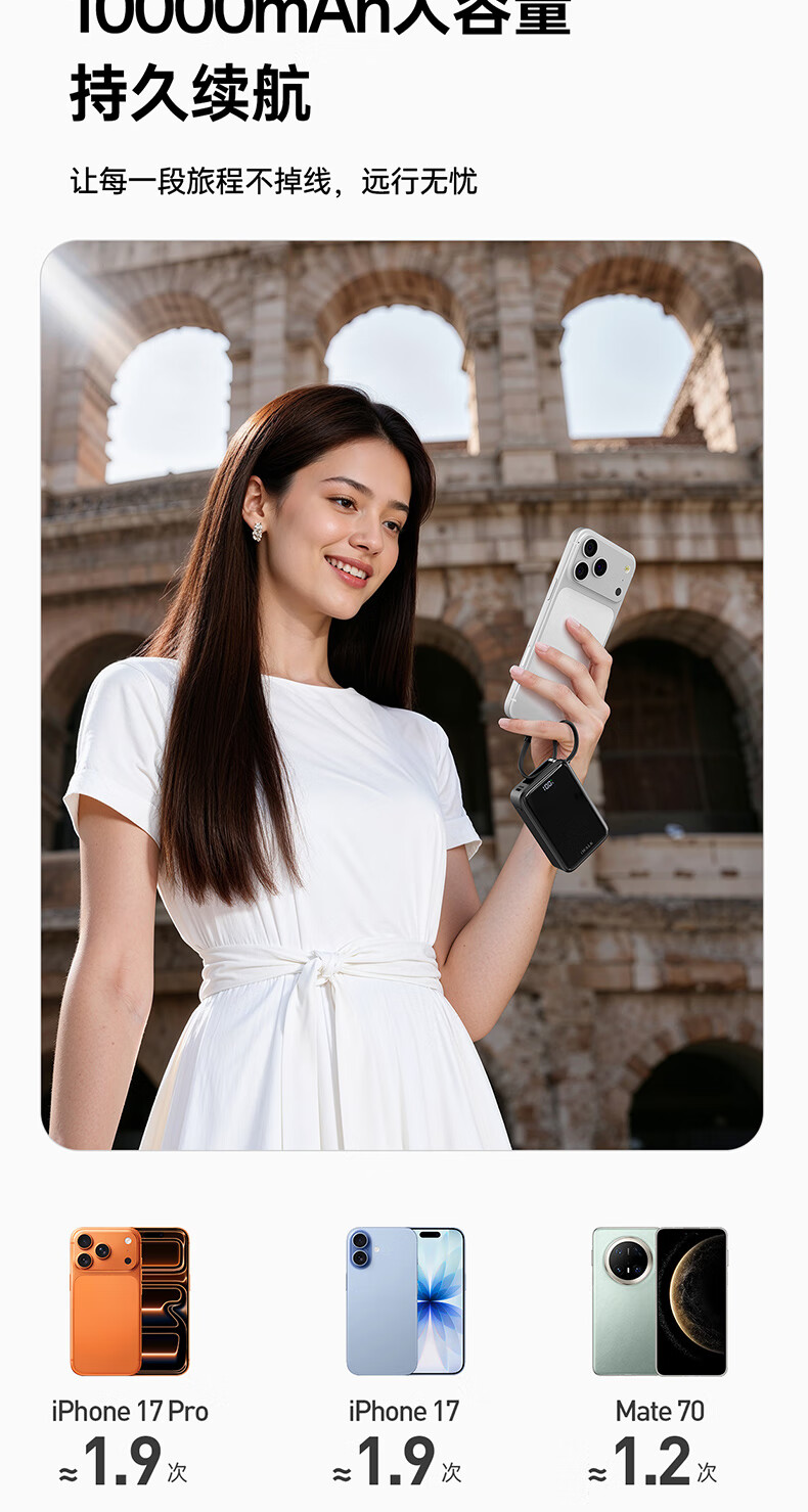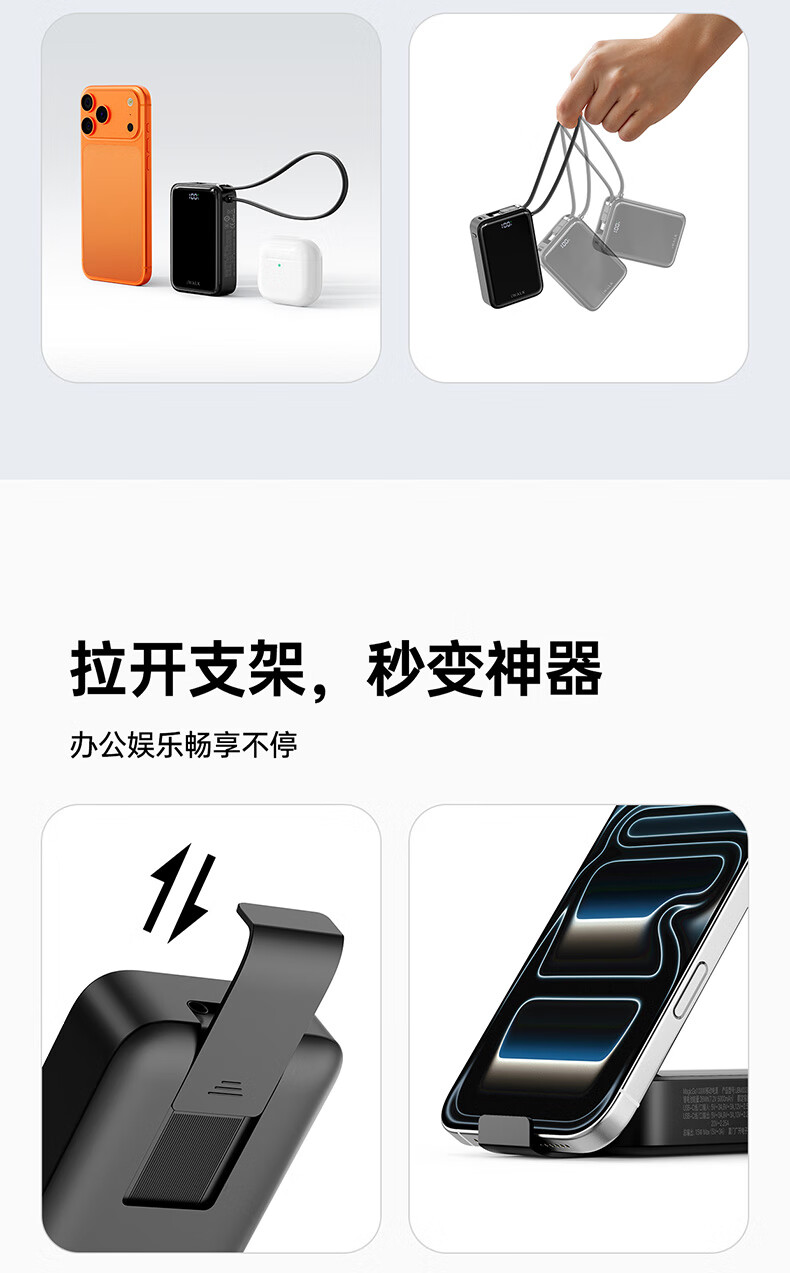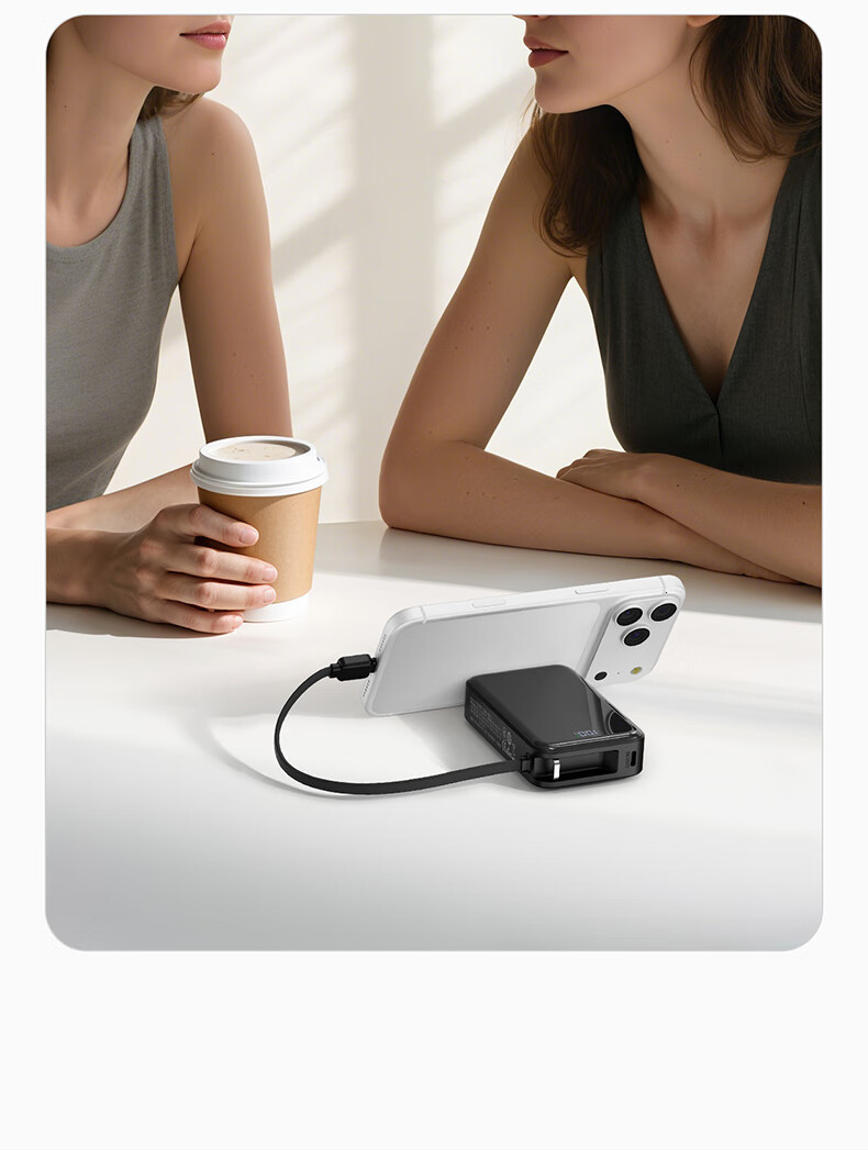 爱沃可(iWALK)45W自带线充电宝10000毫安自带双线双向快充大容量20000毫安电源便携3C可上飞机适用iphone17/华为 商务版20000毫安/45W快充/自带双线/白色