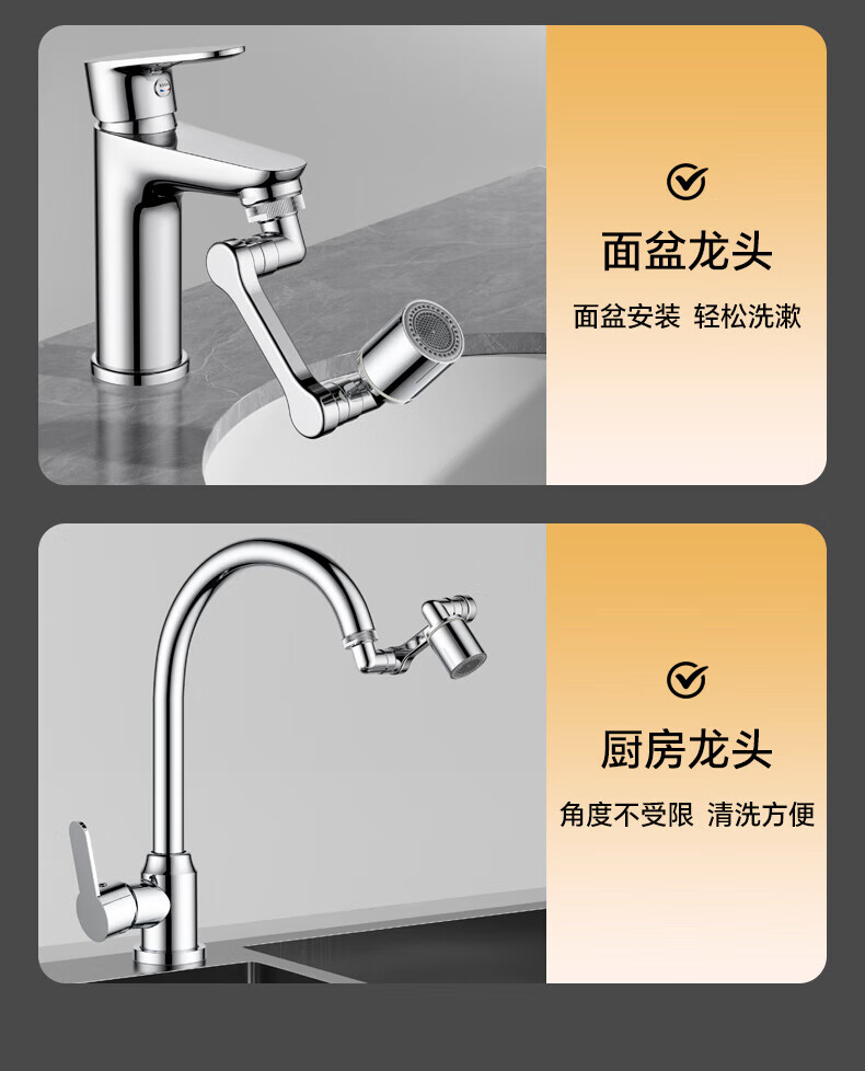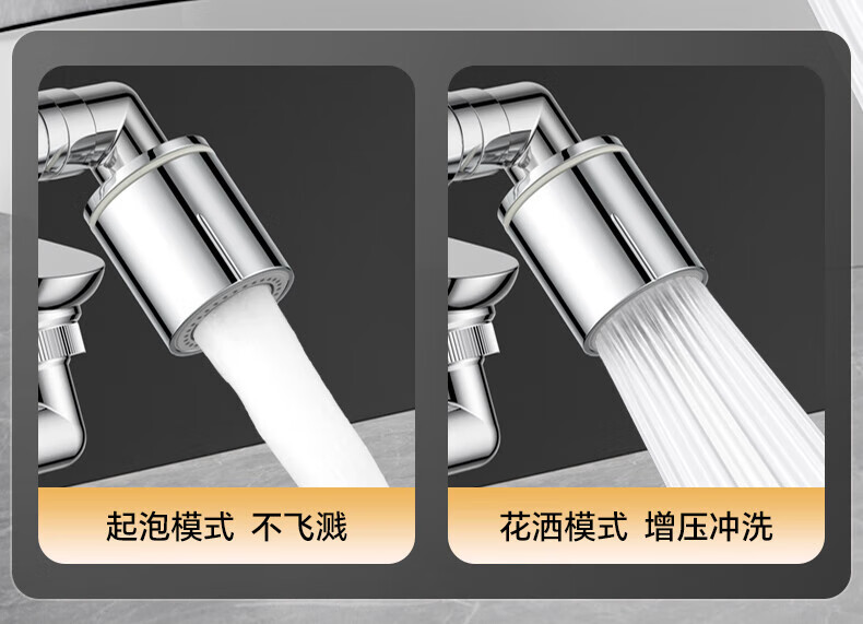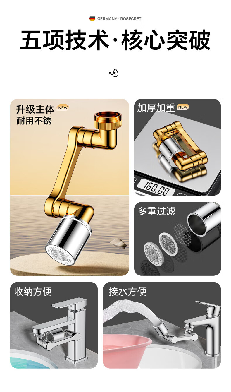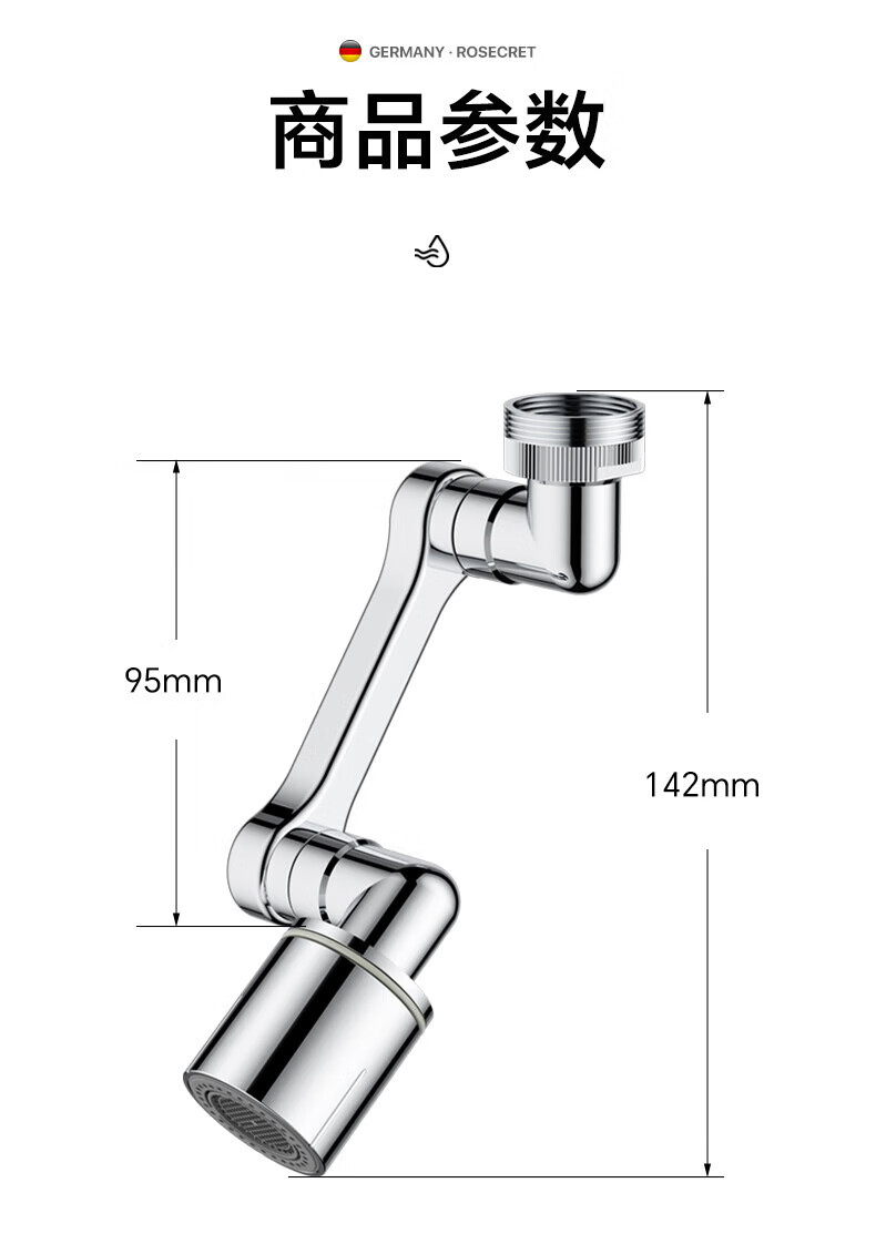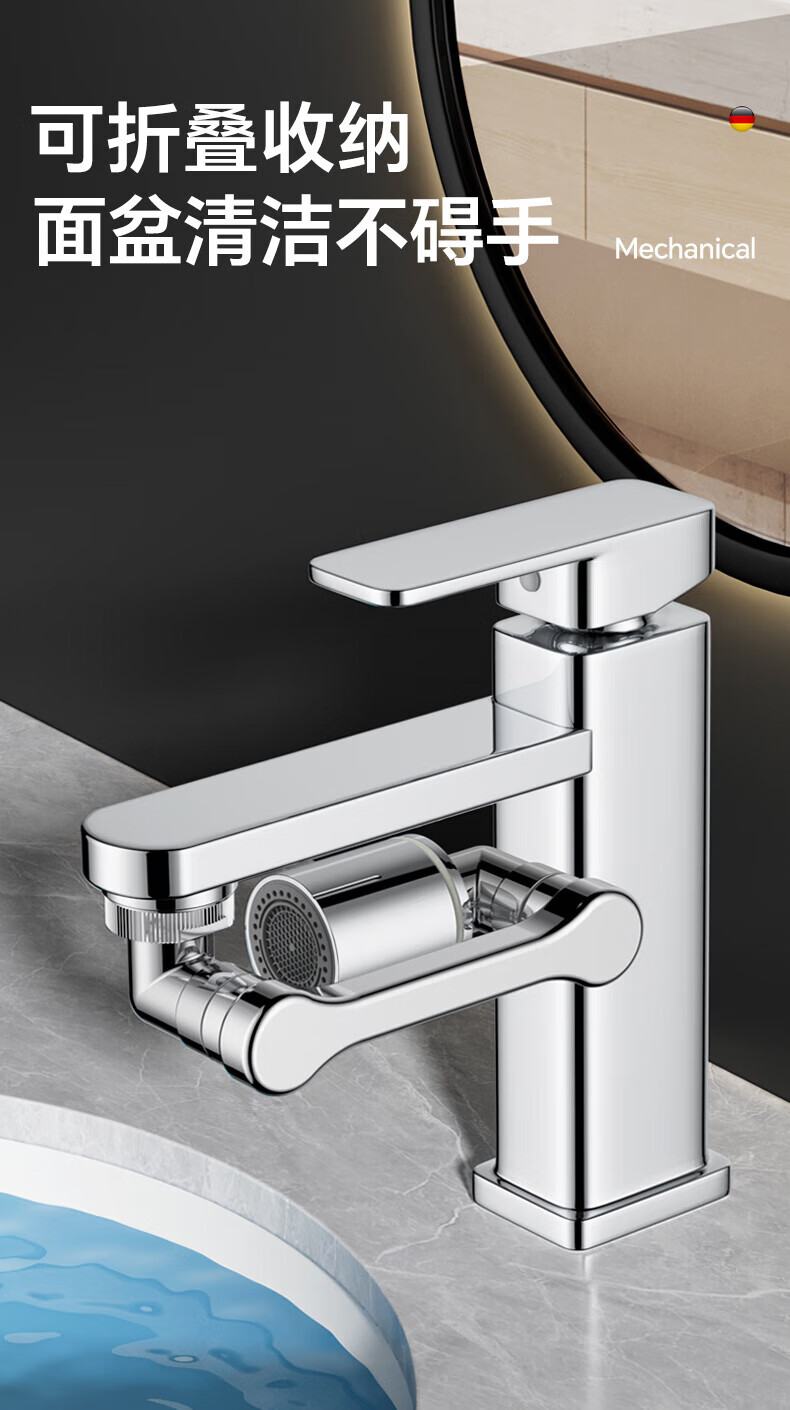Rosecret【德国】面盆水龙头延伸器多功能万向旋转机械臂增压防溅水起泡器 两档水龙头转接头【亮银色】全铜水嘴 加厚加重丨防锈防漏丨通用安装