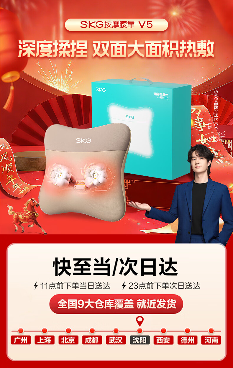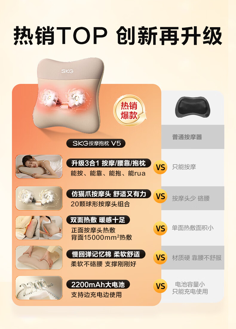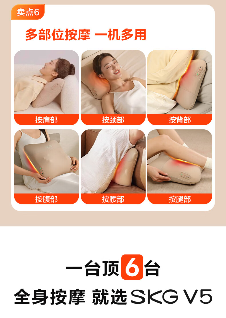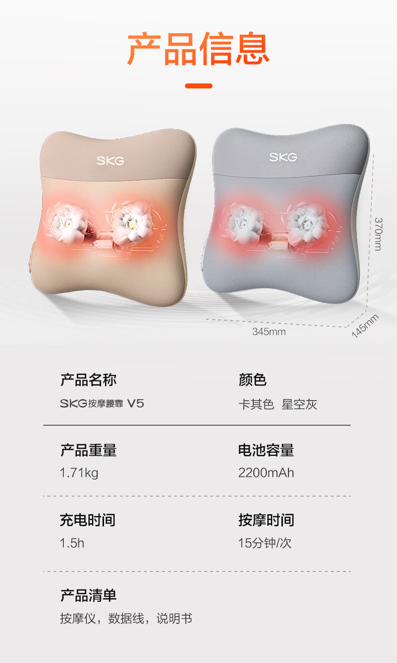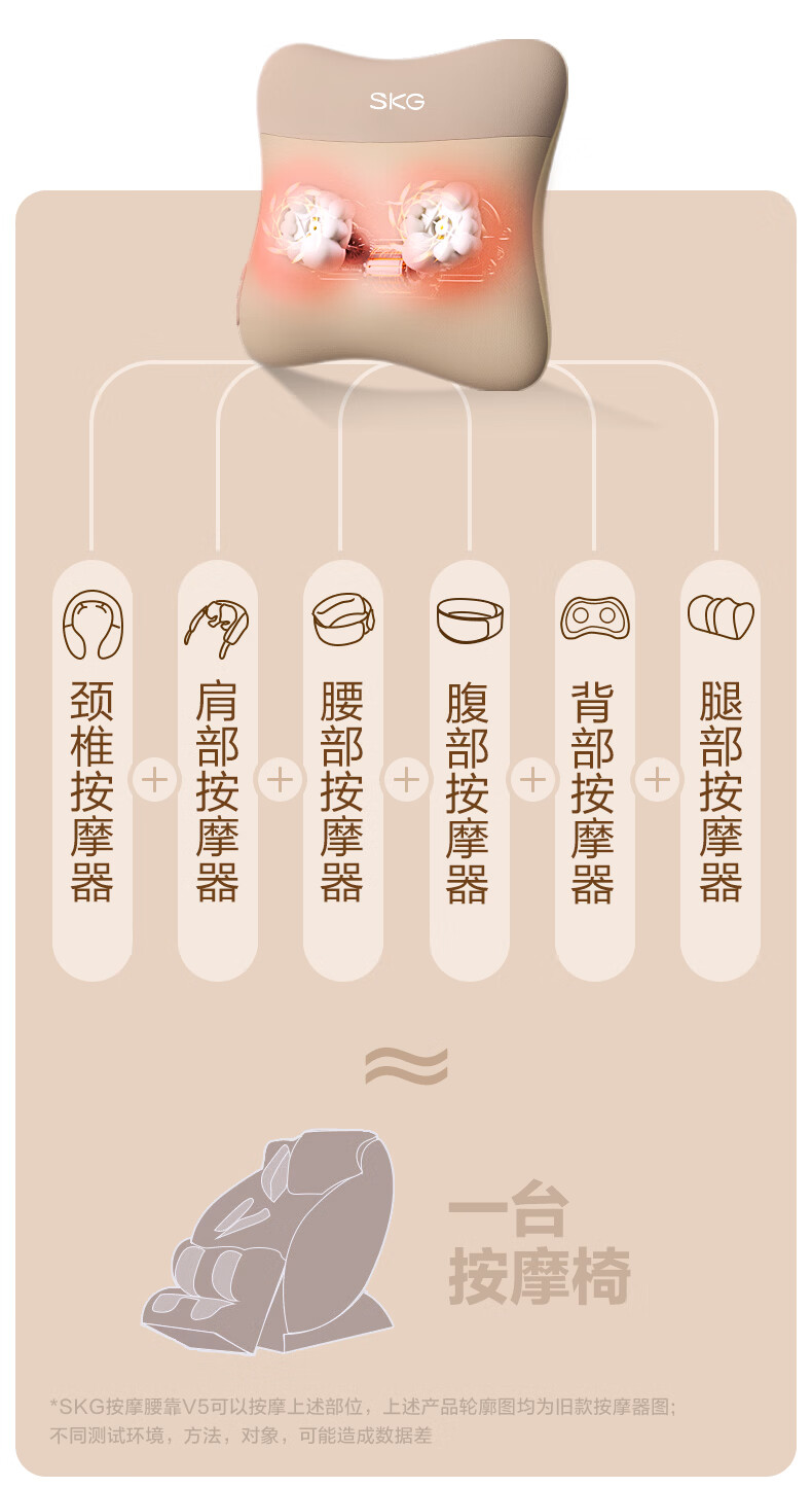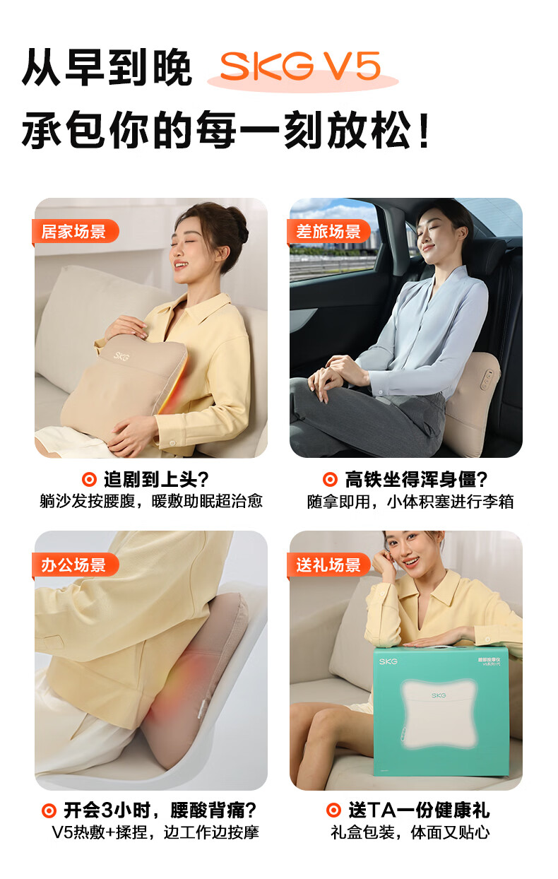 SKG腰部按摩器V5按摩仪颈椎肩颈腰背腿护腰神器热敷靠垫按摩腰靠 生日新年礼物实用送男女朋友长辈