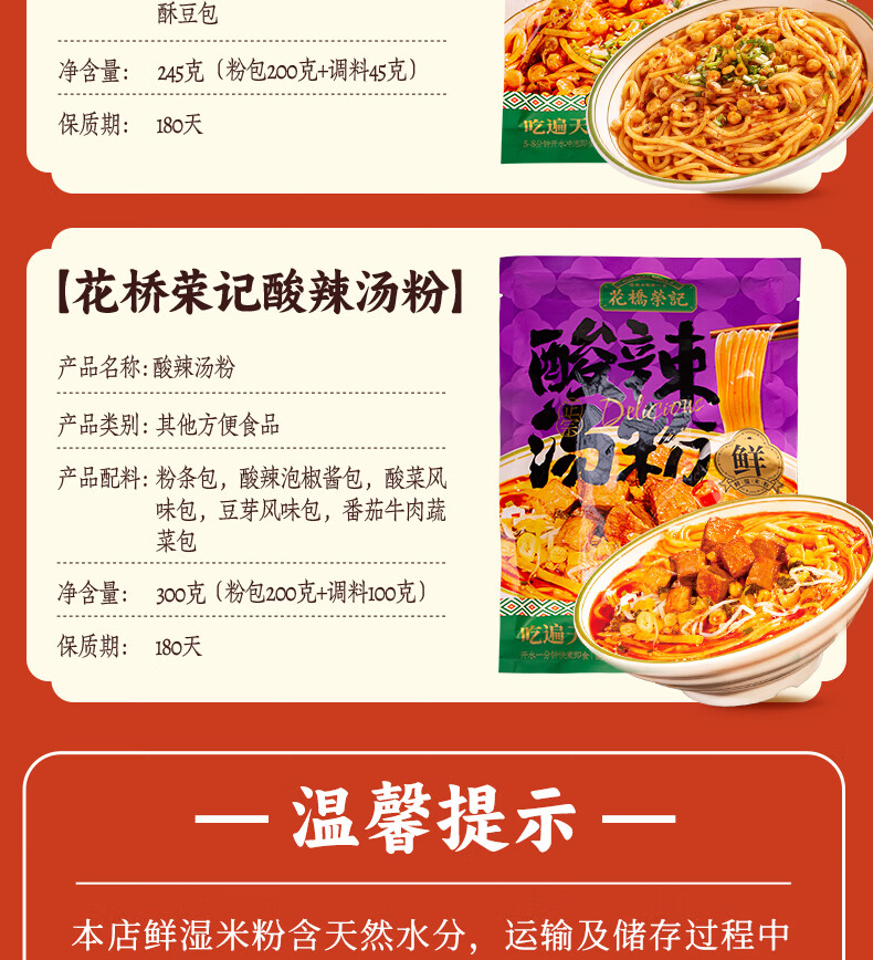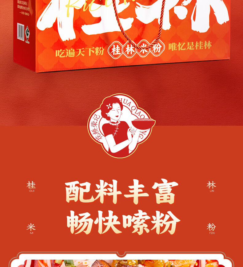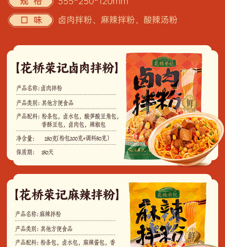 花桥荣记广西正宗桂林米粉伴手礼免煮冲泡特产六袋礼盒装送礼鲜湿米粉米线 1箱装(卤肉拌粉280g*6袋)