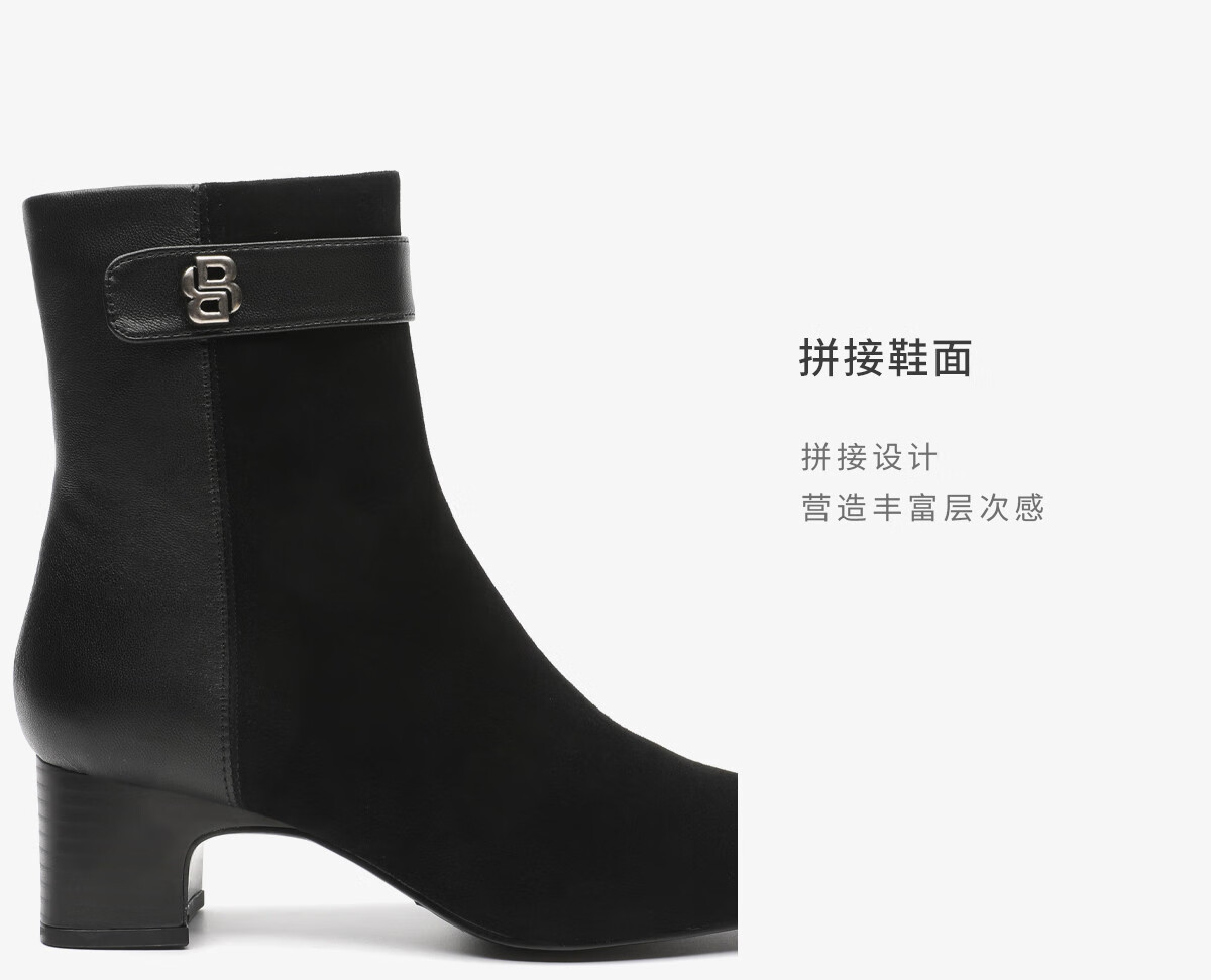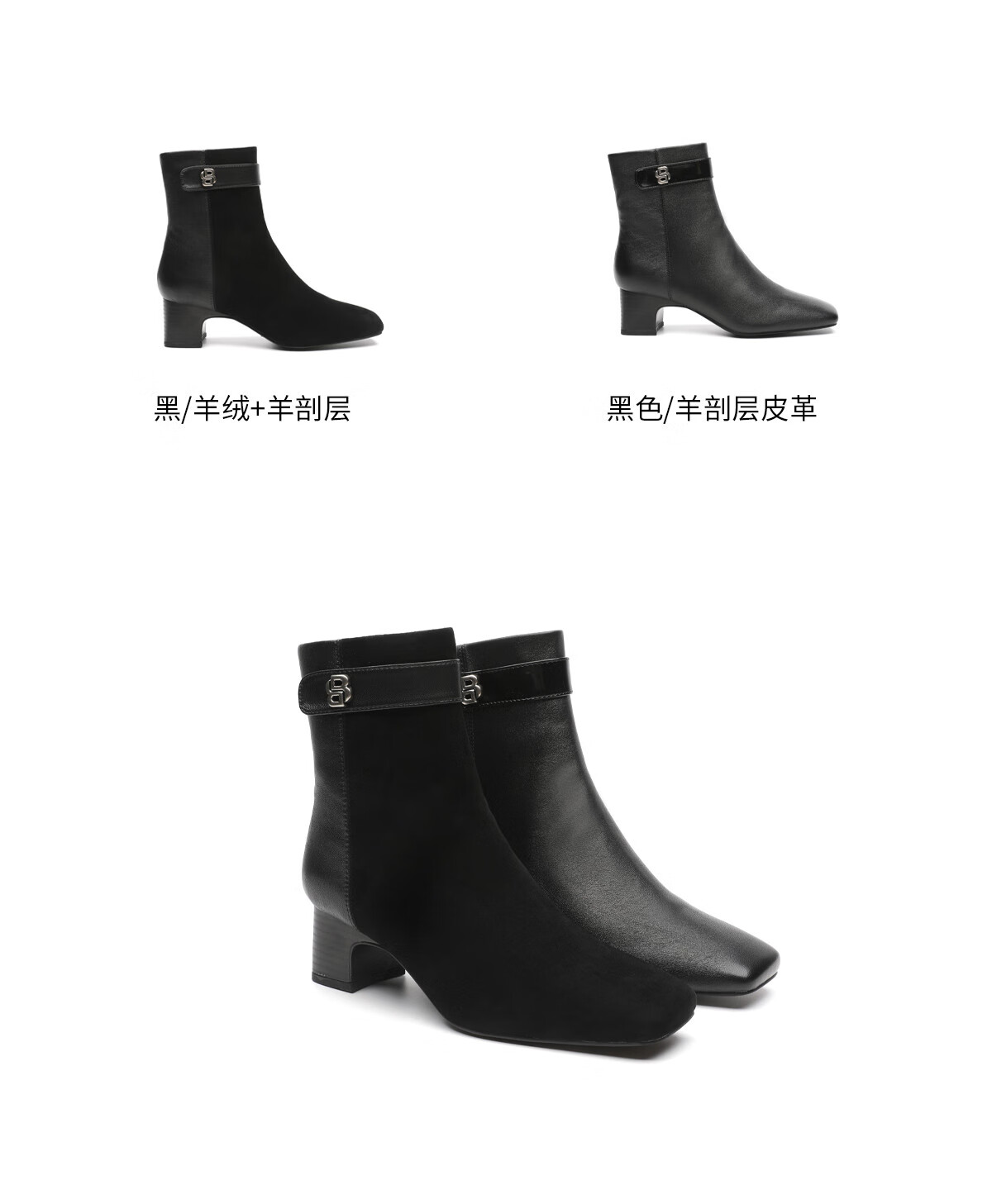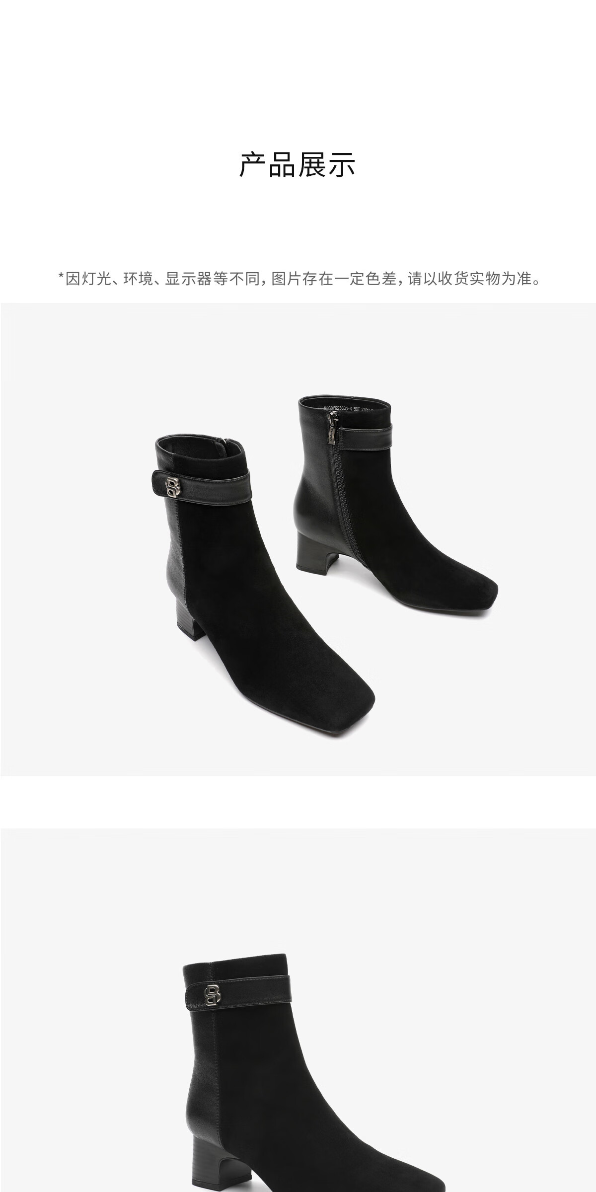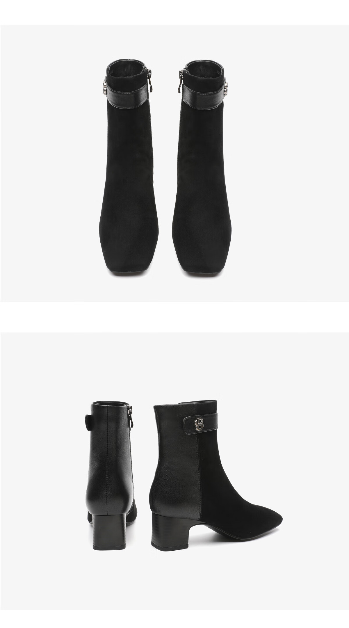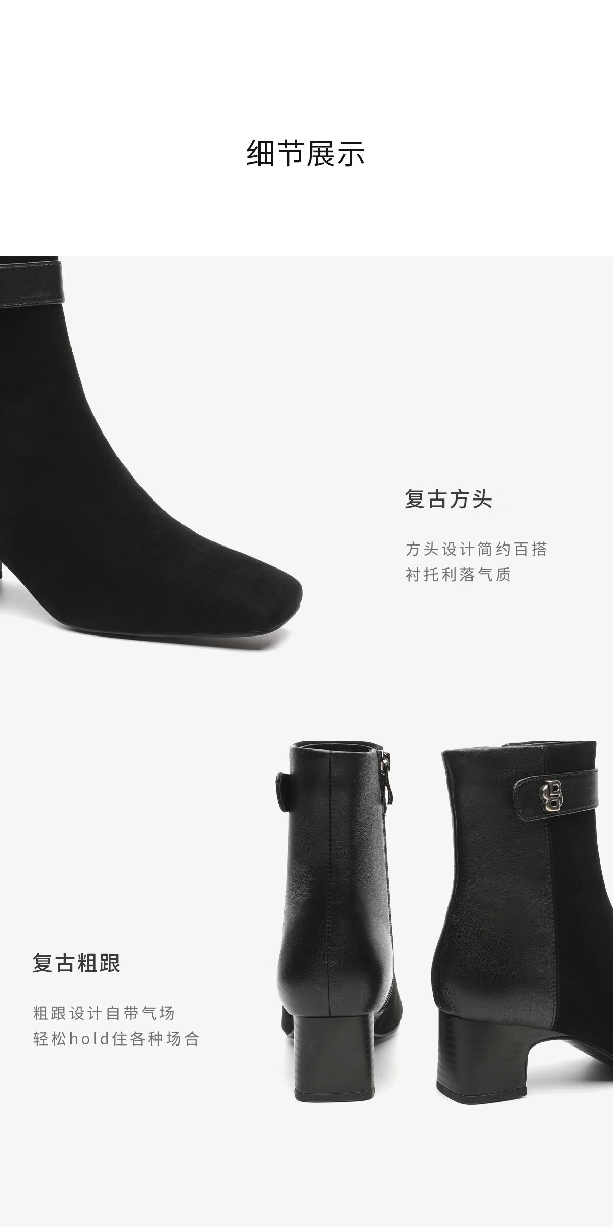 月芽儿2025新款时尚百搭短靴女高跟鞋女靴子方头瘦瘦靴短筒靴 绒里黑色01T 34