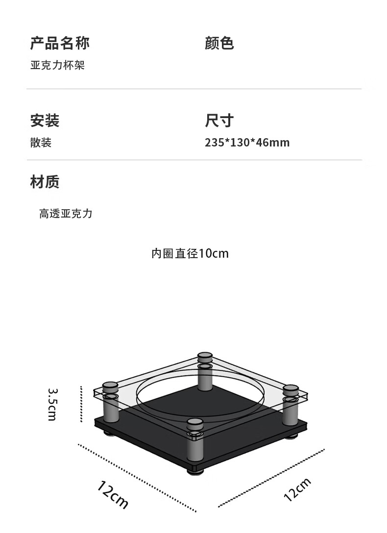 衍潇透明杯垫亚克力方形桌面沥水防滑隔热垫办公家用彩色茶拖创意轻奢 宝蓝色