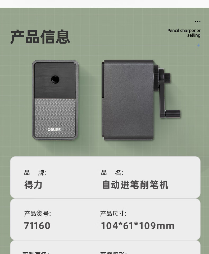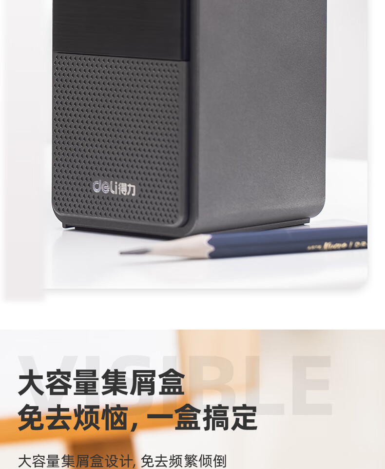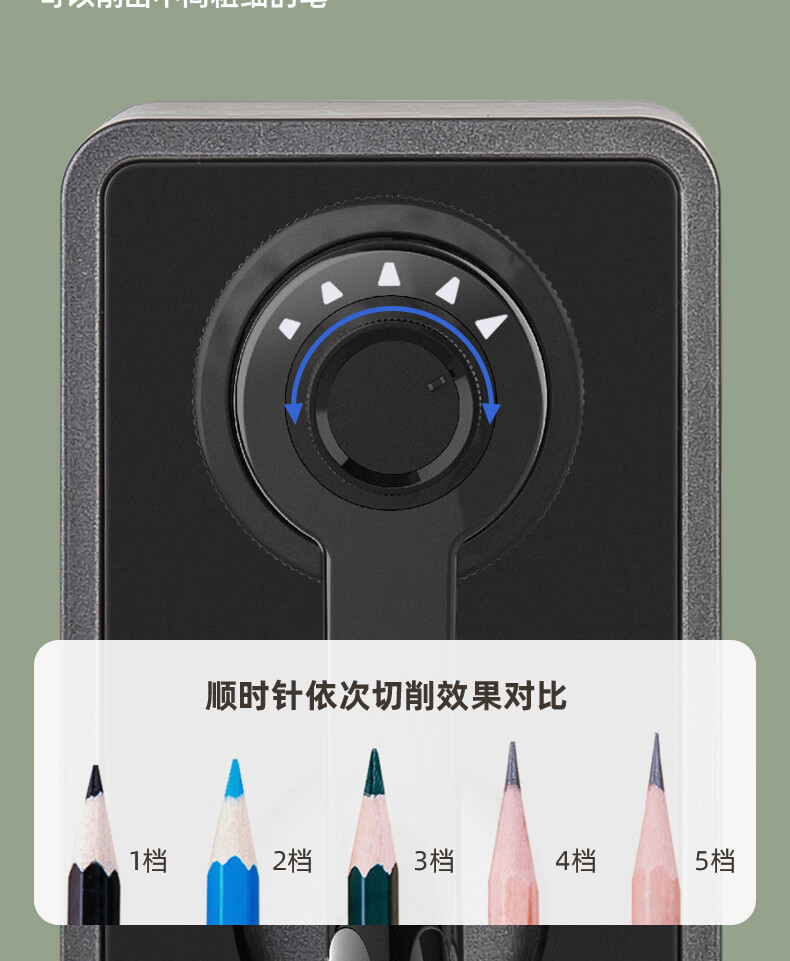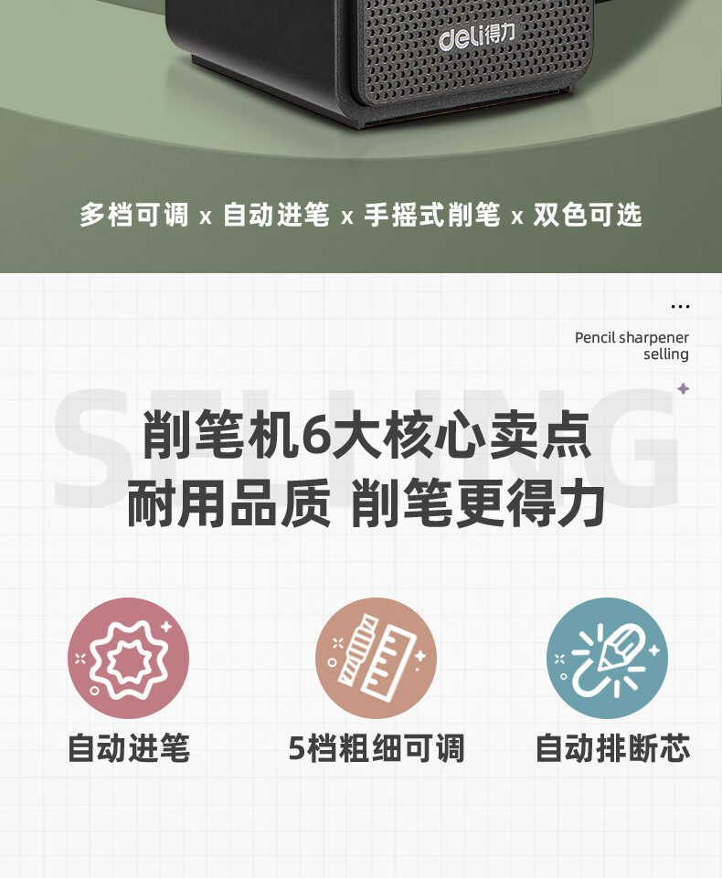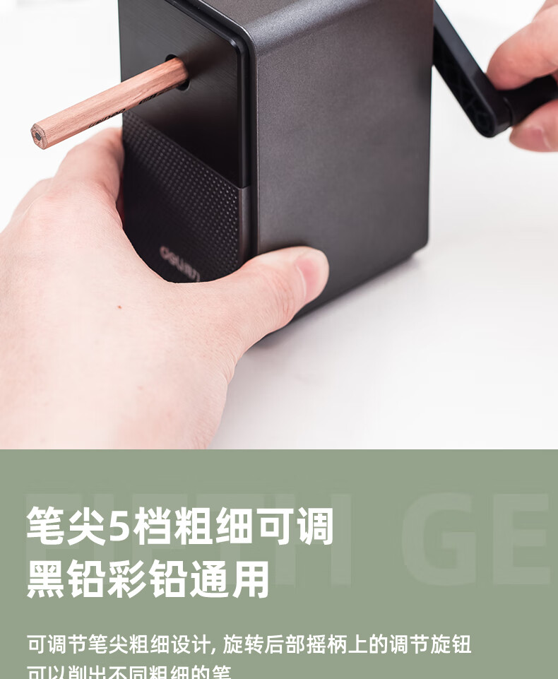 得力(deli)学生削笔机器5档笔尖粗细可调节自动进笔手摇铅笔卷笔转笔刀削笔刀学生文具生日考试开学礼物 黑