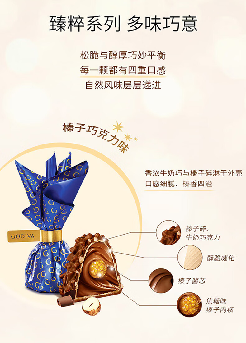 歌帝梵臻粹夹心果仁巧克力礼盒送人高端休闲零食 生日礼物女士 【浪漫星空】臻粹果仁礼盒20颗装200g