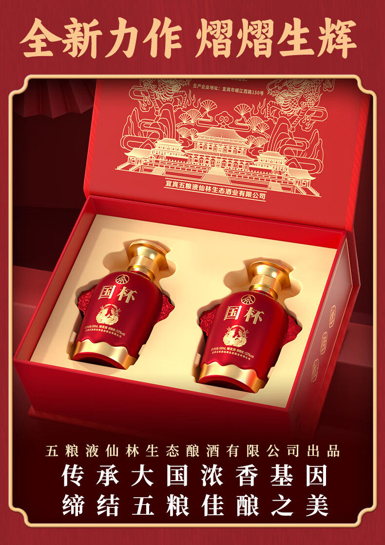 五粮液仙林生态国杯礼盒 52度500ml*2瓶 宴请送礼酒水