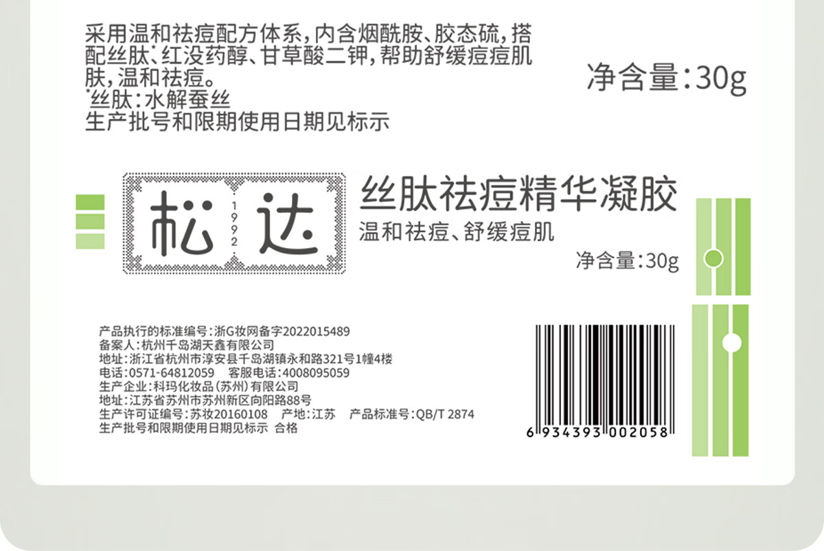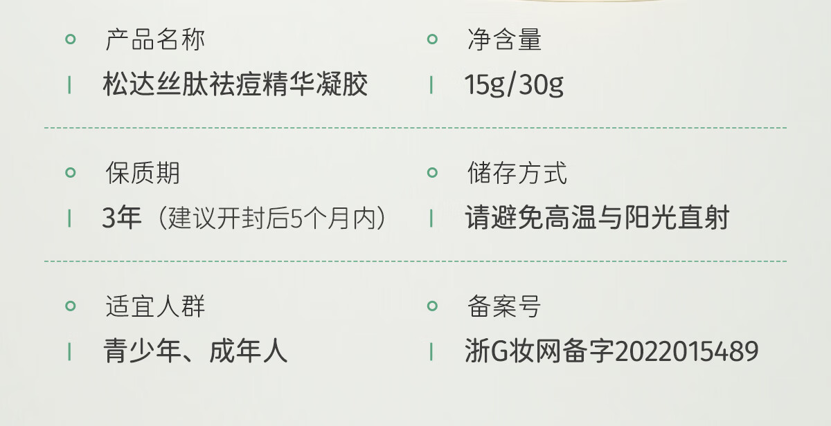 松达丝肽精华护理祛痘凝胶控油淡化痘印痘坑 丝肽祛痘凝胶15g/支