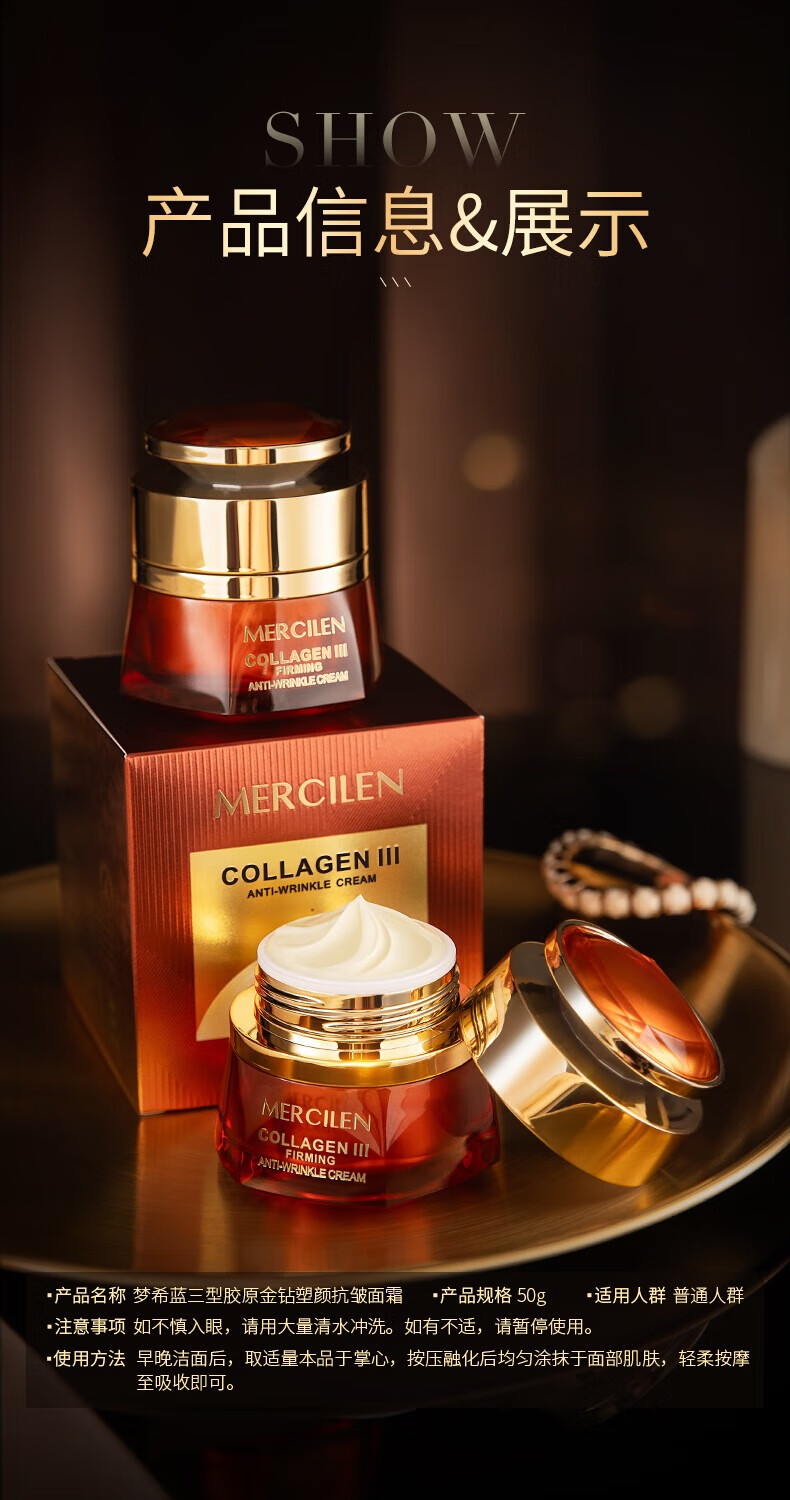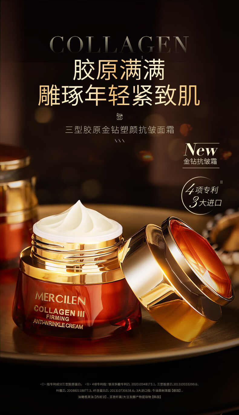 梦希蓝三型胶原金钻塑颜抗皱面霜提拉紧致淡化细纹皮肤松弛去皱纹抗衰老 塑颜抗皱面霜*1瓶 50g 【淡化肌肤细纹】