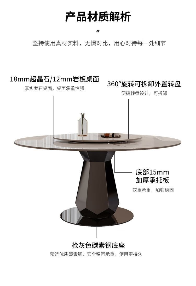 布欧格意式高端超晶石小户型现代简约圆形岩板圆桌带转盘微晶石餐桌家用 【18mm超晶石】圆桌 120x120x76cm
