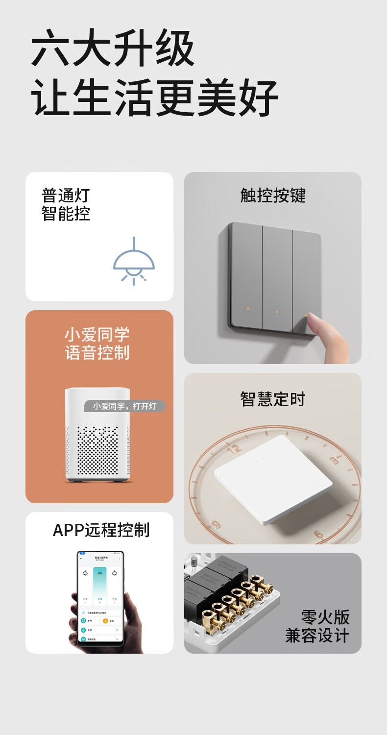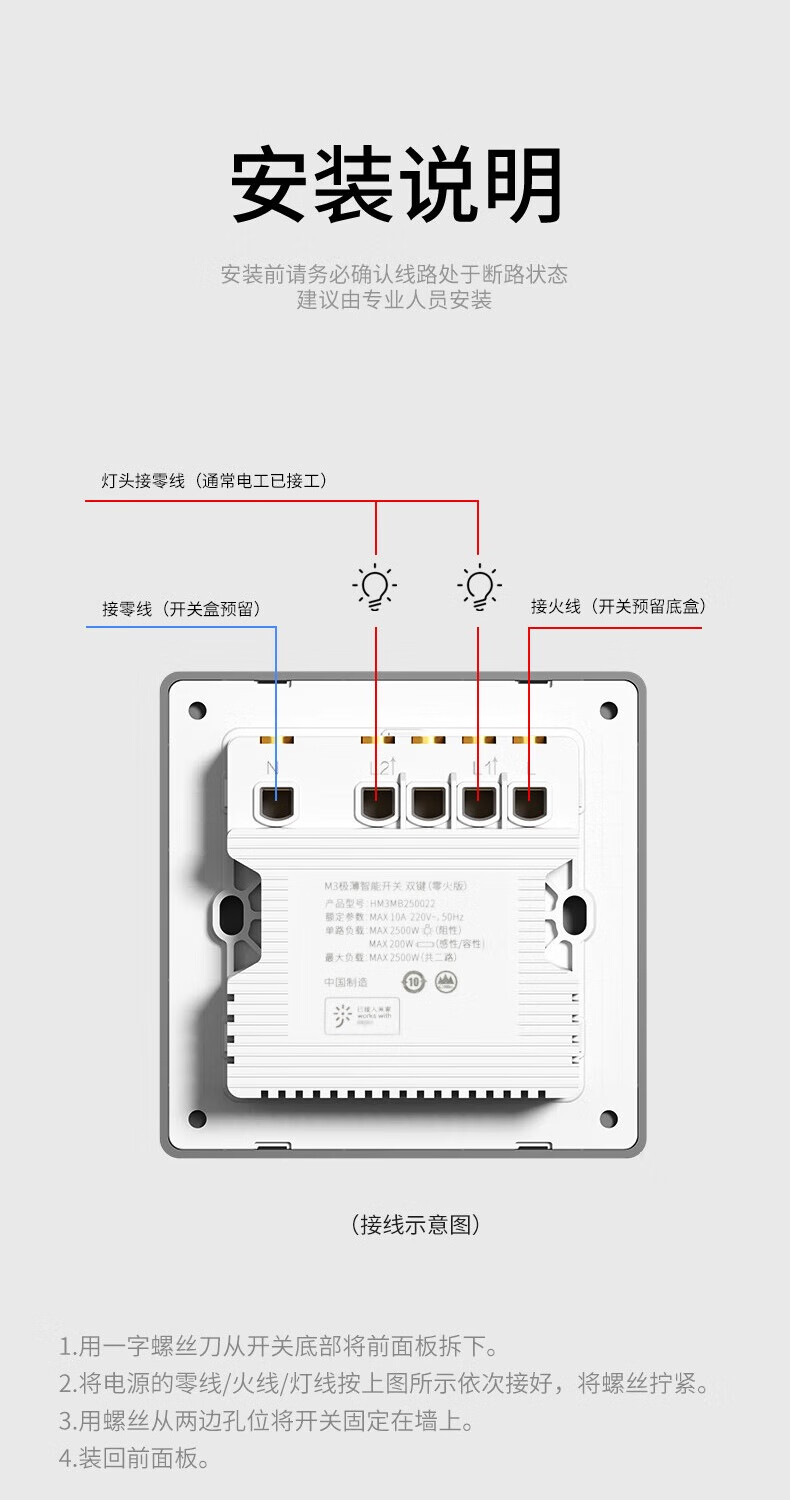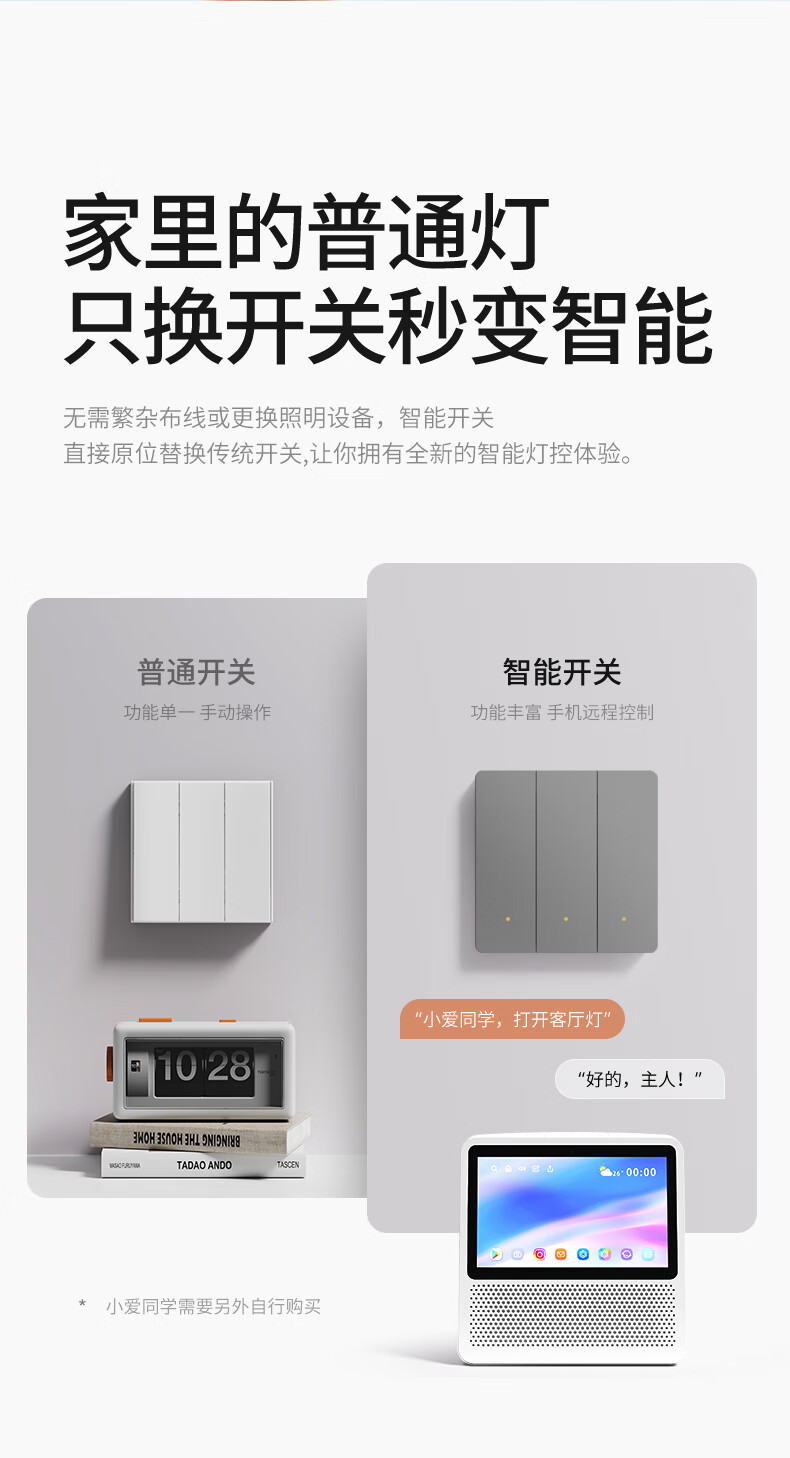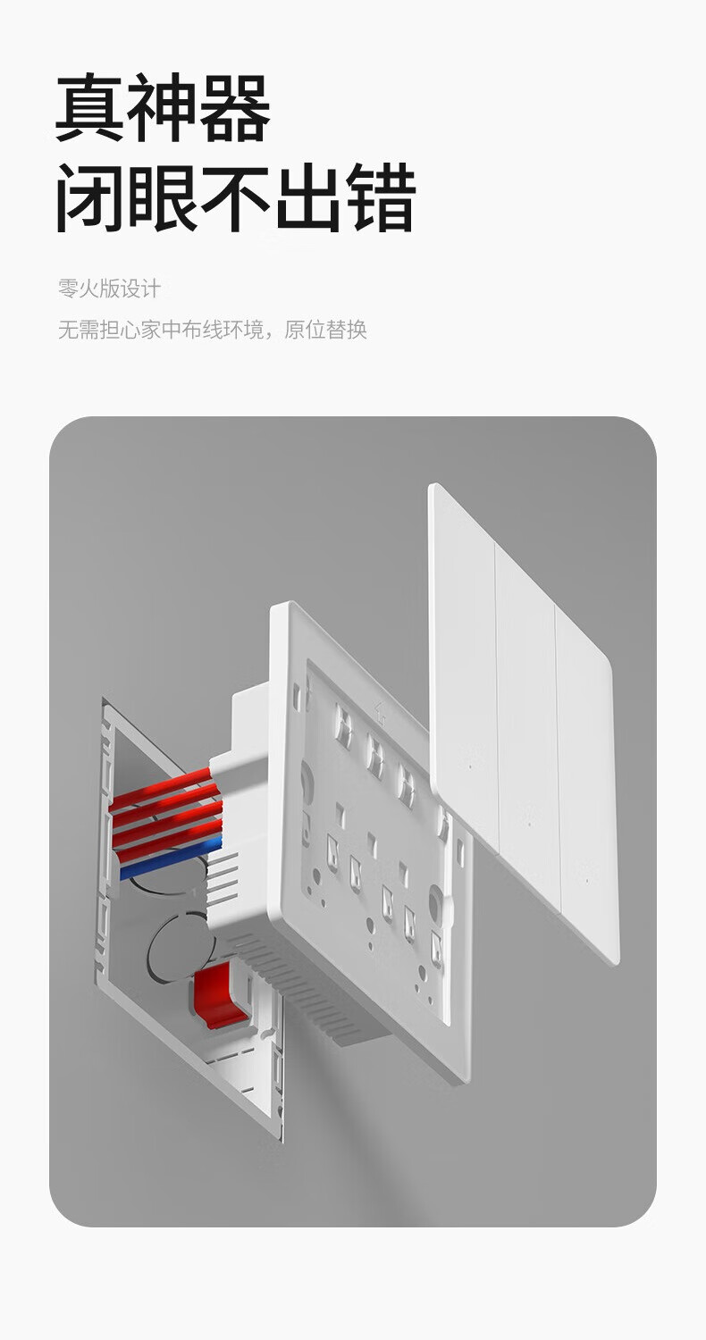 小米家智能已接入米家app智能开关支持蓝牙mesh2.0支持小爱同学语音灯控 白色零火版(三开)-需要有零线
