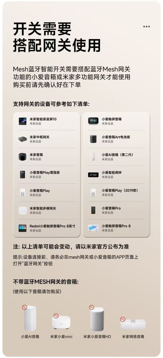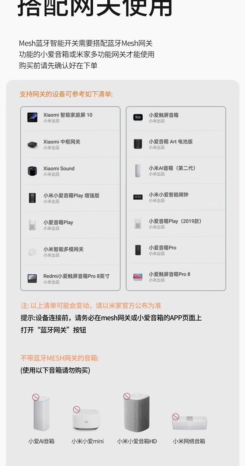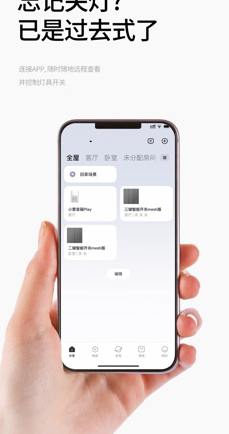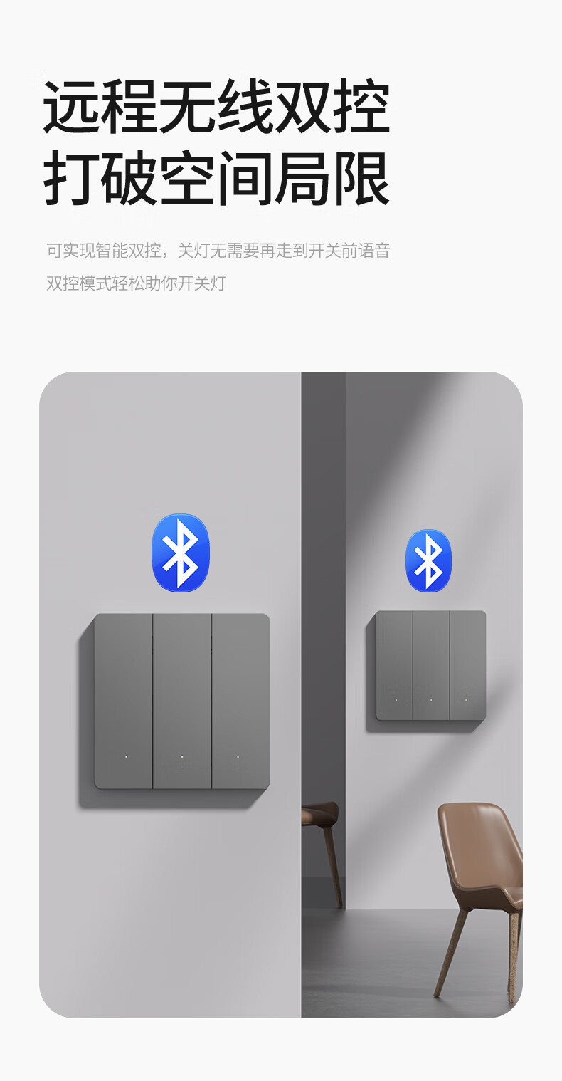 小米家智能已接入米家app智能开关支持蓝牙mesh2.0支持小爱同学语音灯控 白色零火版(三开)-需要有零线