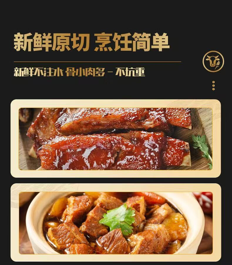 蒙巴布撒正宗内蒙古草饲牛排新鲜现杀黄膘牛肋排节日礼盒 净重5斤赠韭菜花+卤料礼盒装