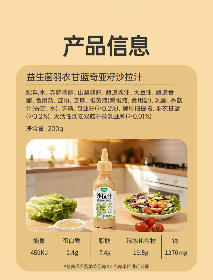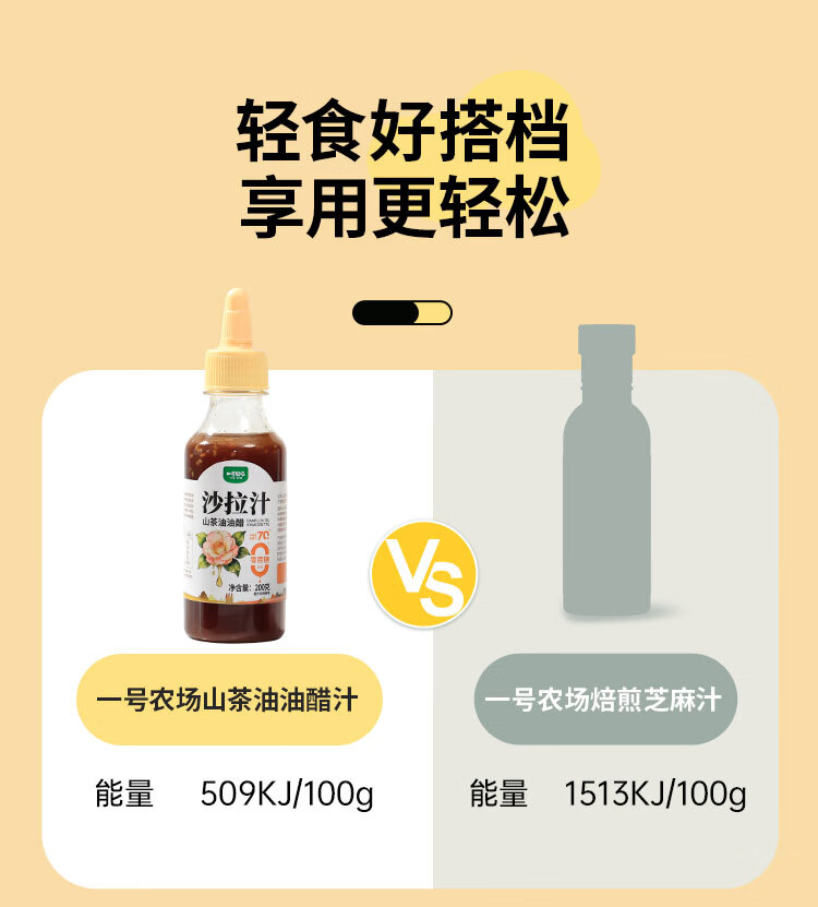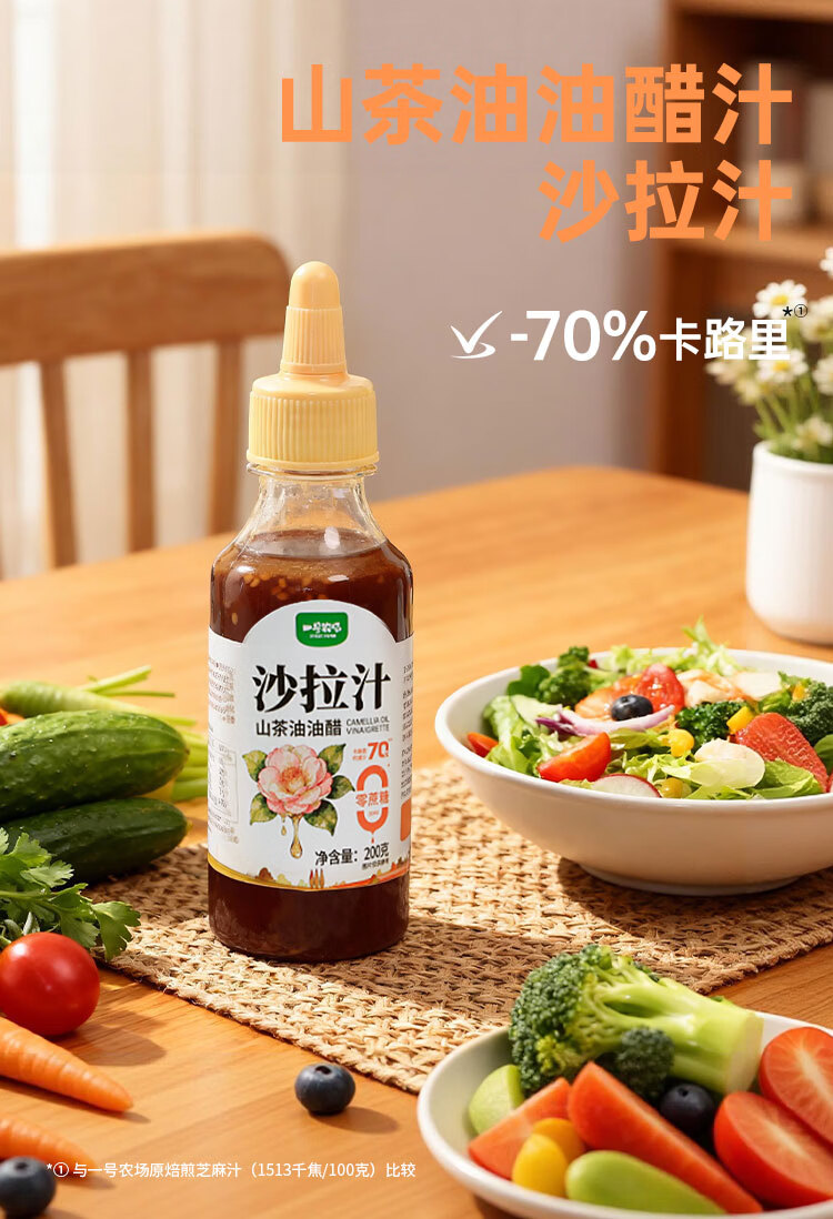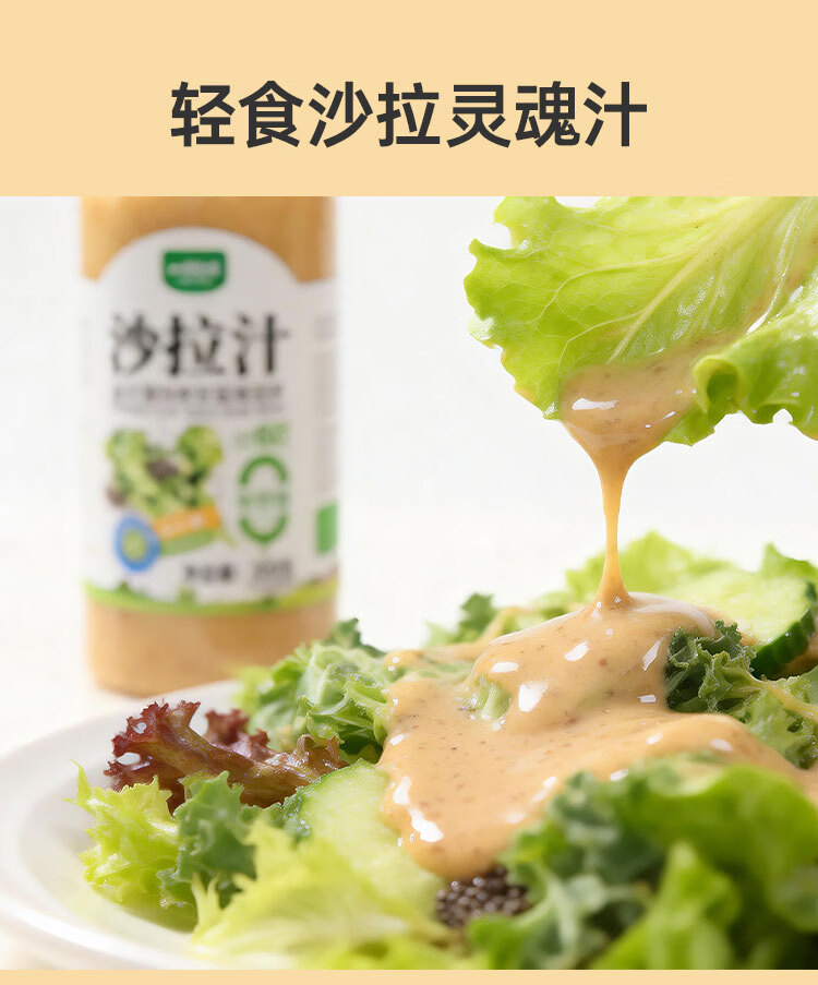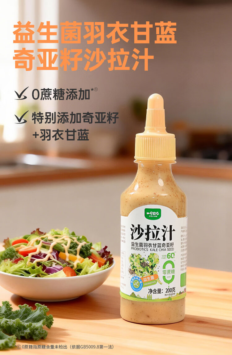 一号农场益生菌羽衣甘蓝奇亚籽沙拉汁轻食酱汁油醋汁牛排调料蔬菜沙拉拌酱 3包田园+益生菌沙拉汁200g
