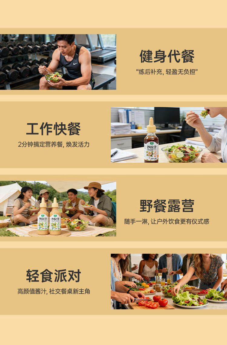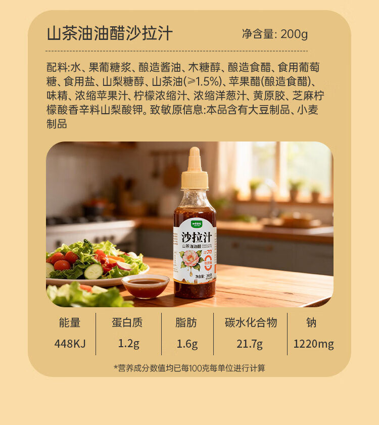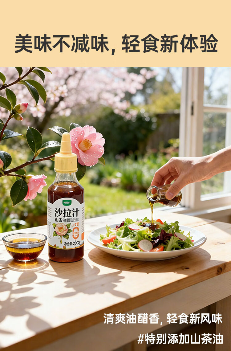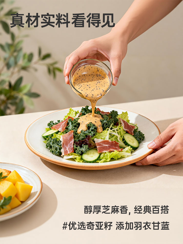 一号农场益生菌羽衣甘蓝奇亚籽沙拉汁轻食酱汁油醋汁牛排调料蔬菜沙拉拌酱 3包田园+益生菌沙拉汁200g