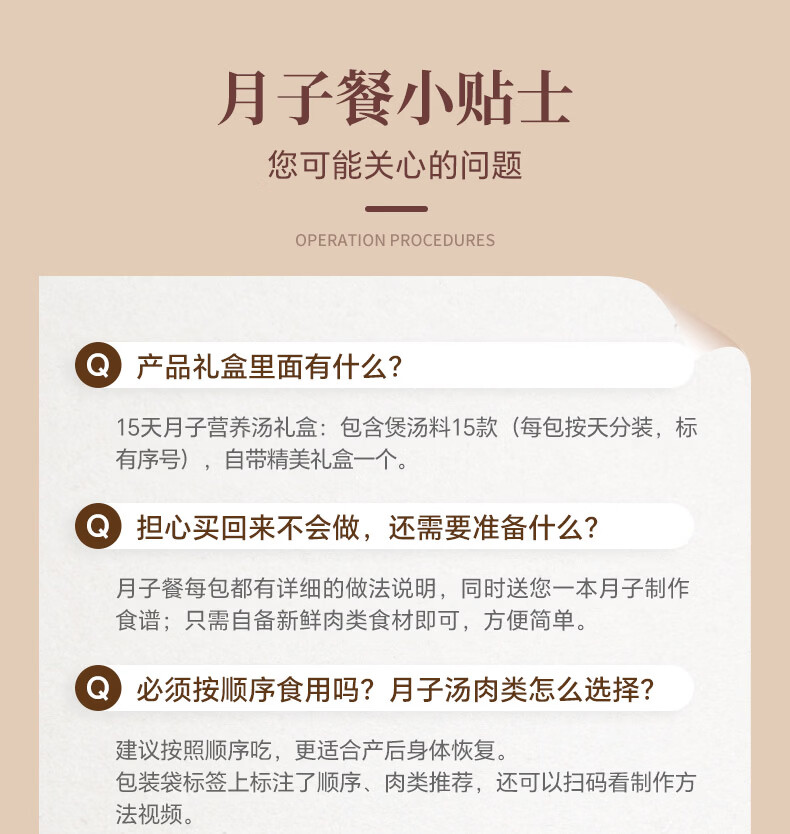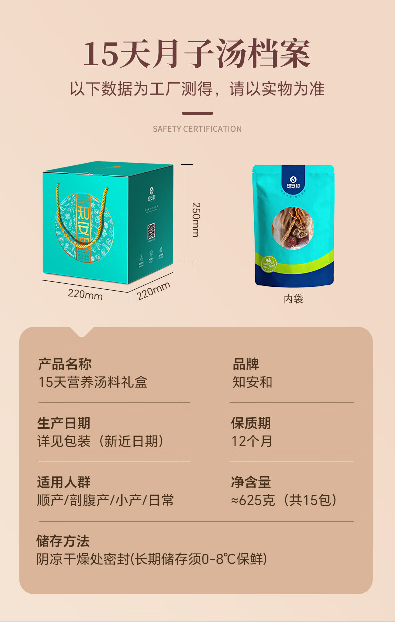 知安和月子汤料包月子餐食材包煲汤产后坐月子补品人流小产小月子营养品 15天月子汤(礼盒装)