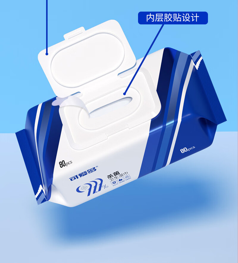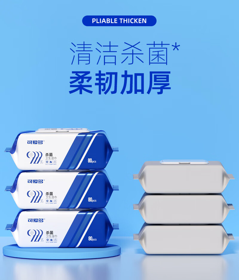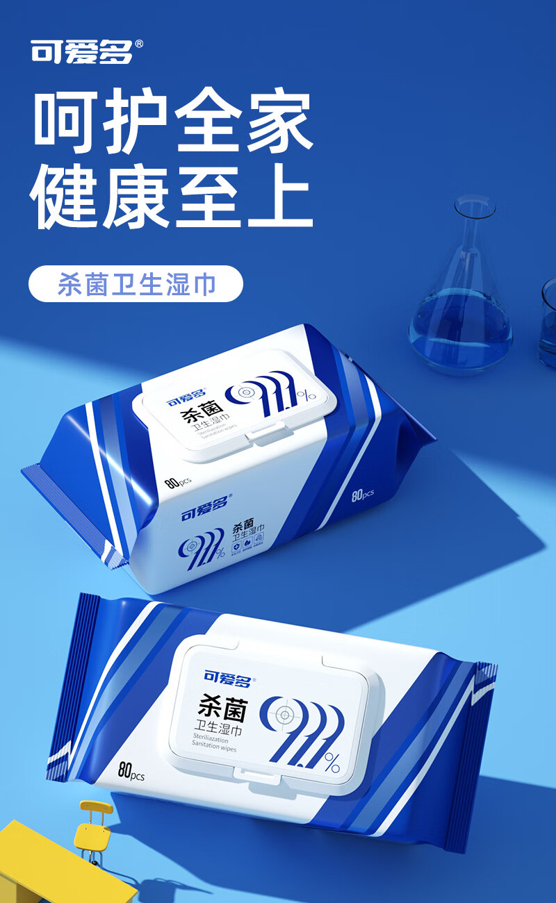 可爱多99.9%杀菌湿巾母婴可用湿纸巾不含酒精消毒湿巾 【家用优选】 80抽 3包