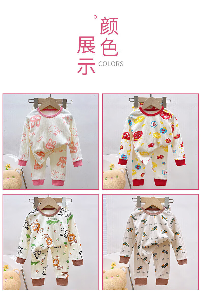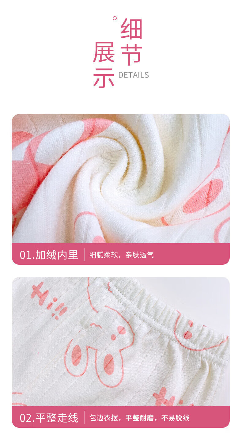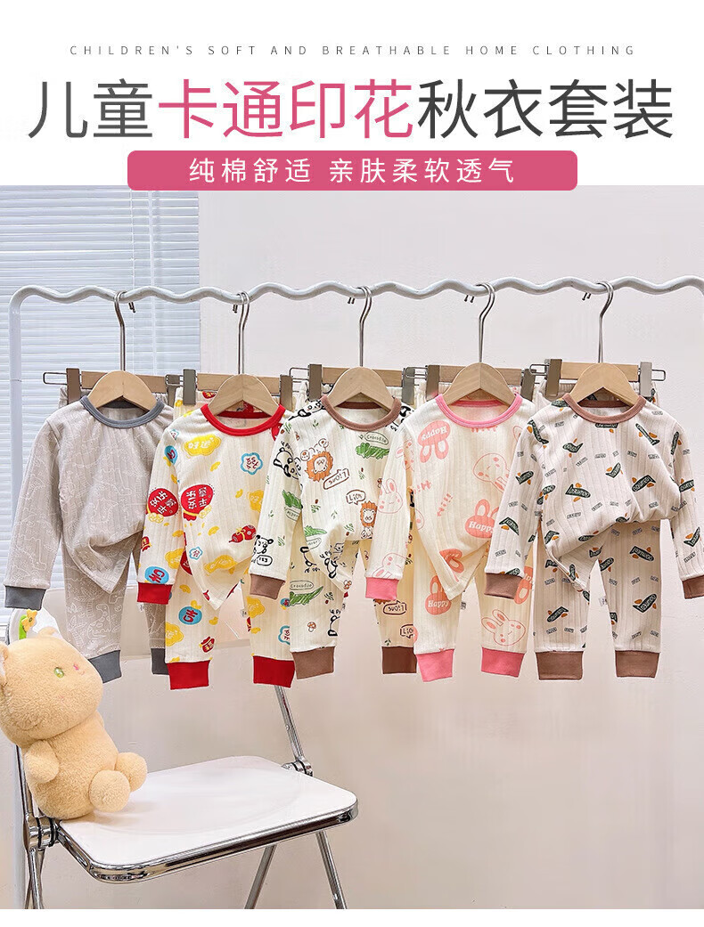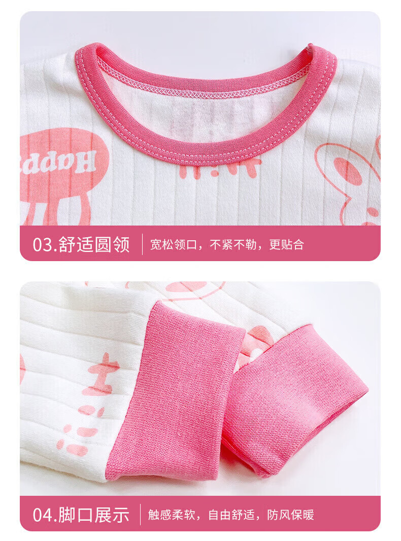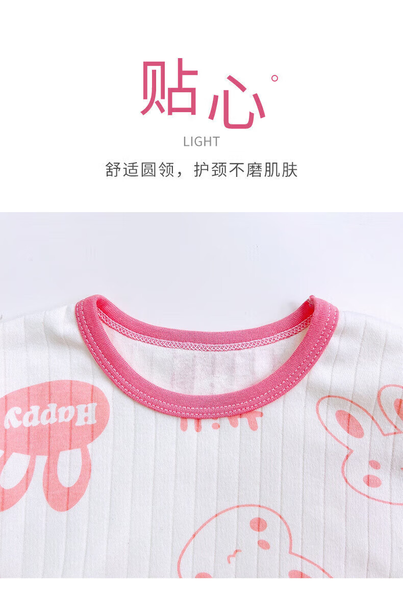 小猪班纳(PEPCO)儿童内衣套装秋冬纯棉秋衣秋裤男童女童A类宝宝保暖内衣童装 套装-米白底简约小兔 140 (身高130-140)