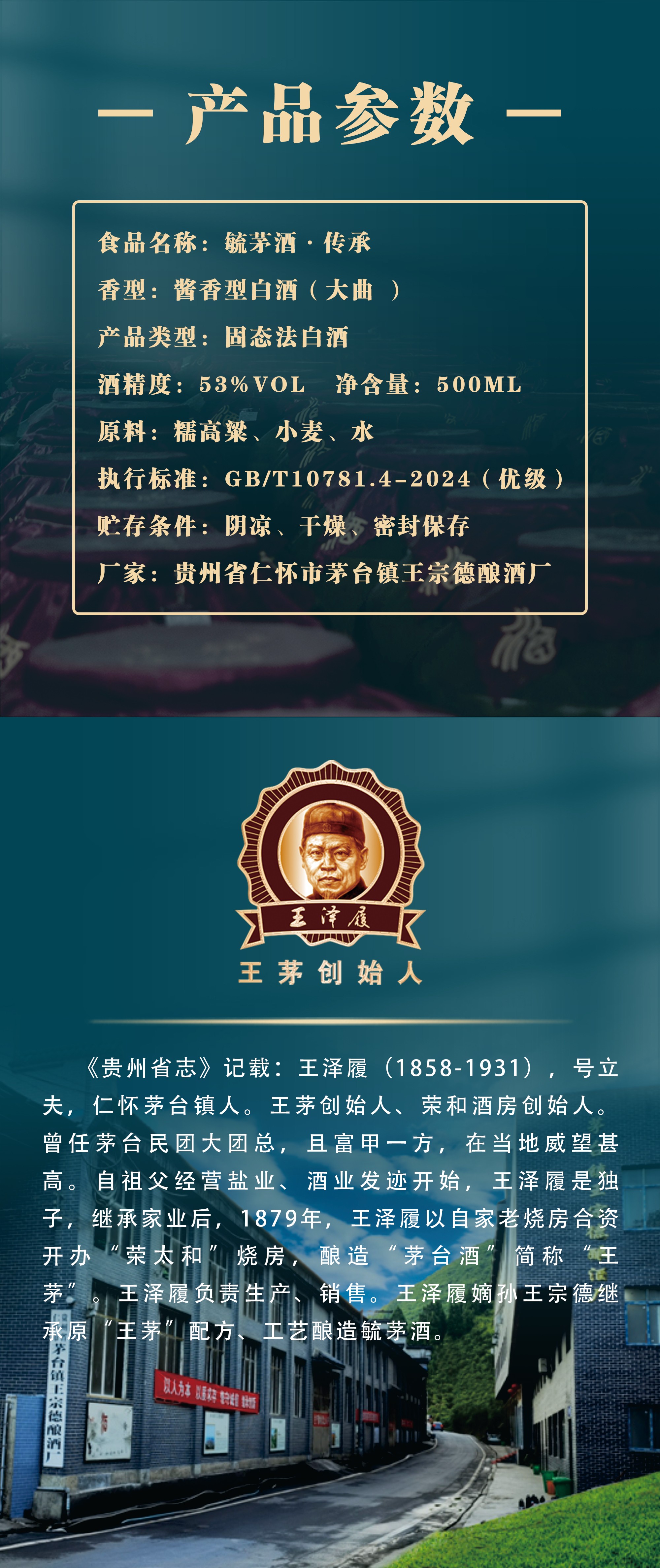毓茅酒传承经典酱香型贵州王家茅酒创始人纯粮食高度白酒商务礼盒装 53度 500mL 1瓶