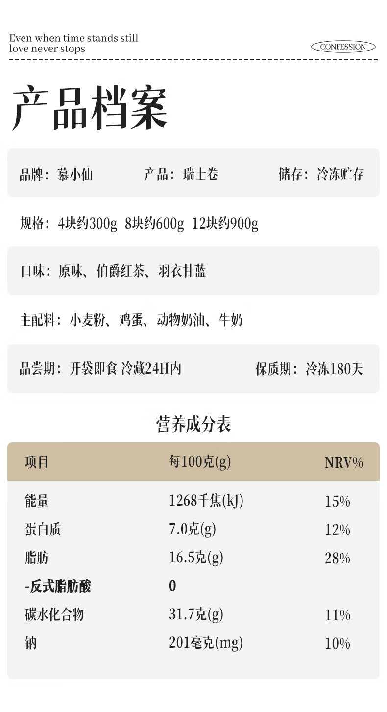 慕小仙瑞士卷300g/盒甜品糕点点心零食下午茶早餐情人节送人礼物礼盒 【1盒】羽衣甘蓝