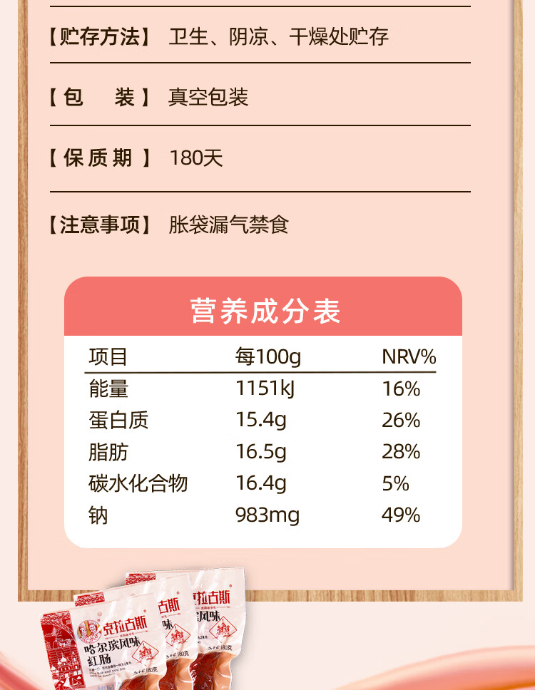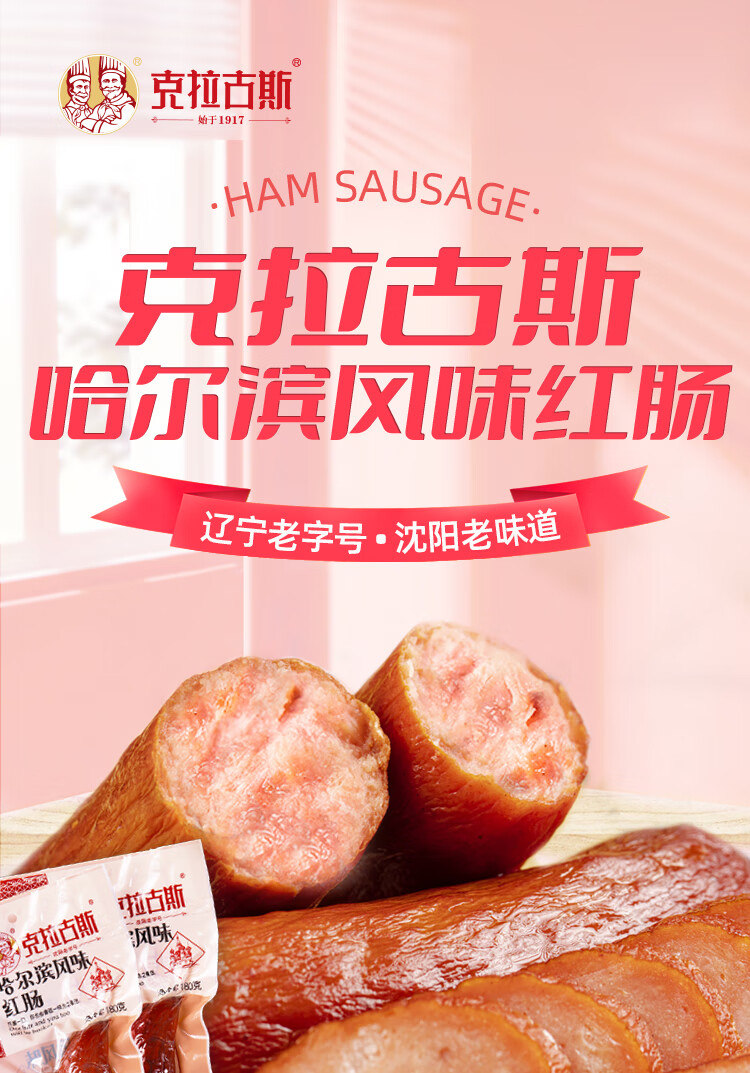 克拉古斯哈尔滨风味红肠俄罗斯风味香肠开袋即食蒜味香肠零食早餐沈阳特产 540g红肠【180g*3袋】