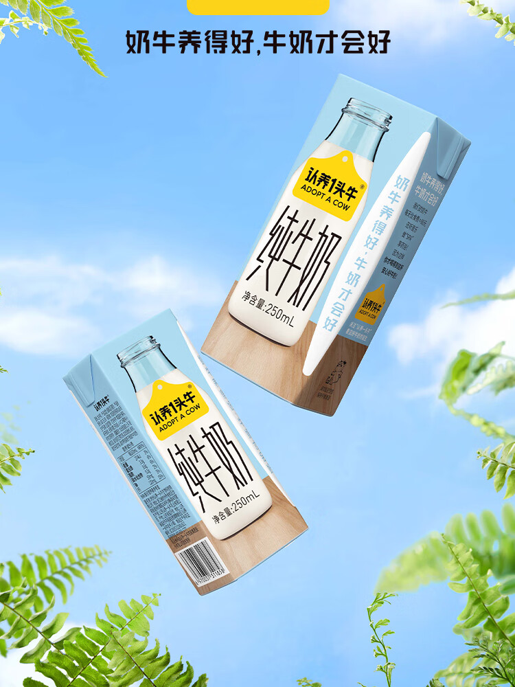 认养一头牛全脂纯牛奶250ml*12盒/箱 学生纯奶 整箱纯牛奶部分6月 250ml*12盒*2箱 中秋送礼