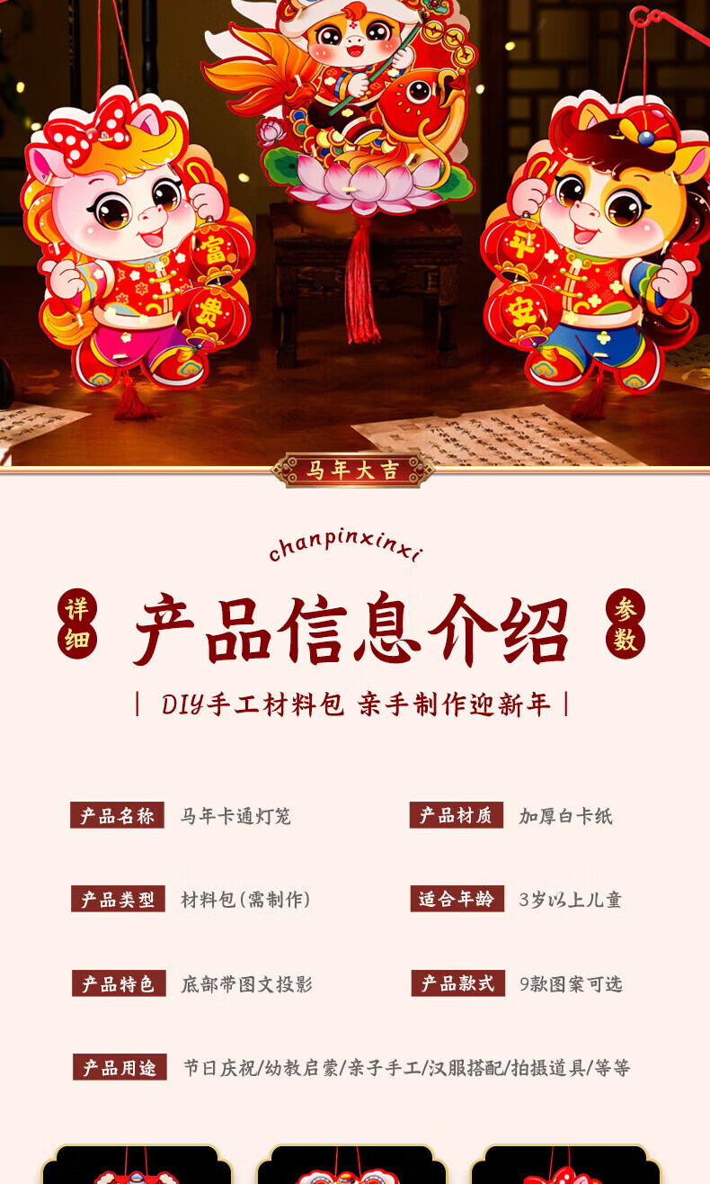 清洁JTT 春节灯笼混搭2个装 diy马年投影灯笼