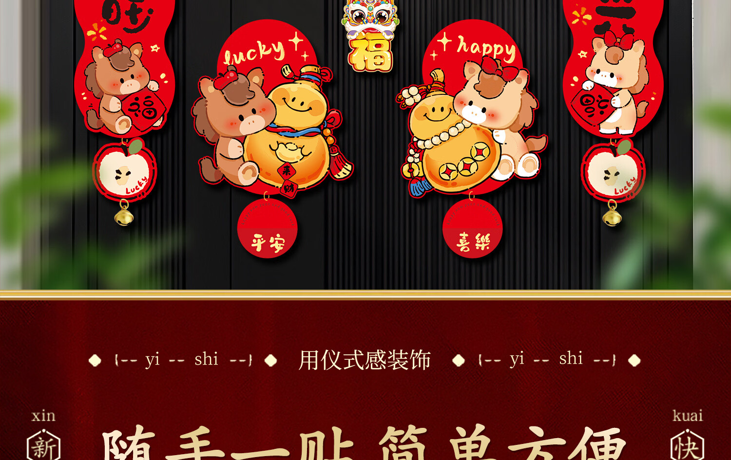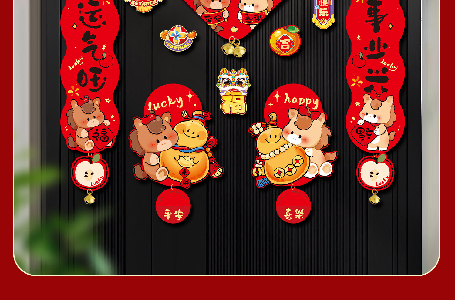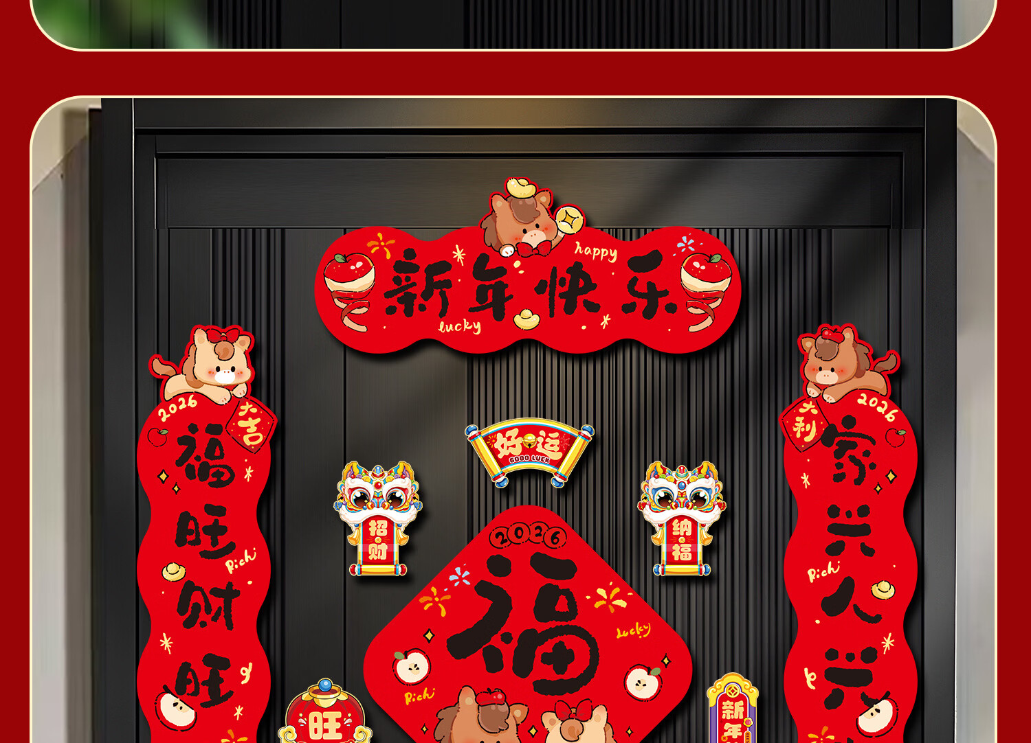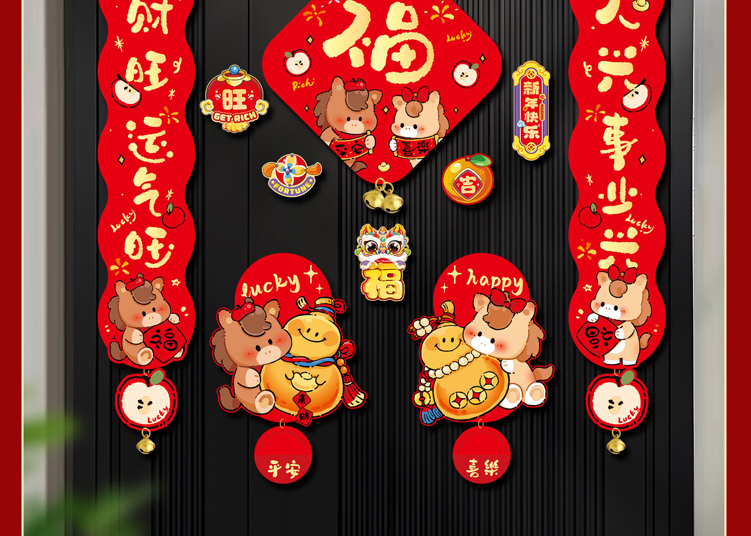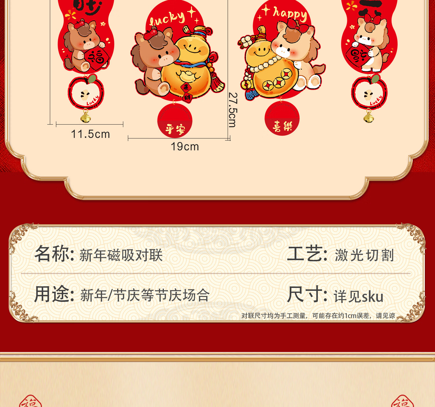 简菲(jaofia)新年磁吸对联春联批货2026马年新款过年入户门大福字门贴春节用品其他文教文化用品 新年快乐磁吸对联(黑字款)+招财纳福冰箱贴 磁吸对联-礼盒装(磁吸不伤门)