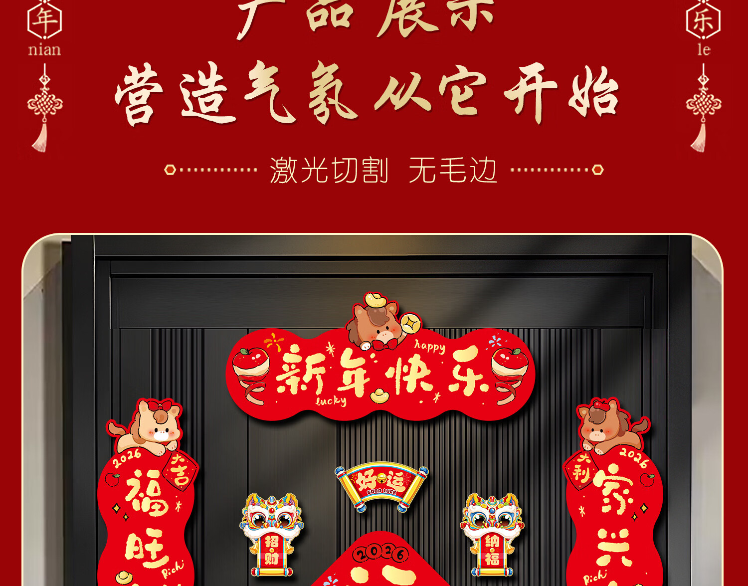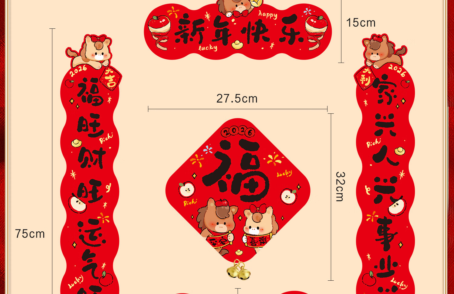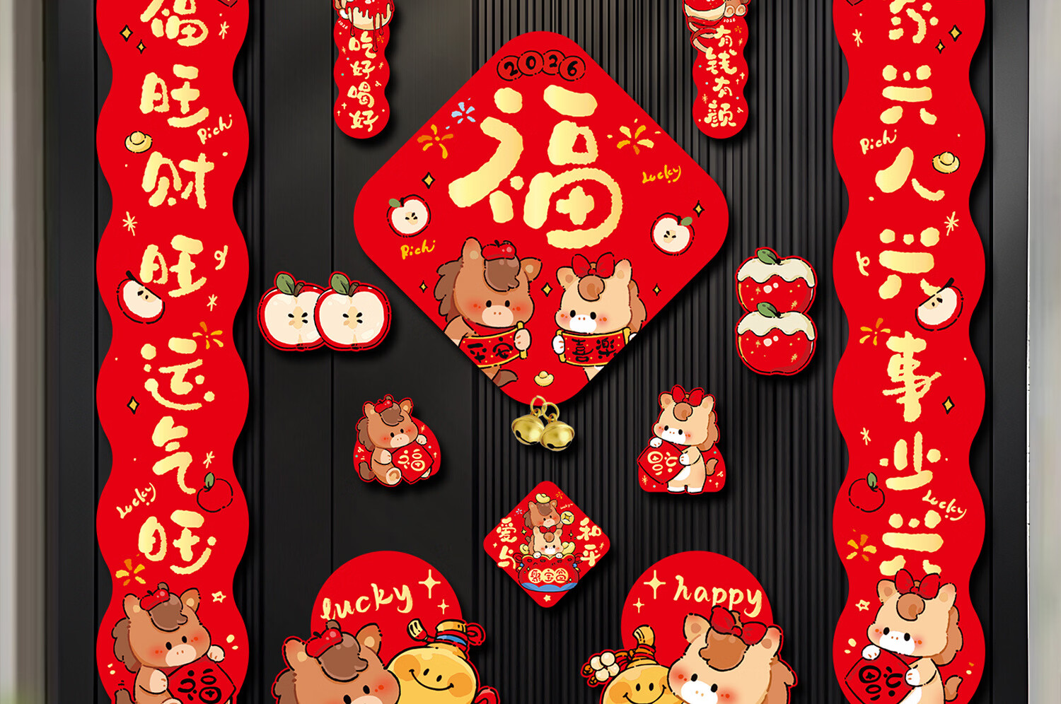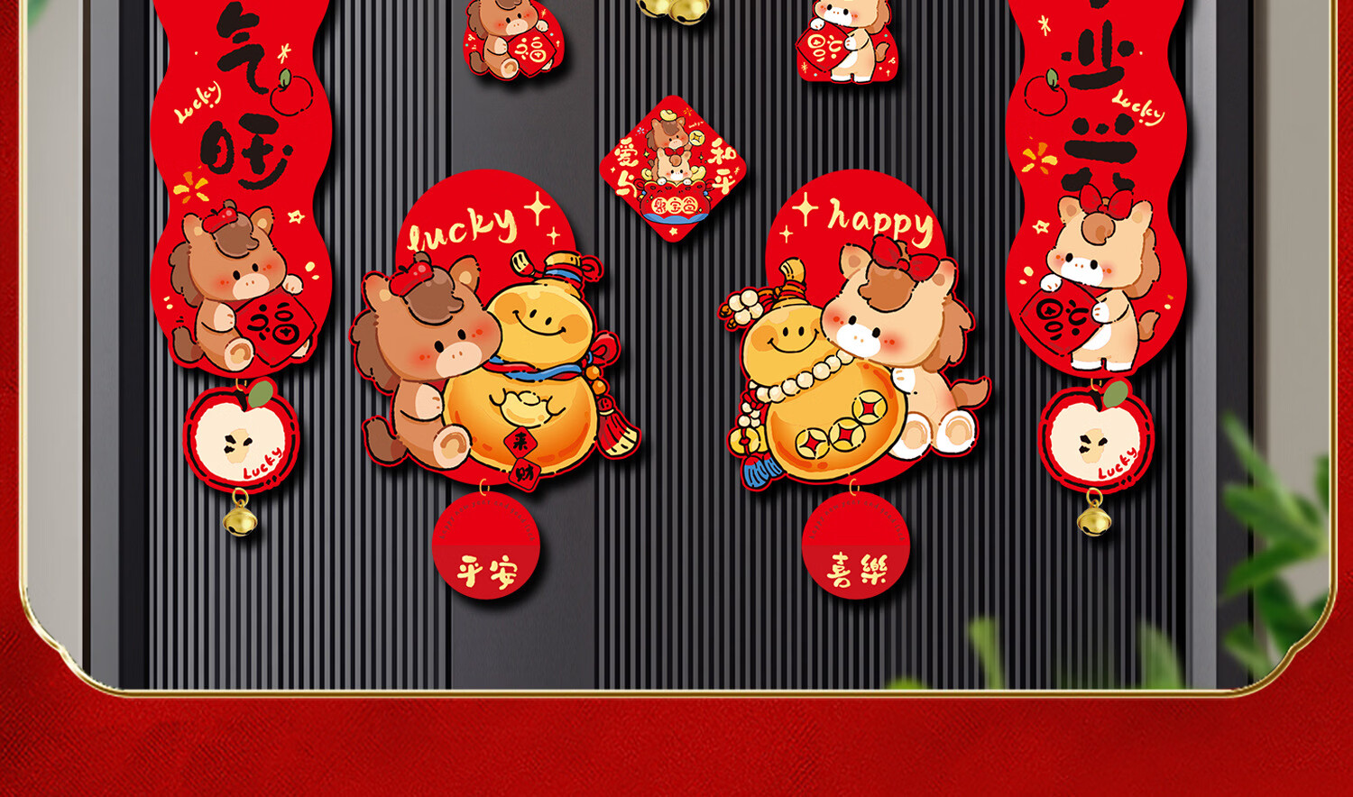 简菲(jaofia)新年磁吸对联春联批货2026马年新款过年入户门大福字门贴春节用品其他文教文化用品 新年快乐磁吸对联(黑字款)+招财纳福冰箱贴 磁吸对联-礼盒装(磁吸不伤门)