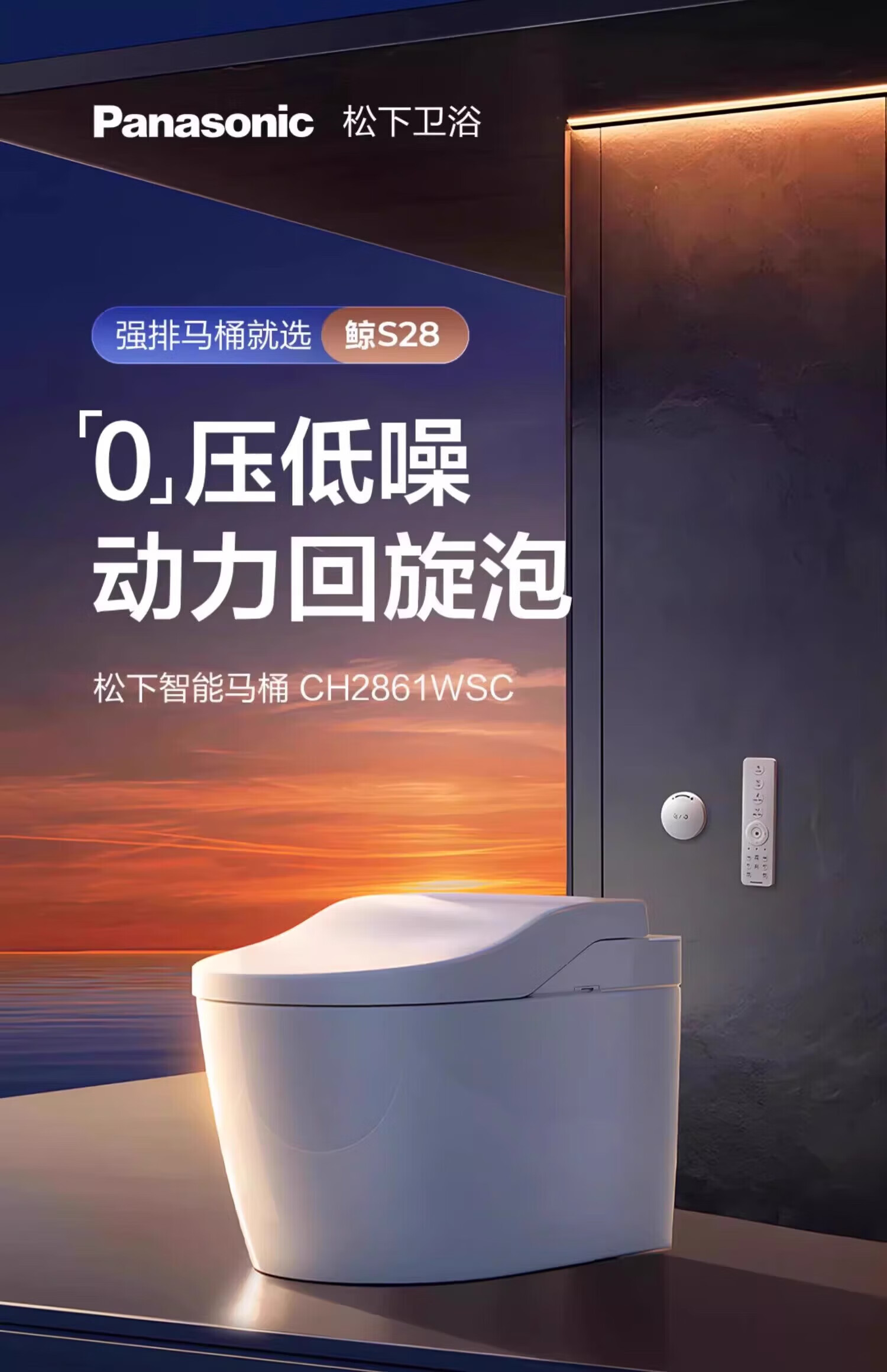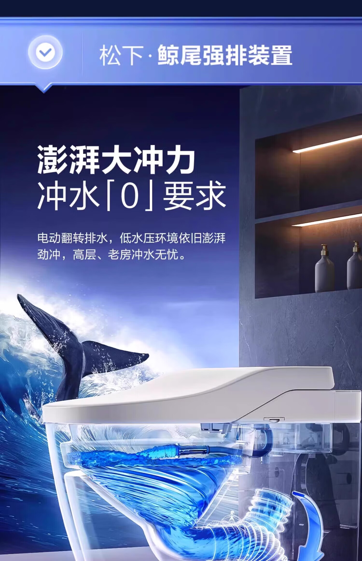松下智能马桶2861电动翻转排水冲力大动力回旋泡移位可装雪花釉面 400mm