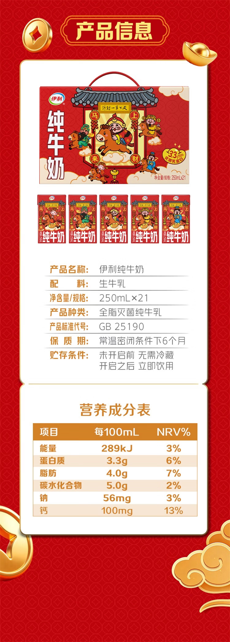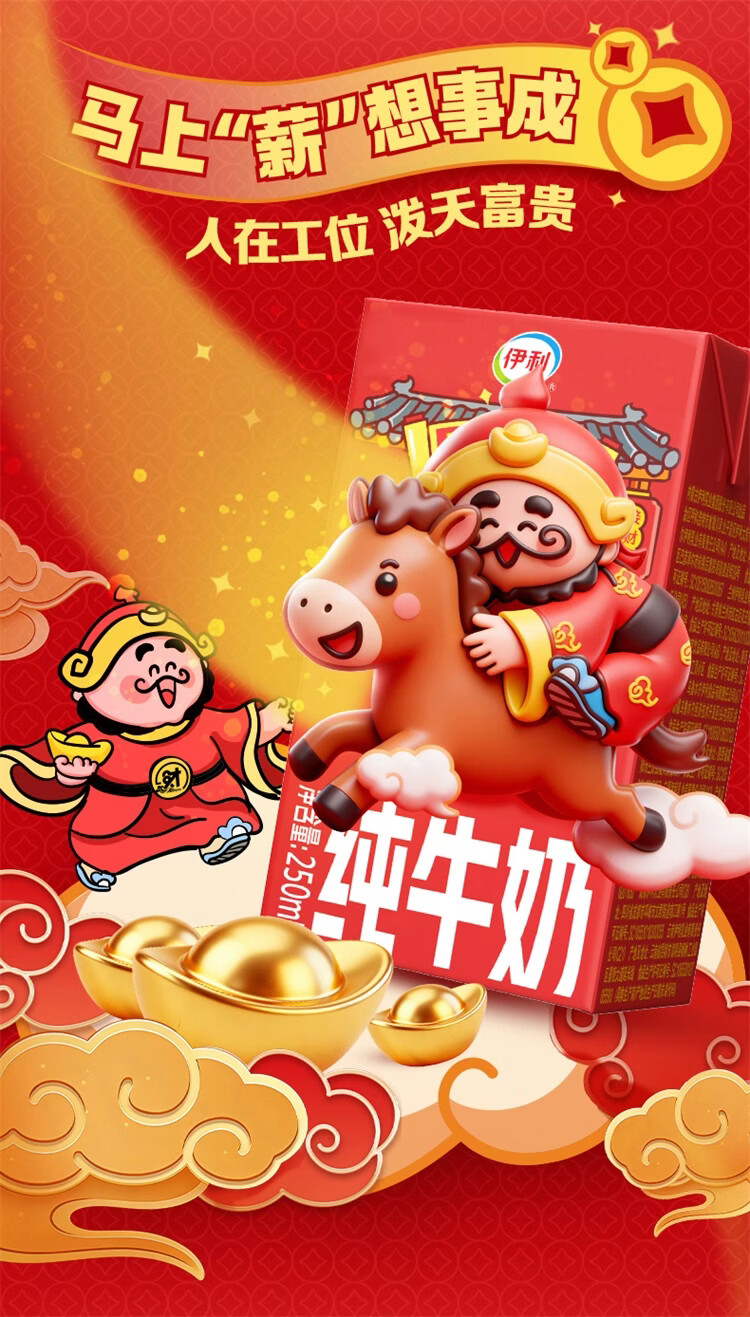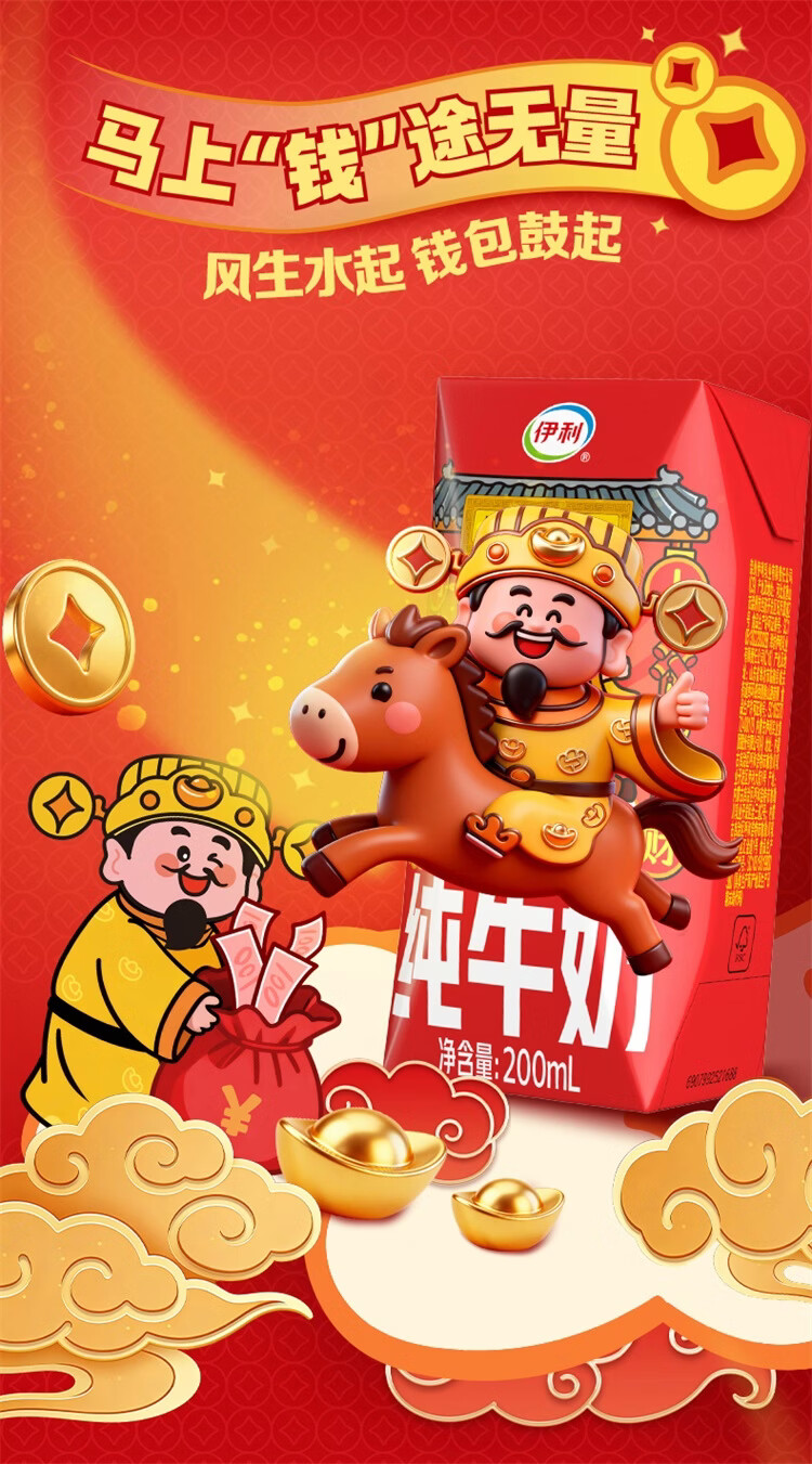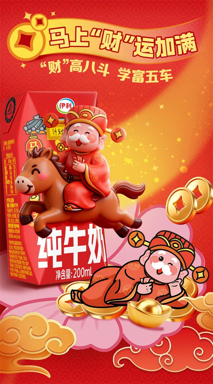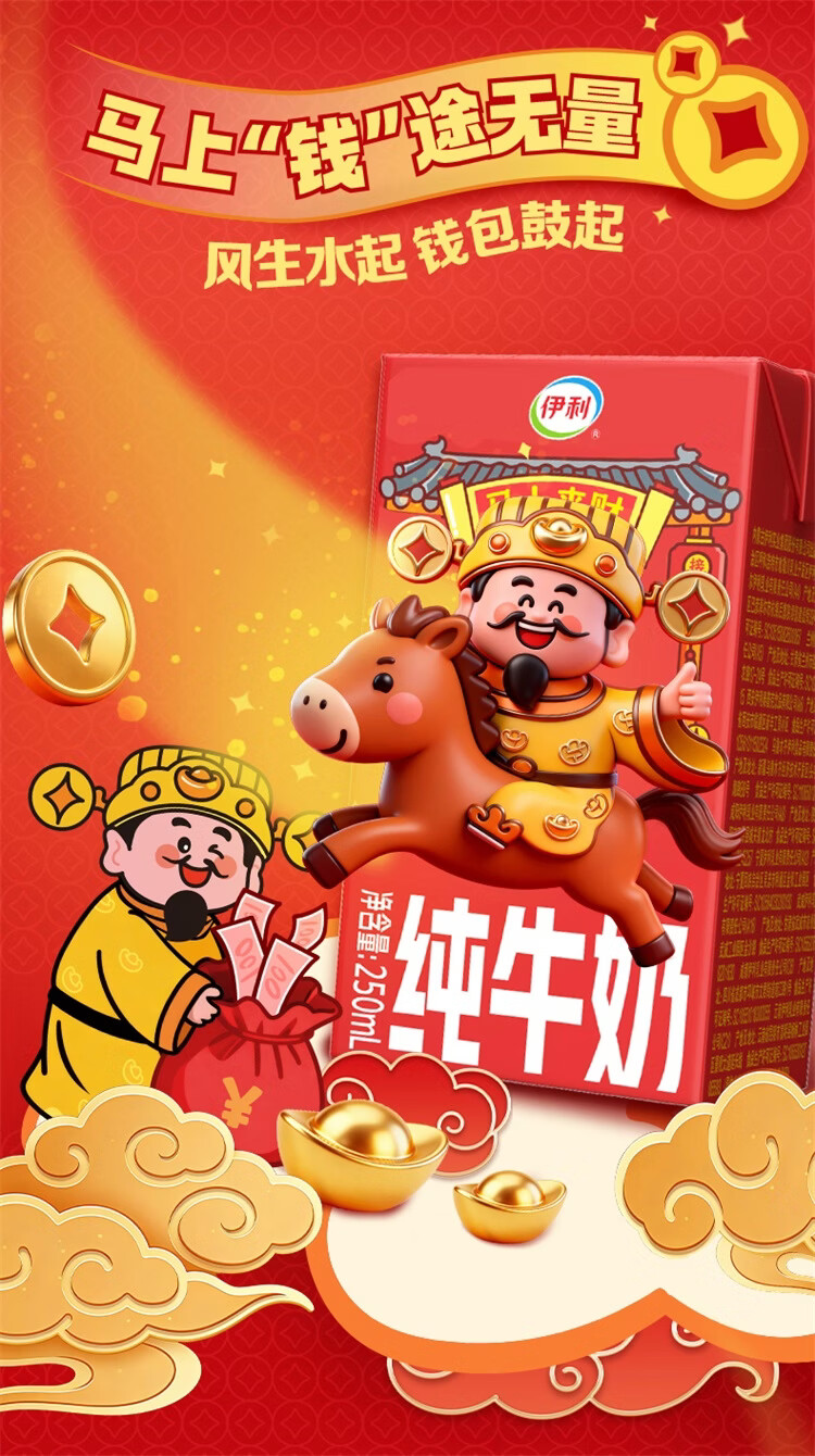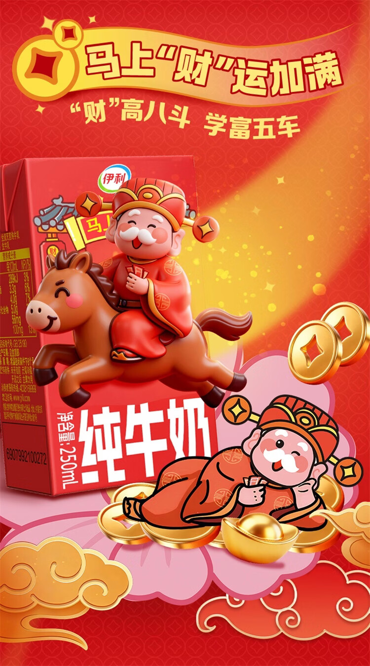 伊利纯牛奶系列 营养早餐 年货礼盒 春节送礼 多种规格包装可选 【财神爷限定包装】250ml*21盒/箱 1月产