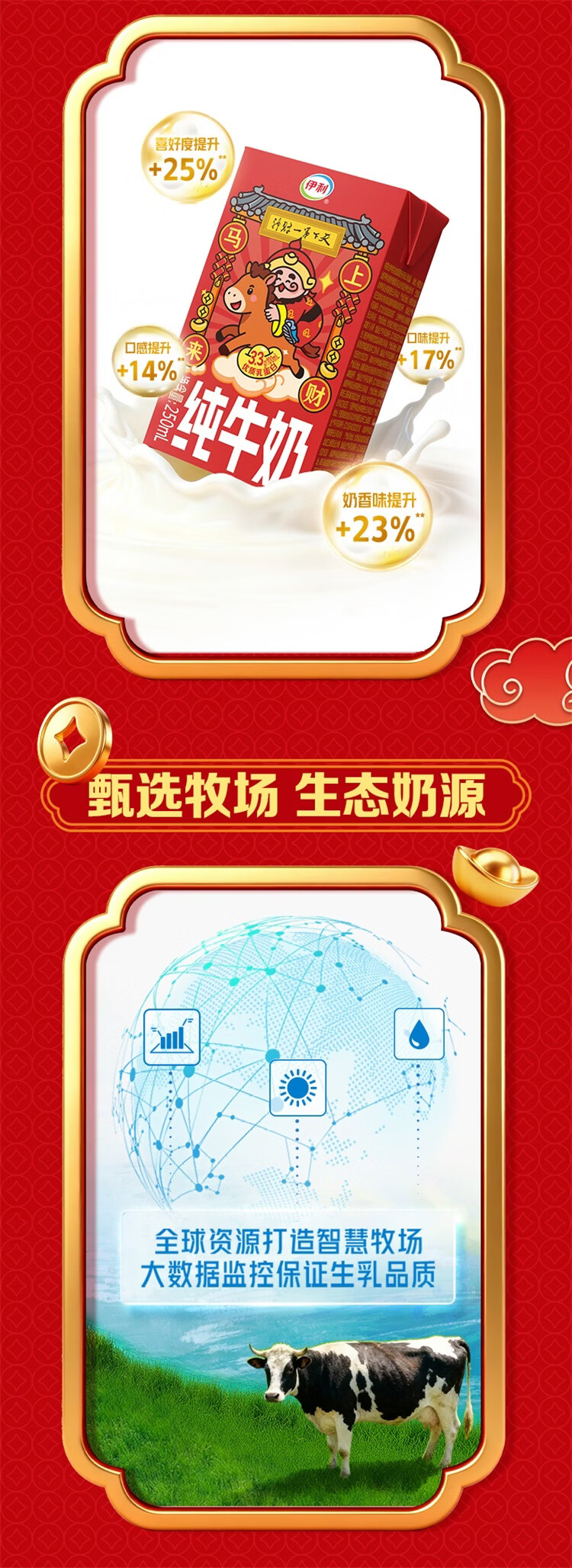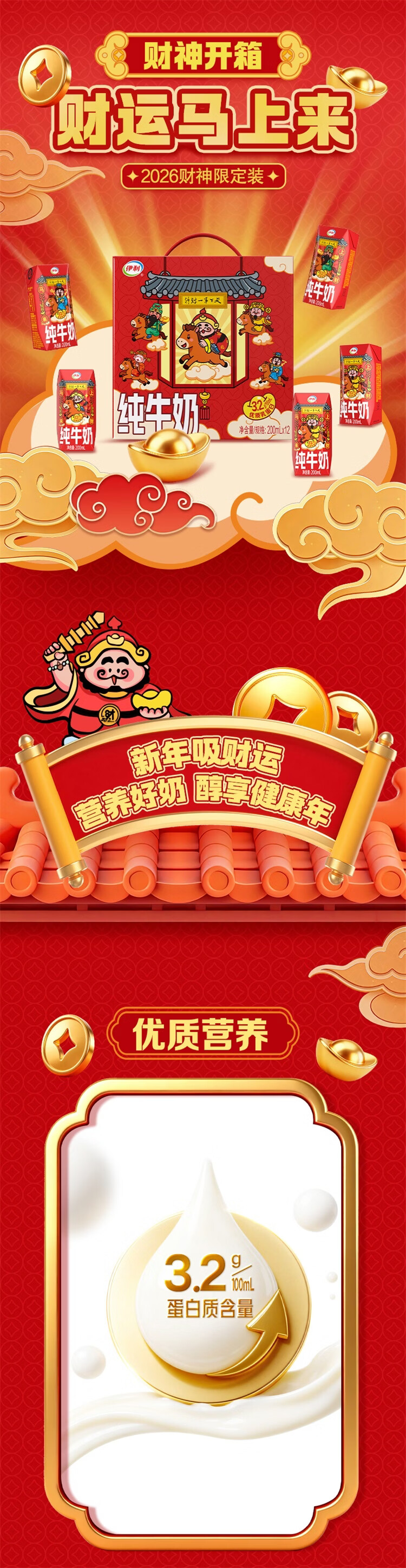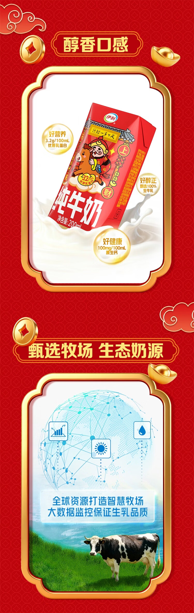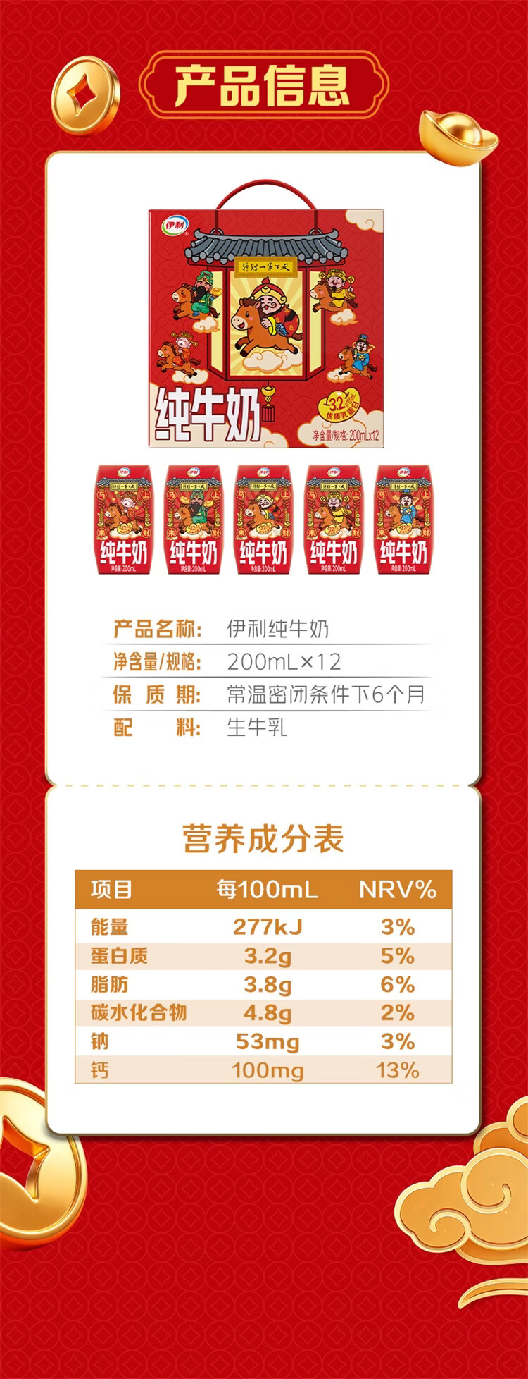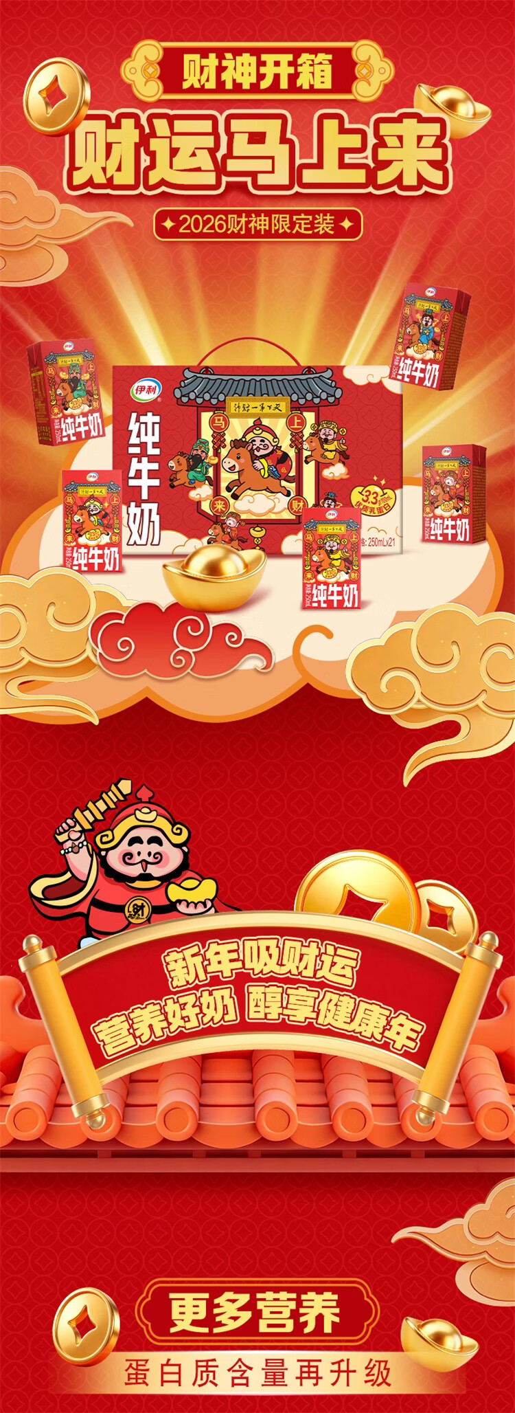 伊利纯牛奶系列 营养早餐 年货礼盒 春节送礼 多种规格包装可选 【财神爷限定包装】250ml*21盒/箱 1月产
