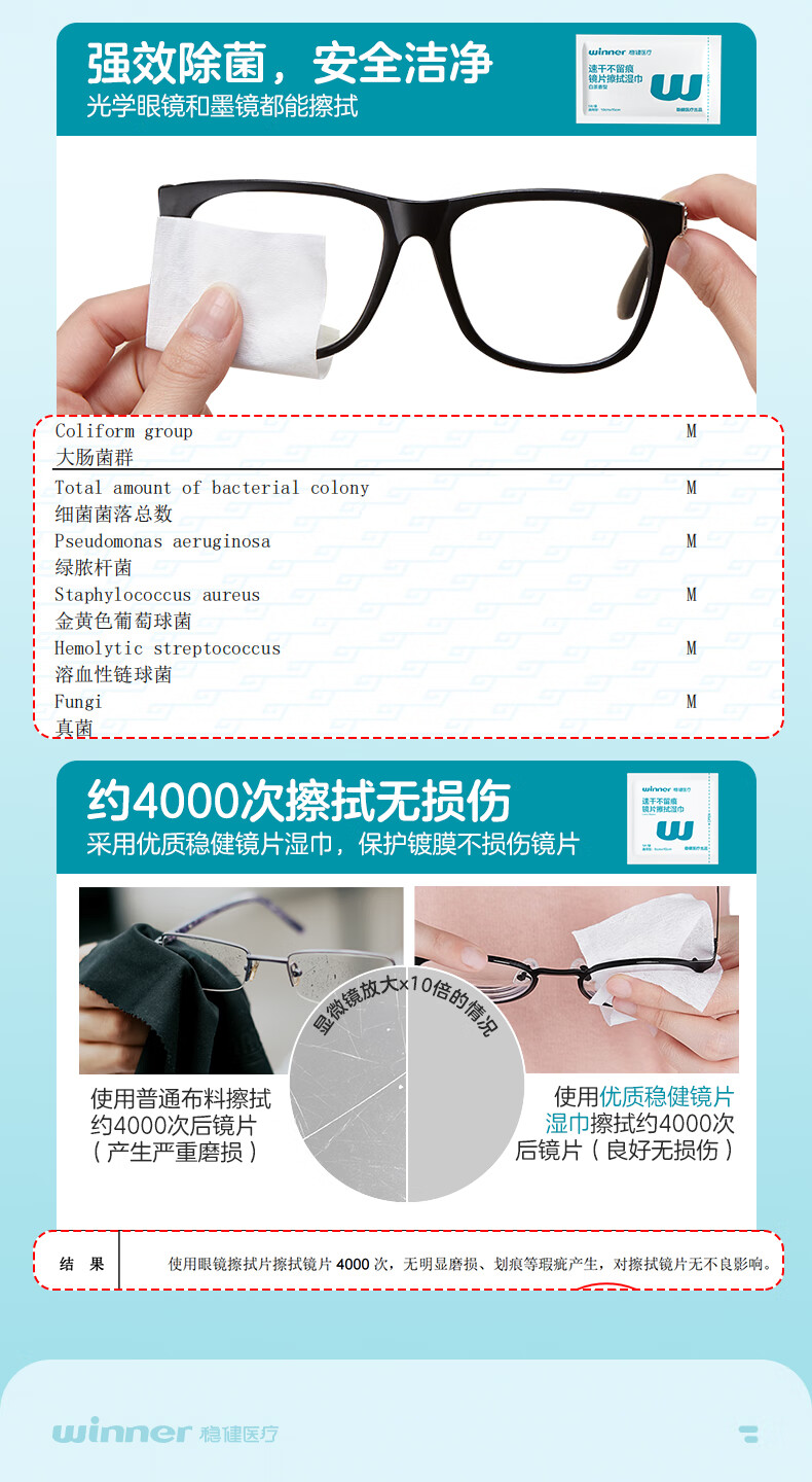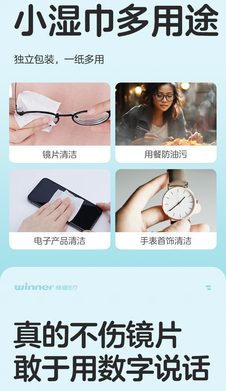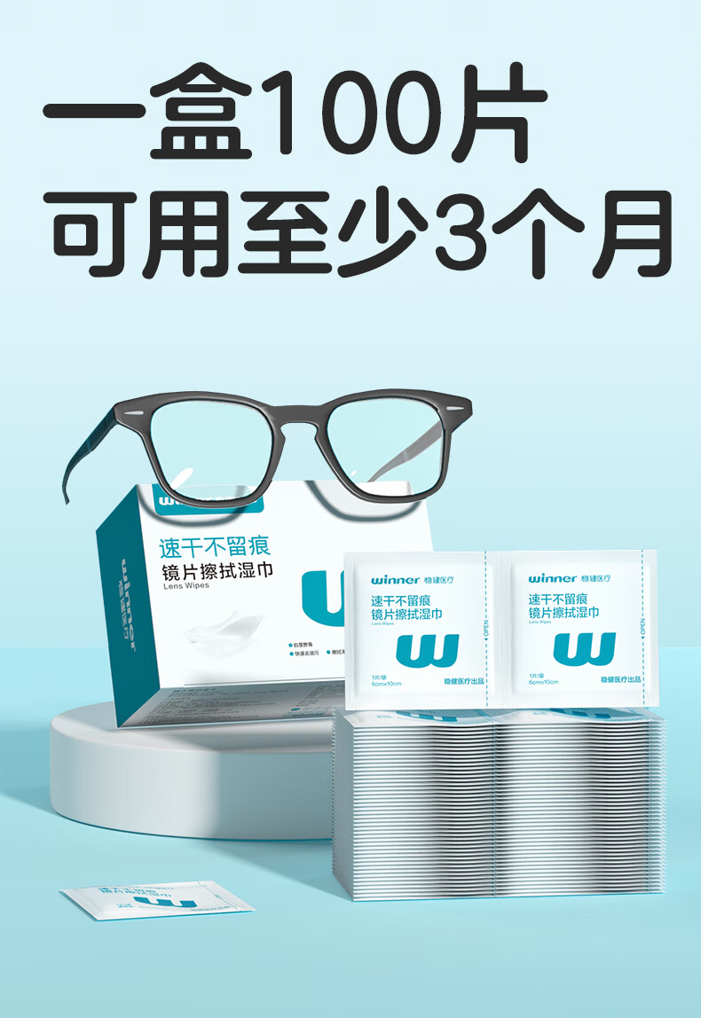 稳健镜片清洁湿巾独立100片白茶香6x10cm一次性眼镜屏幕擦拭便携湿巾