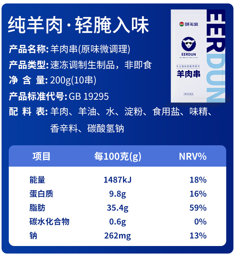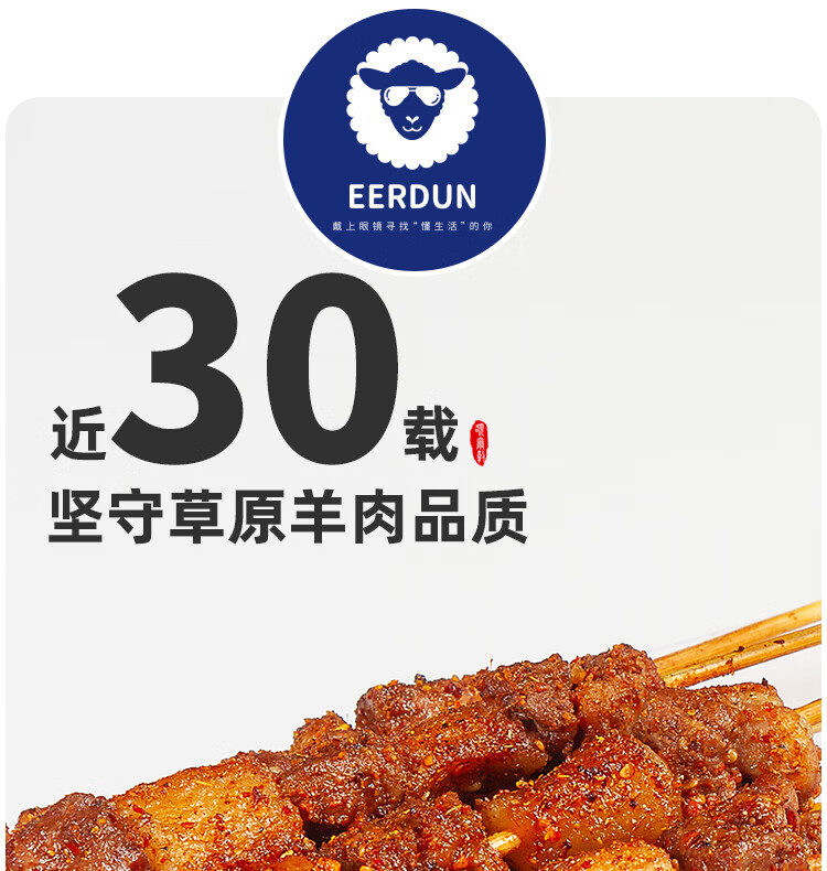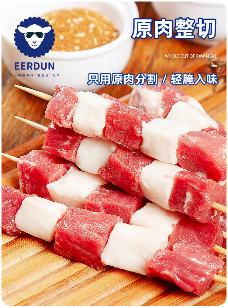 额尔敦内蒙古草地羔羊肉串200g(10串)鲜冻生鲜肉串腌制食品烧烤食材