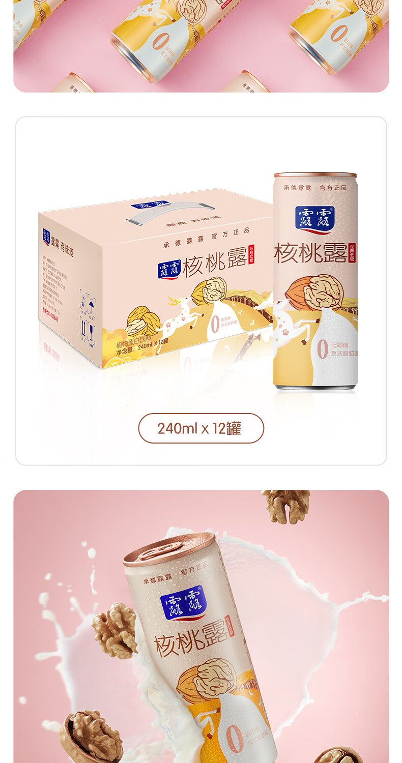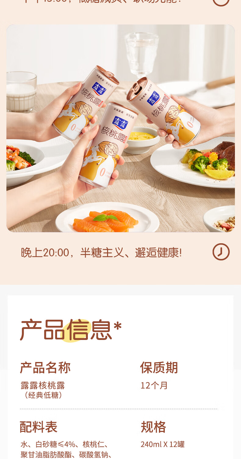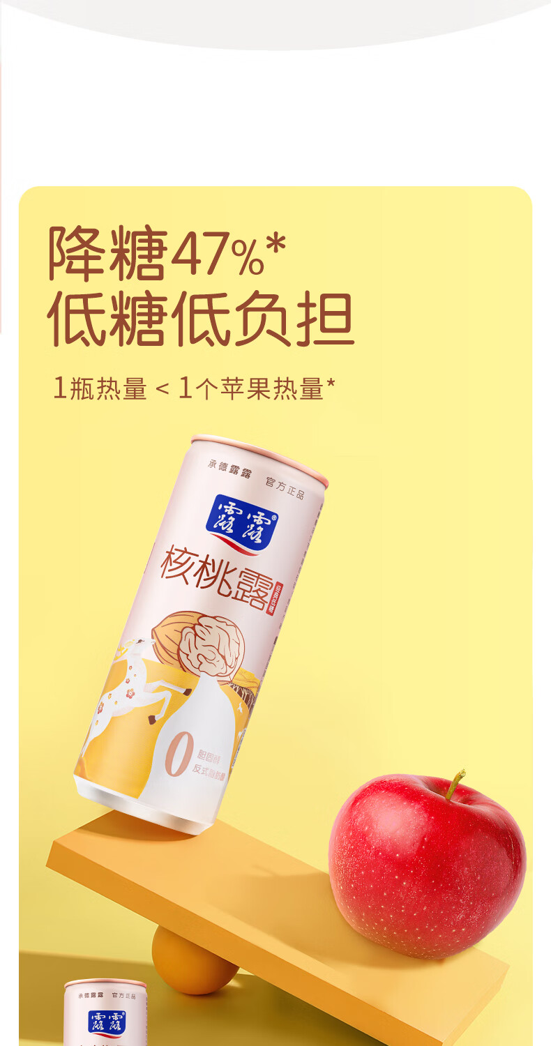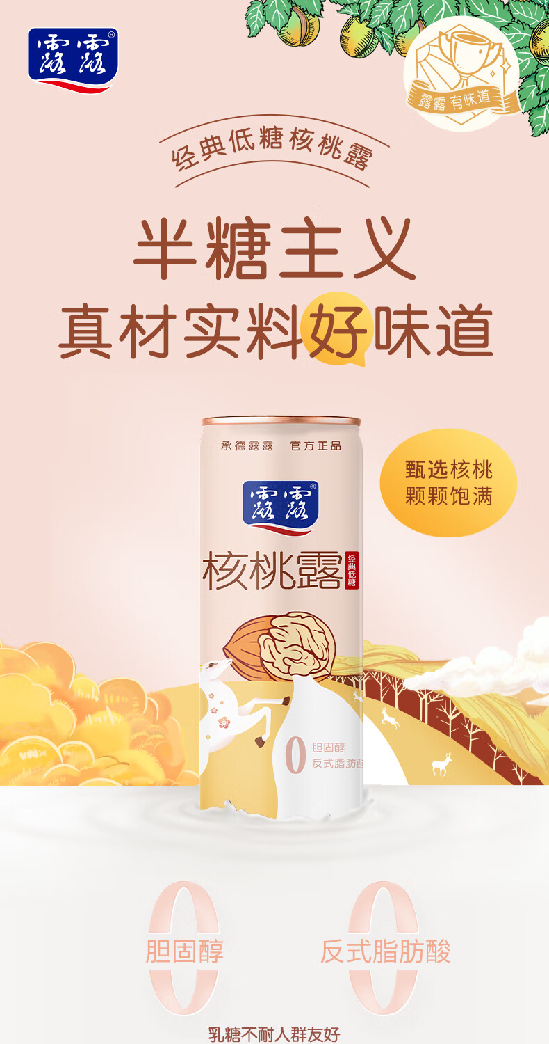 露露核桃露低糖款240ml*12罐整箱 0乳糖杏仁饮料出游聚餐年货礼盒