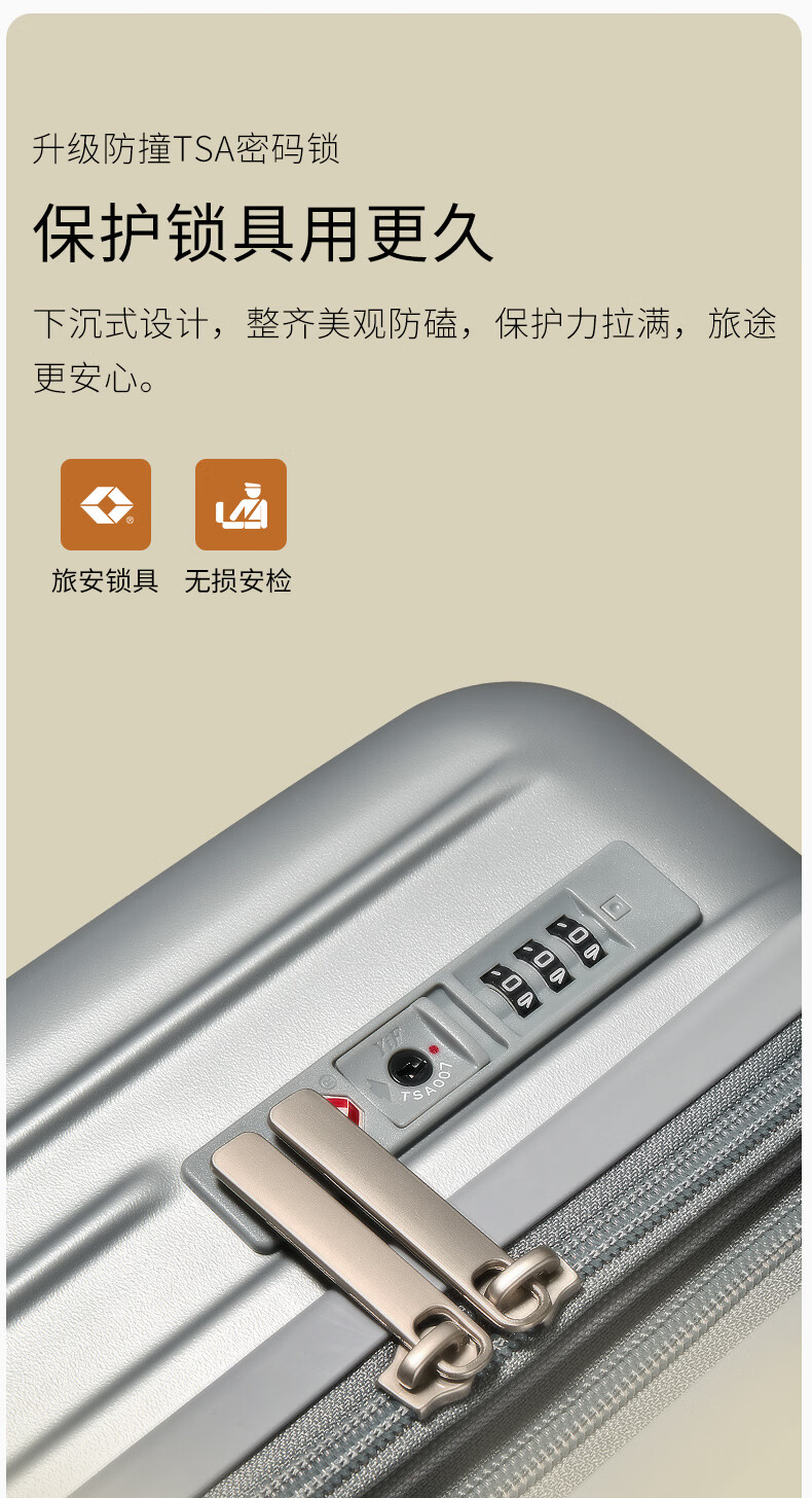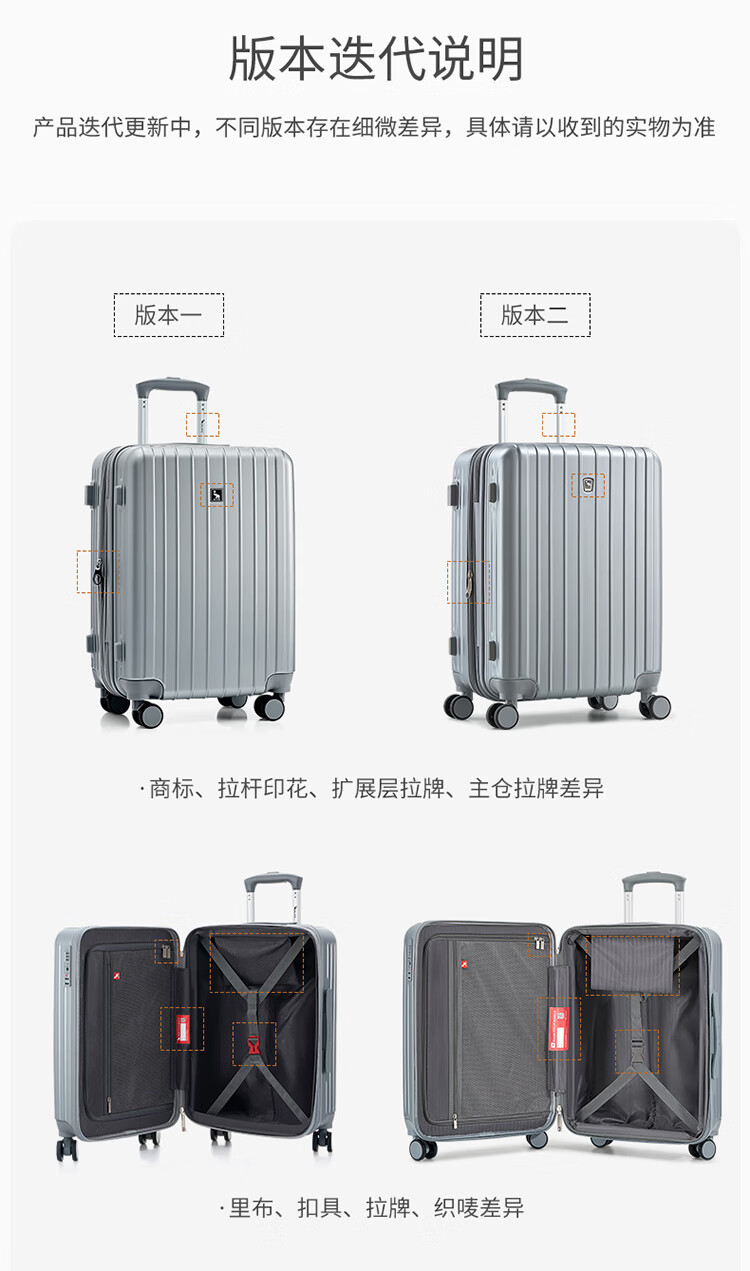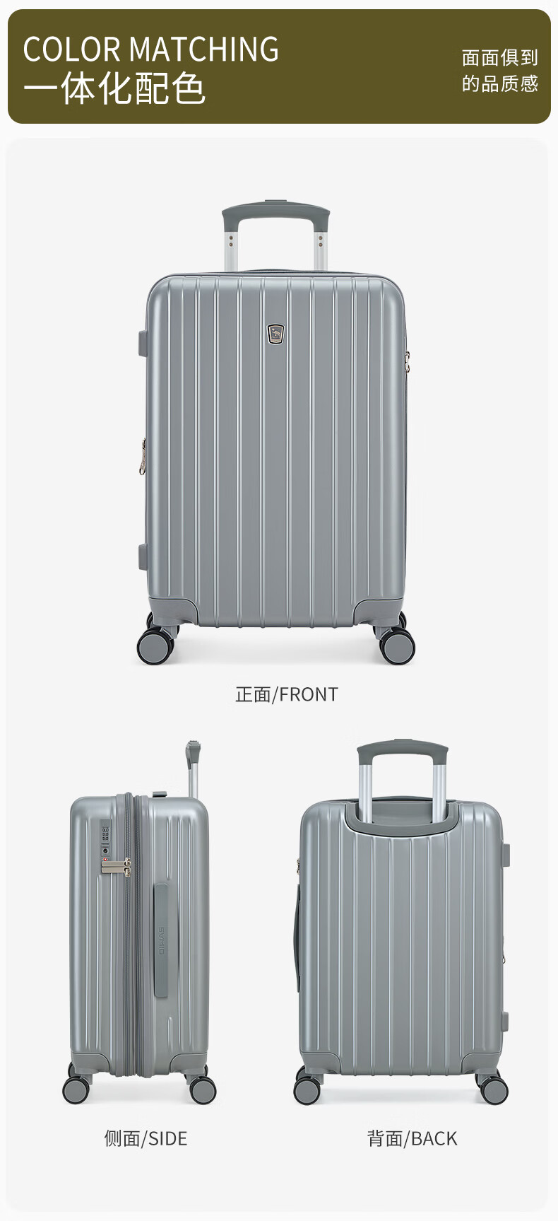 90分行李箱20英寸莱茵河经典款 拉杆箱登机旅行箱万向轮密码箱钛金灰