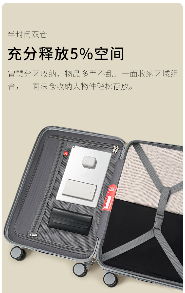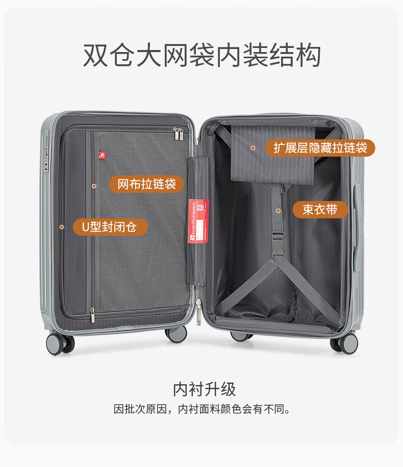 地平线8号(LEVEL8)行李箱旅行拉杆箱20英寸男女商务登机箱前开盖万向轮密码箱灰色