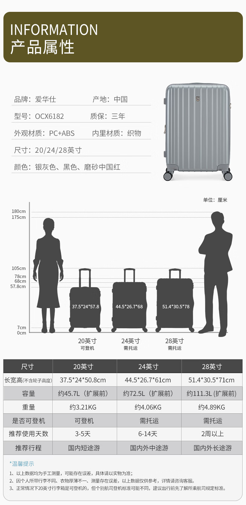 爱华仕行李箱20英寸登机箱男大容量拉杆箱出差旅行箱女密码箱皮箱磨砂灰